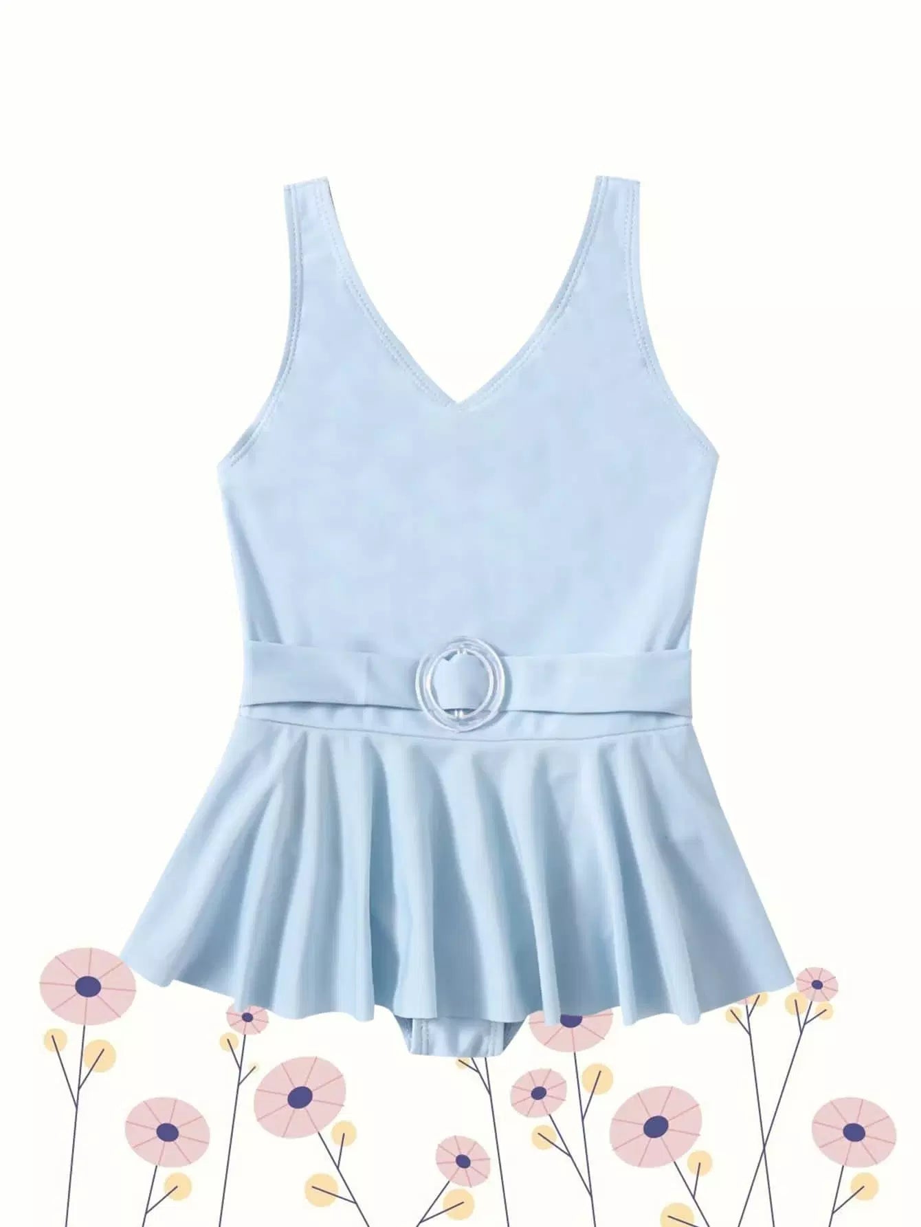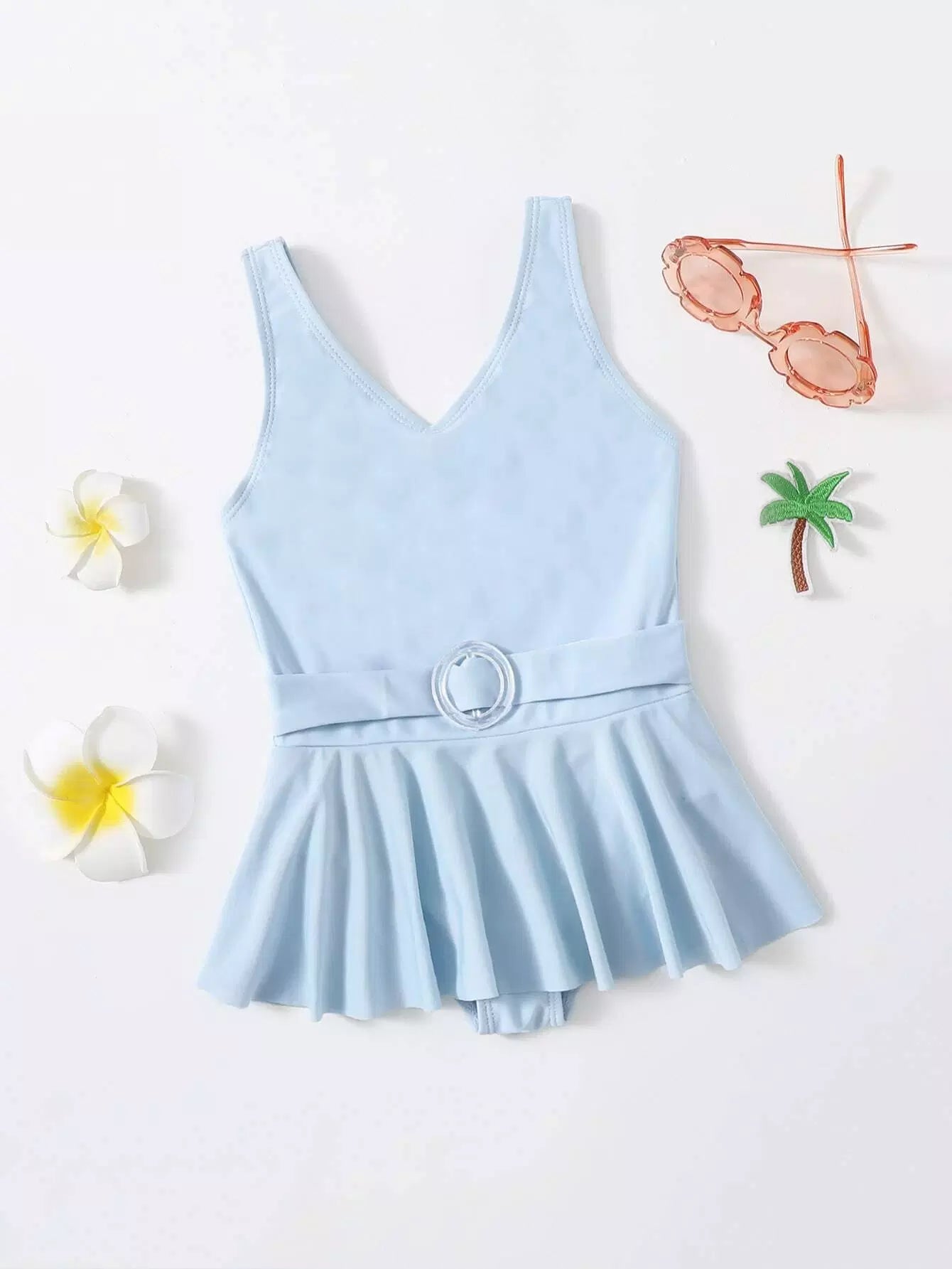 ملابس سباحة قطعة واحدة للفتيات الصغيرات بدون حزام