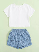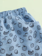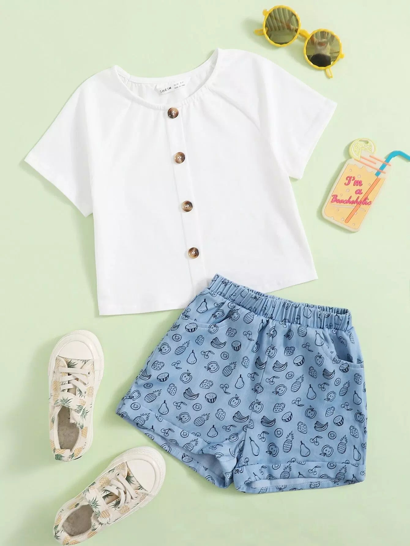 طقم تي شيرت بأكمام راجلان وأزرار أمامية وشورت بطبعات فواكه للبنات الصغار