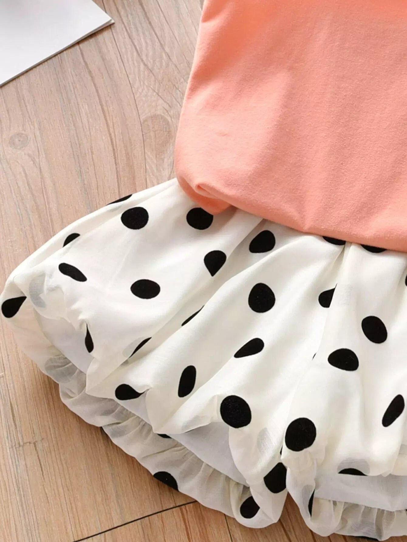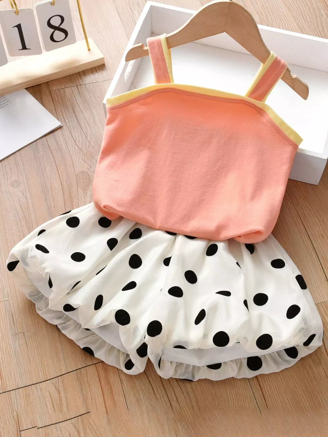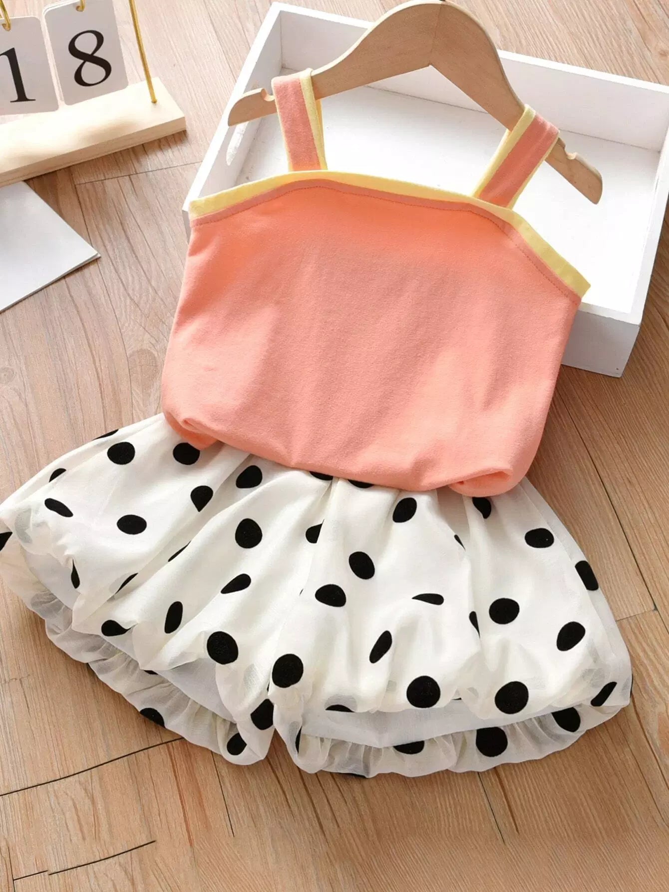 بلوزة بناتي صغيرة كامي، مع شورت بساق عريضة منقطة