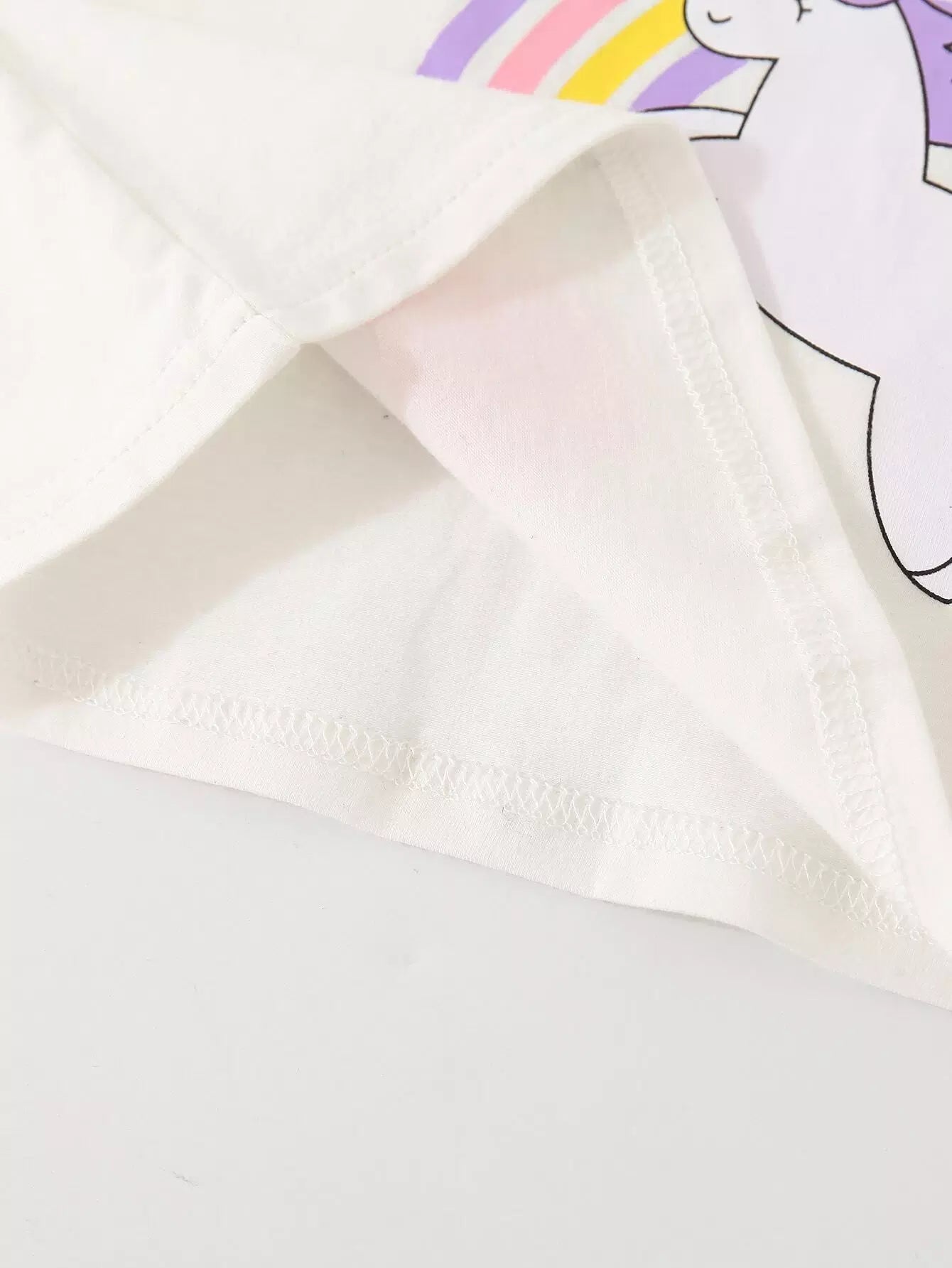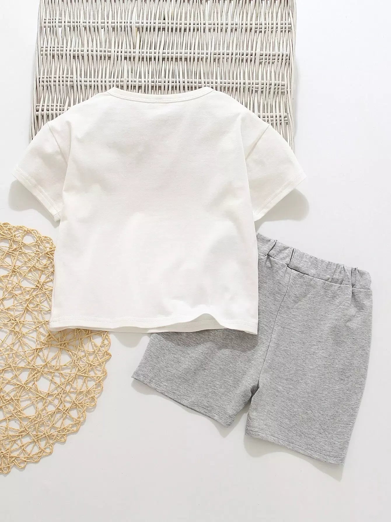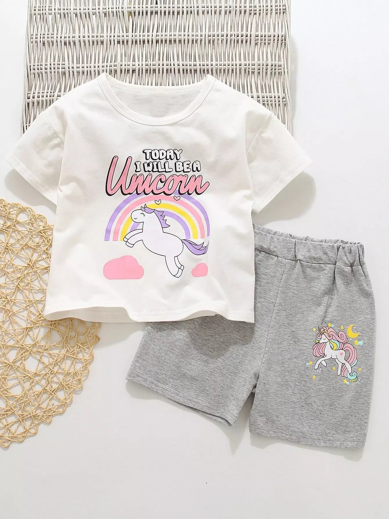 تي شيرت وشورت برسومات كرتونية وشعارات للبنات الصغار