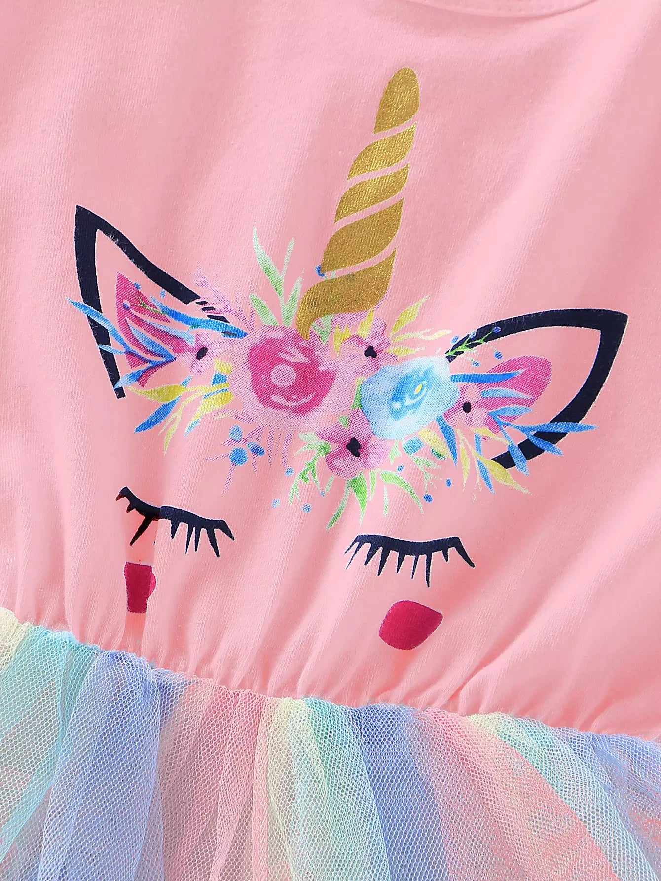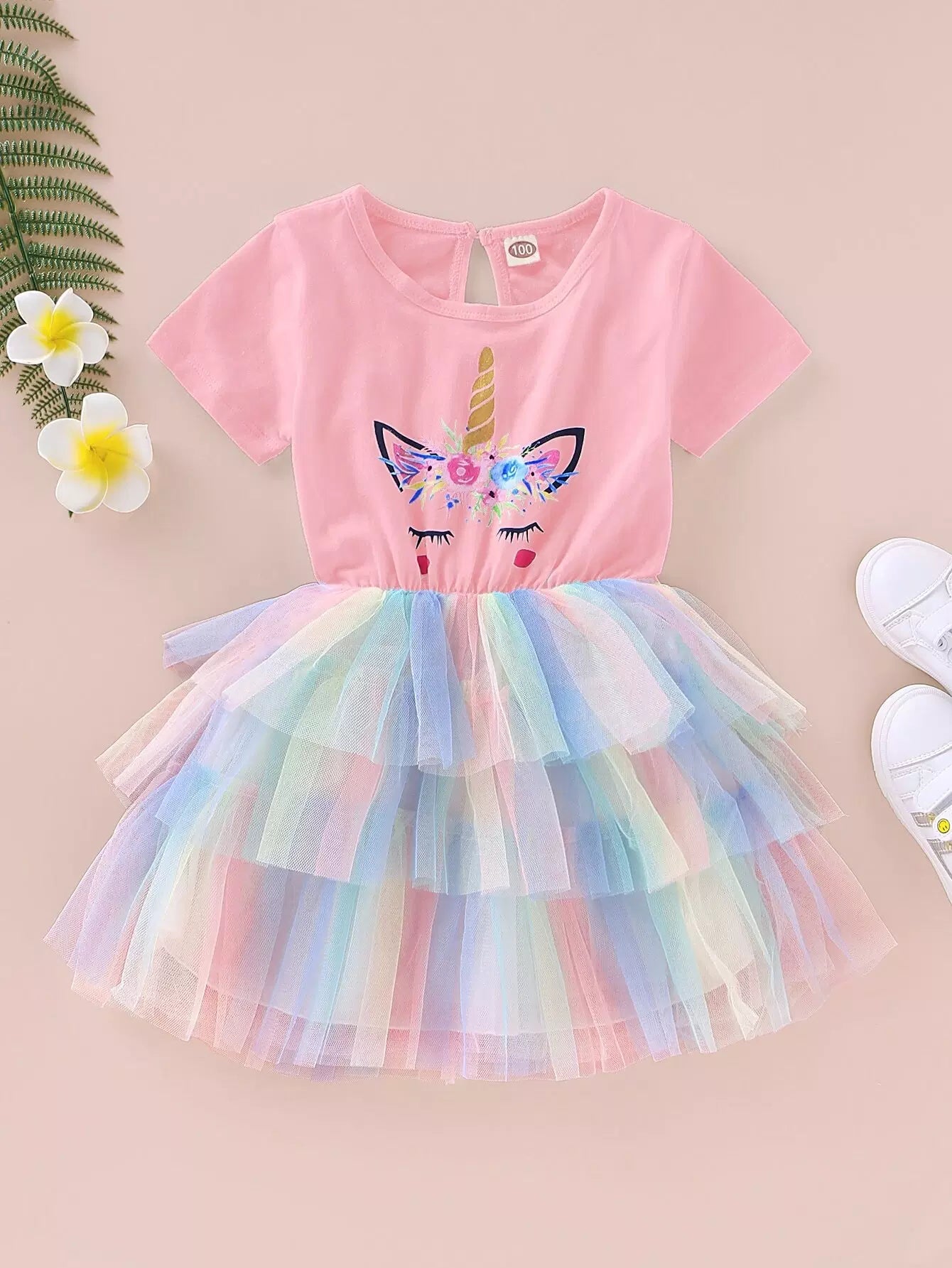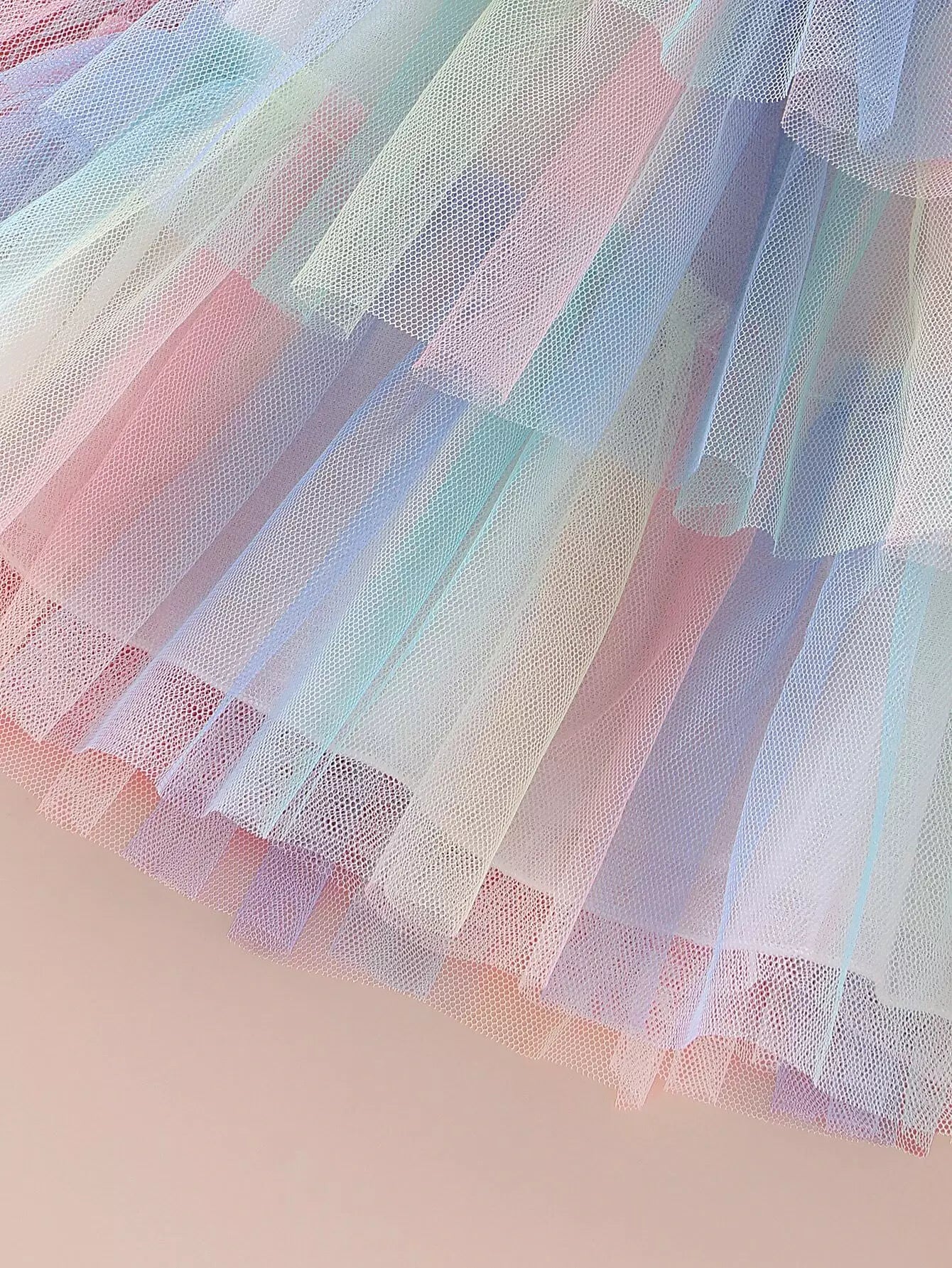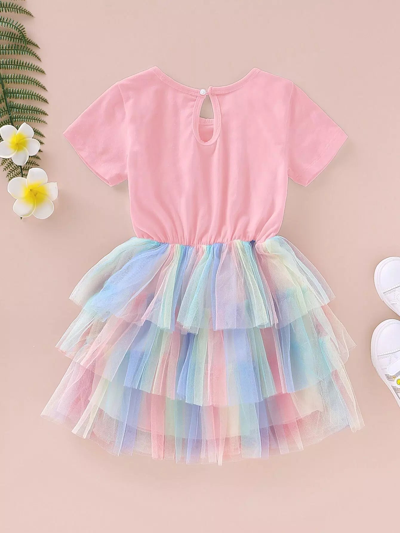 الأطفال - فستان بحاشية شبكية بطبقات من الرسوم الكارتونية للفتيات الصغيرات