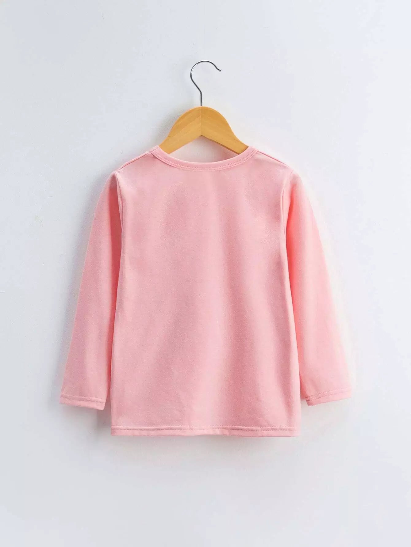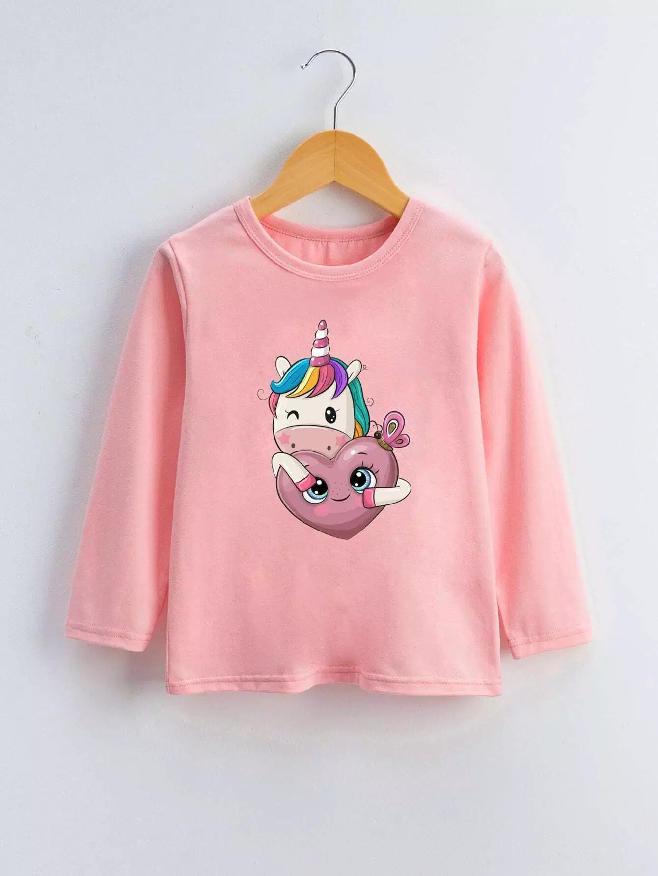 تي شيرت بطبعة كارتون يونيكورن وقلب مطبوع للبنات الصغار