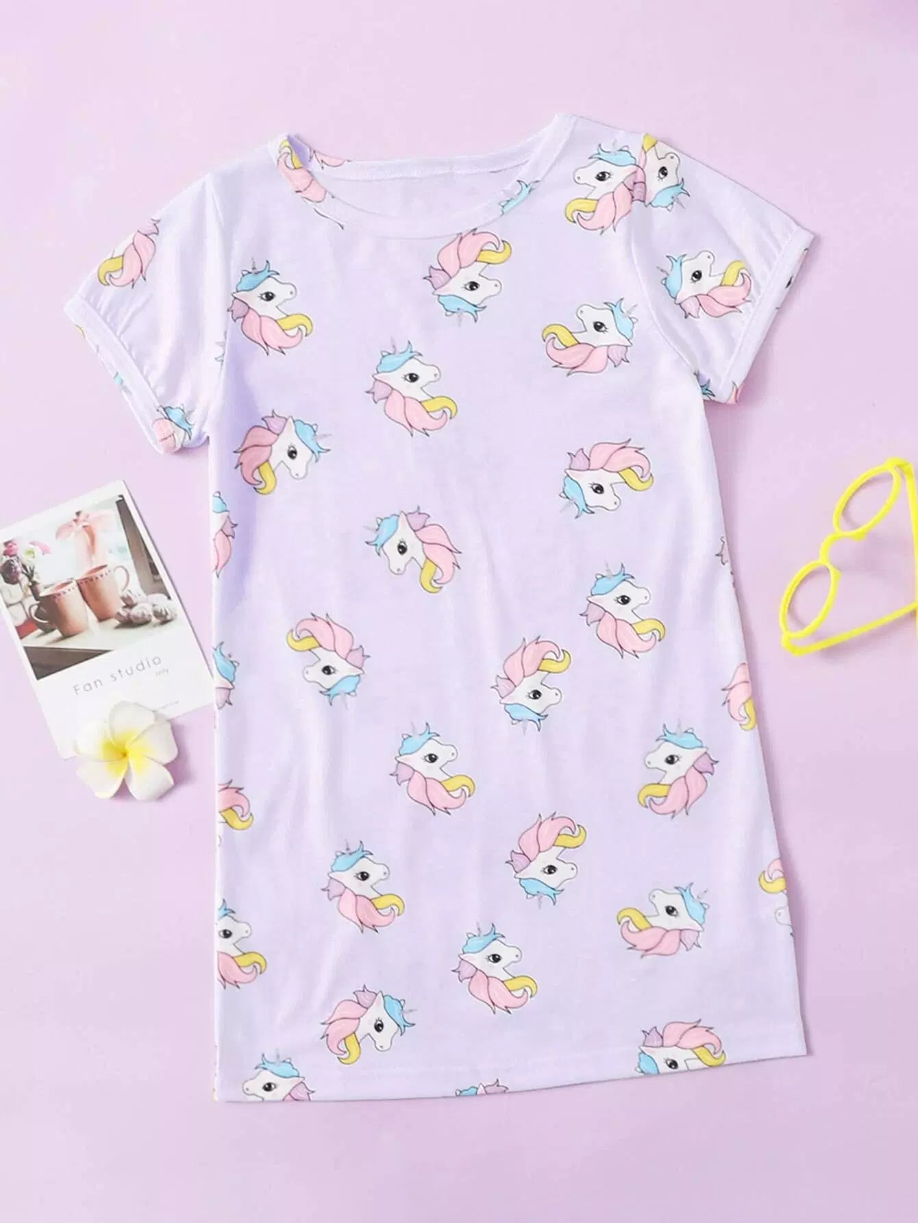 تي شيرت بطبعة يونيكورن كرتوني للبنات الصغار