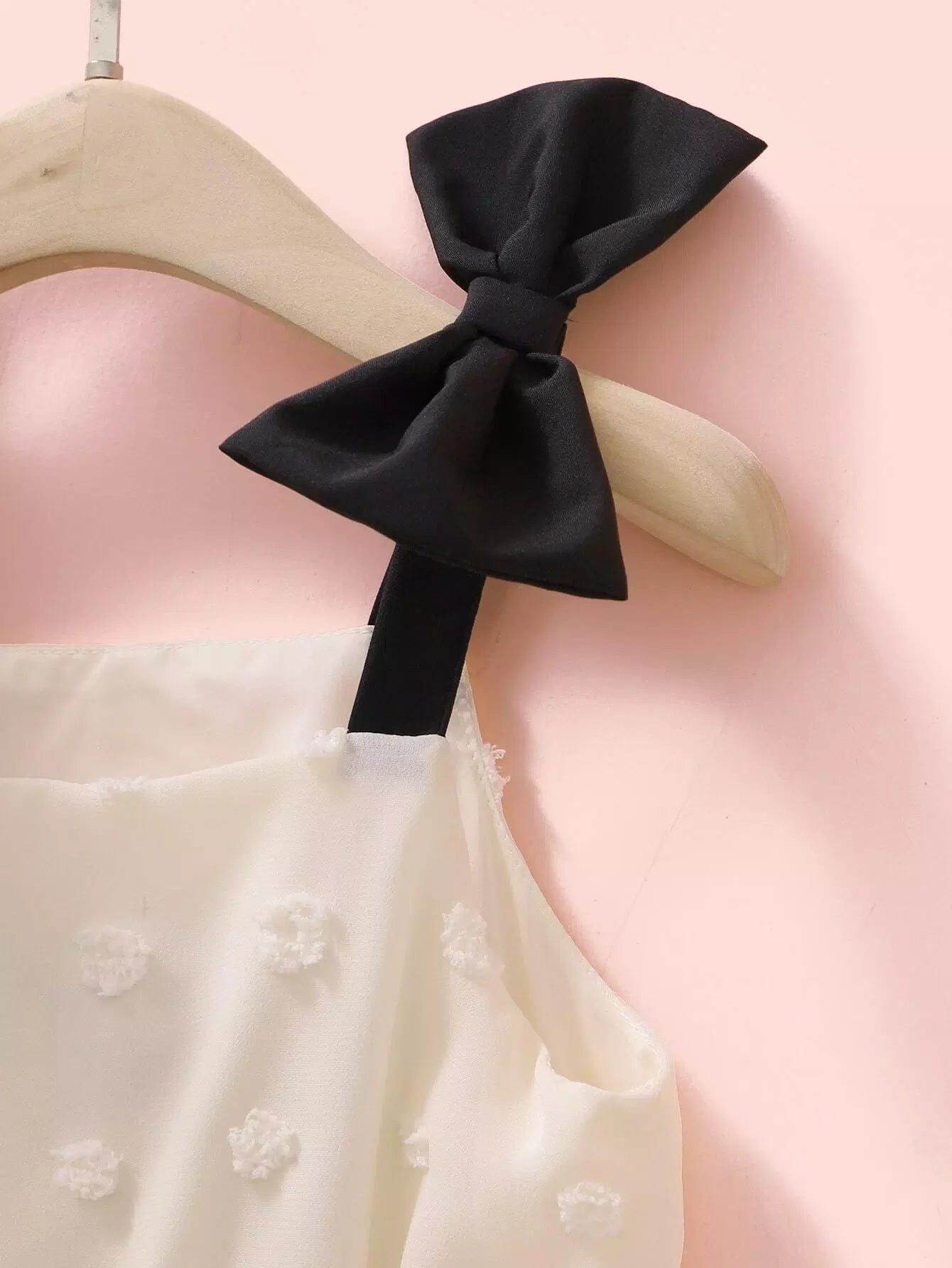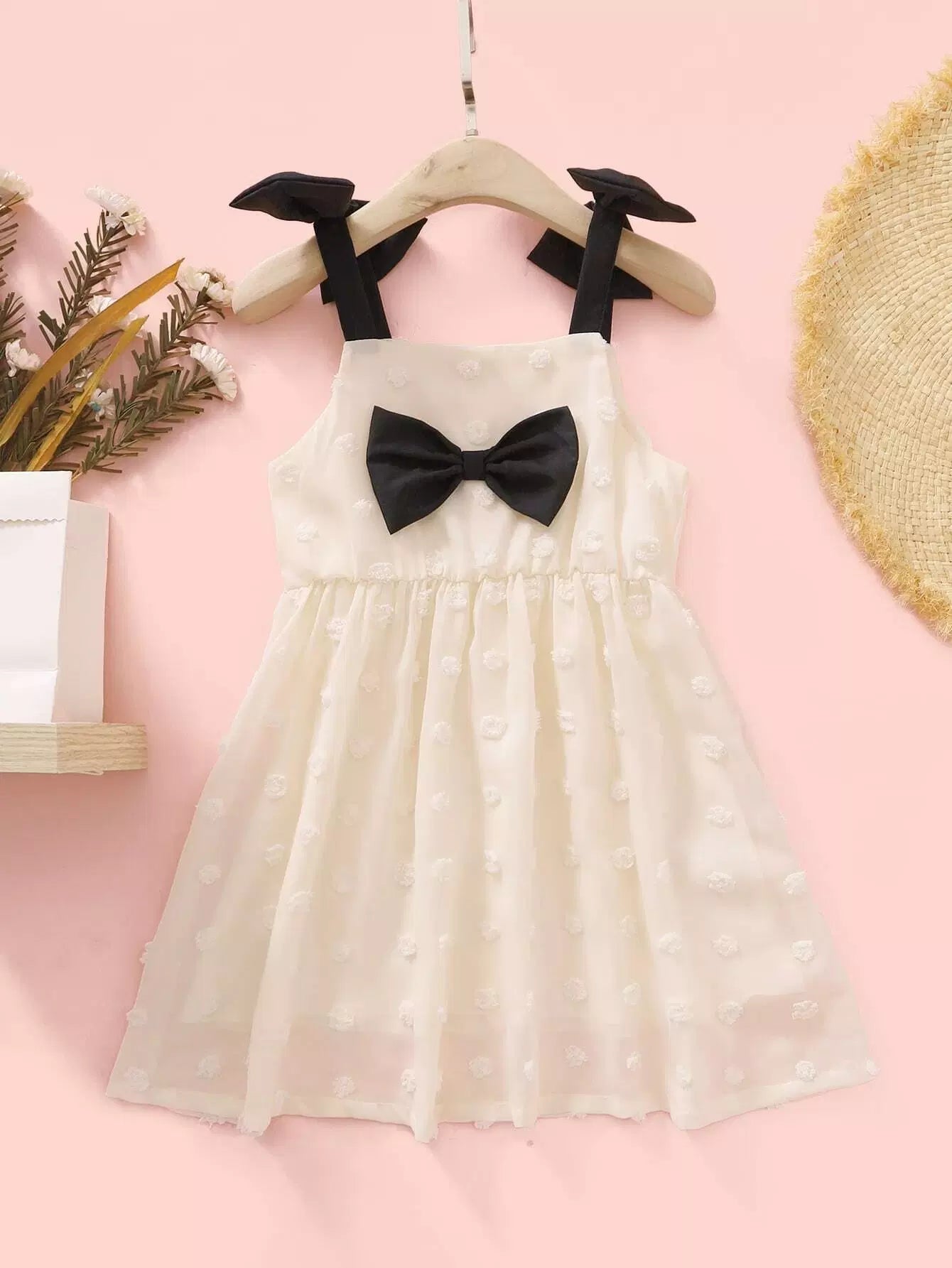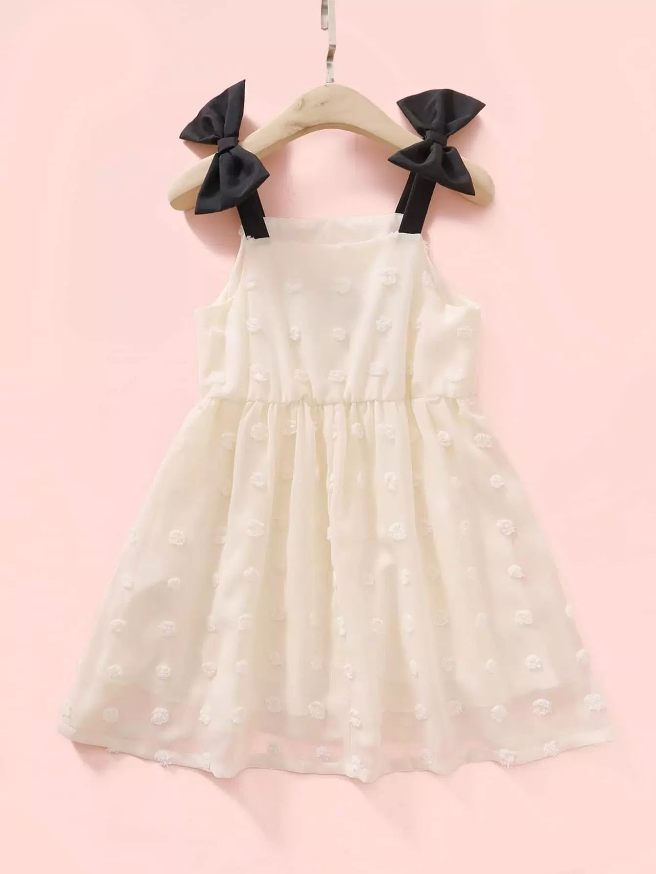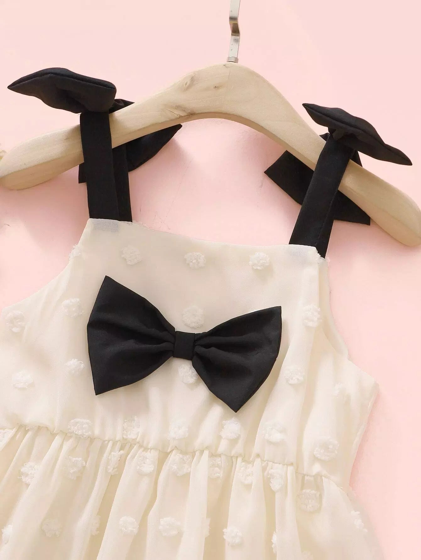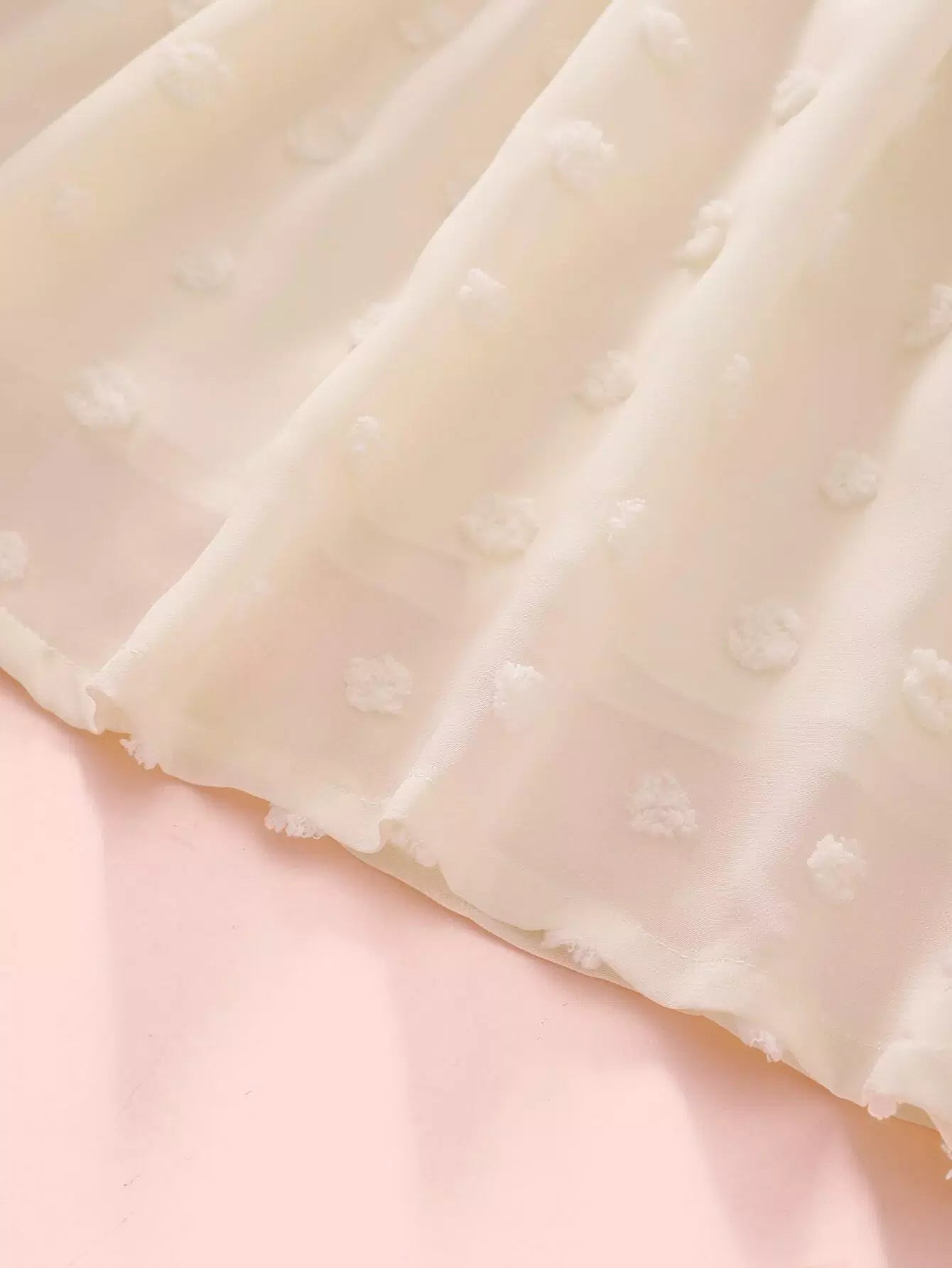 فستان قصير بناتي صغيرات من الشيفون السويسري المنقط بعقدة على شكل قميص قصير