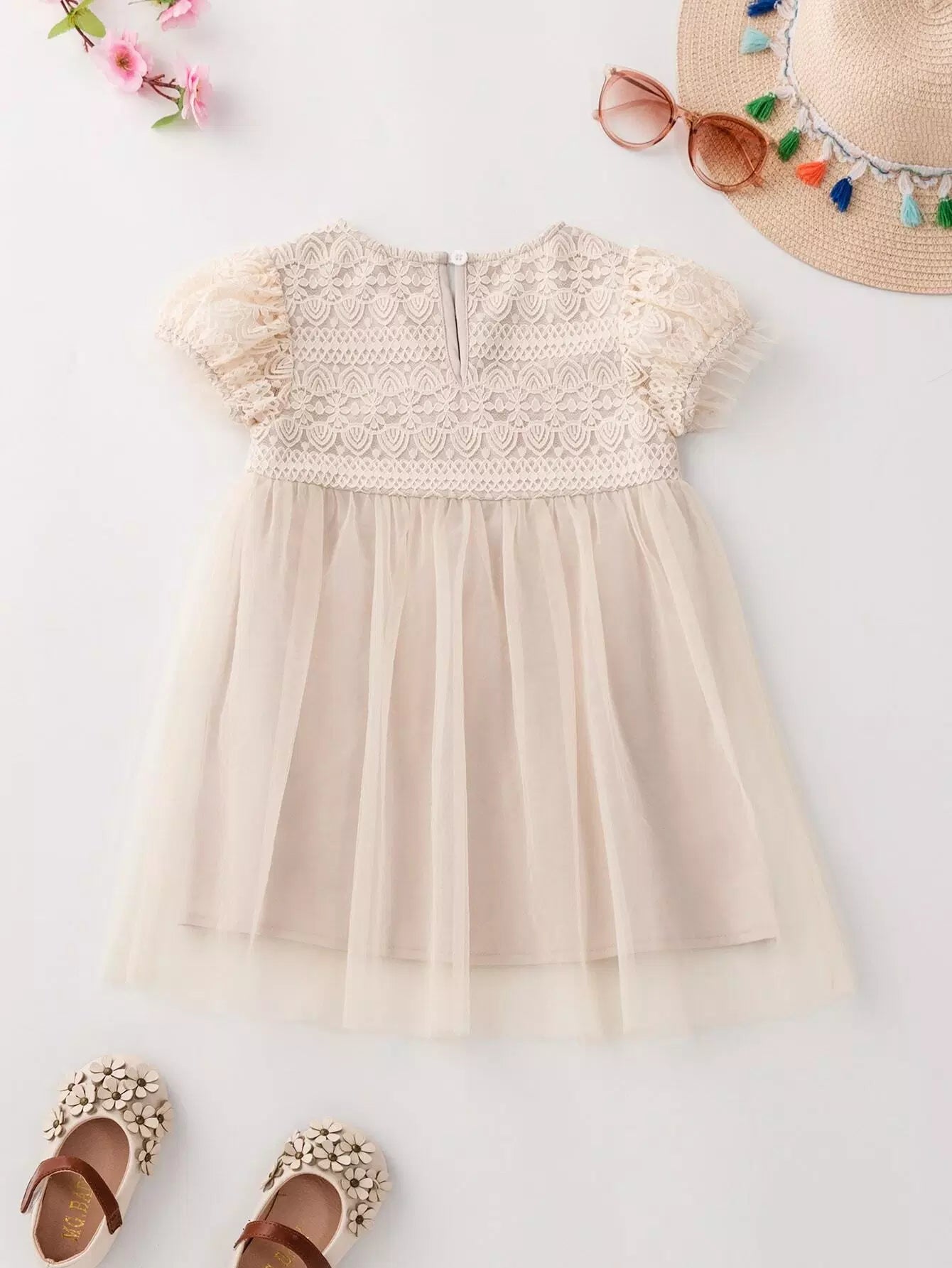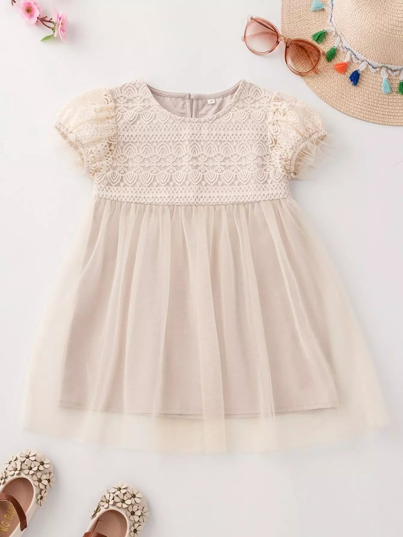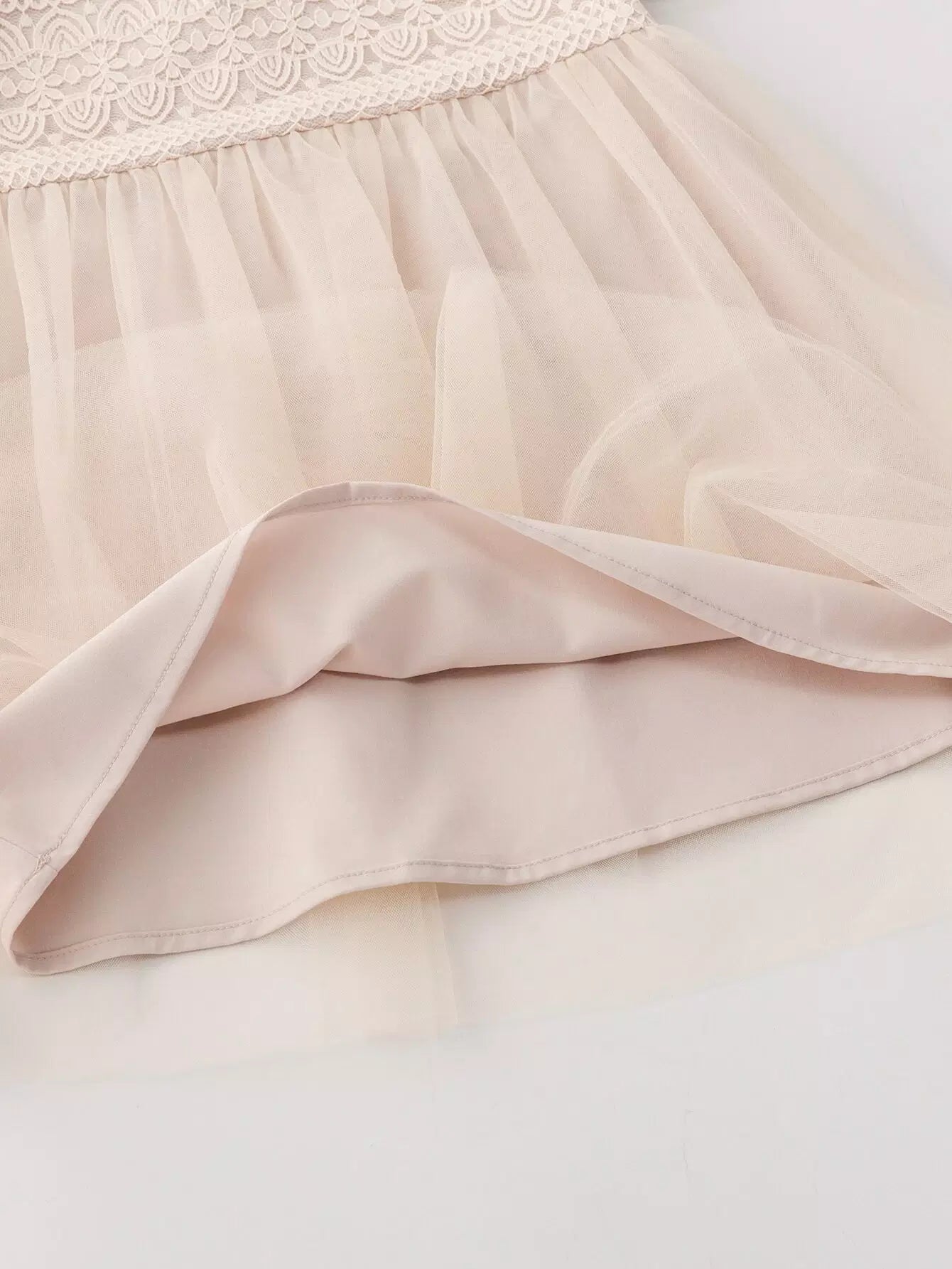 الأطفال - فستان بحاشية شبكية من الدانتيل المتباين للفتيات الصغيرات