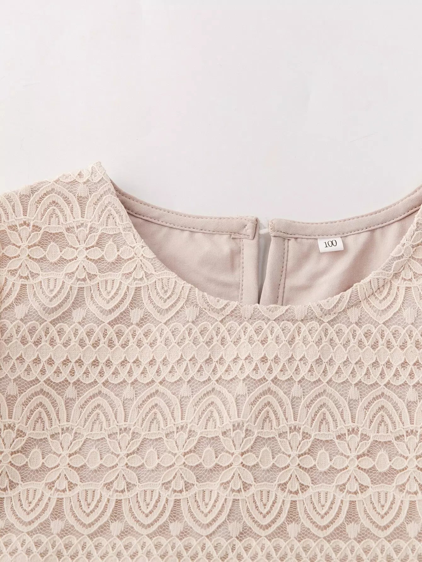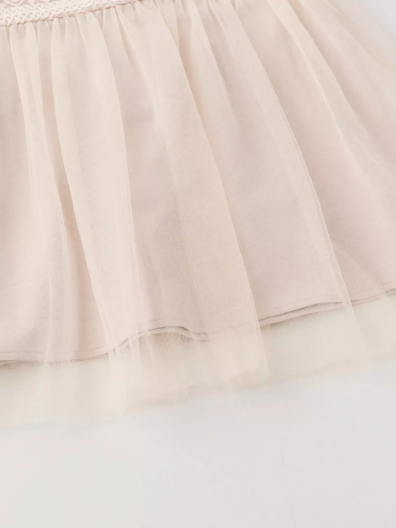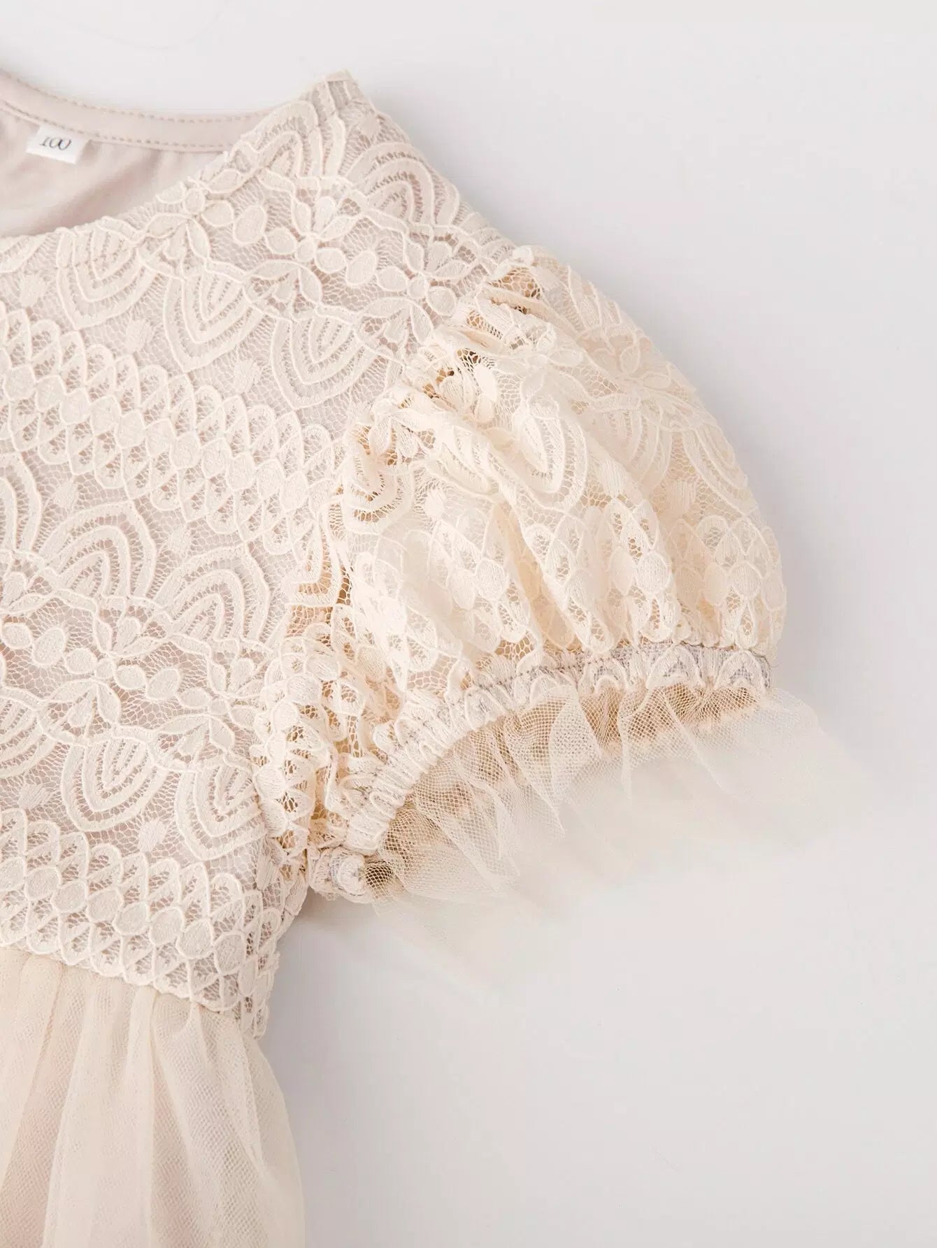 الأطفال - فستان بحاشية شبكية من الدانتيل المتباين للفتيات الصغيرات