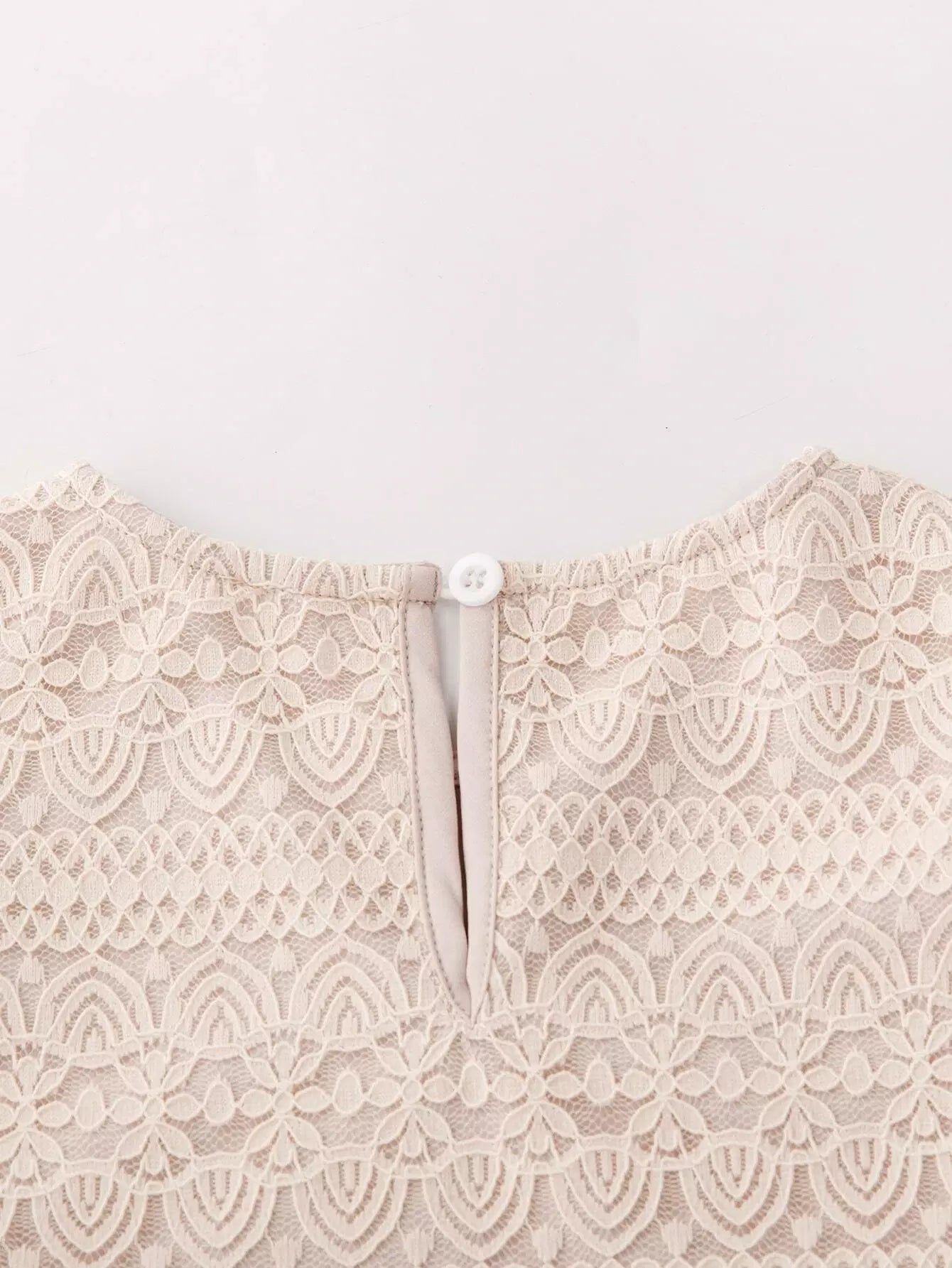 فستان بنات صغيرات بحافة دانتيل شبكي بلون مغاير