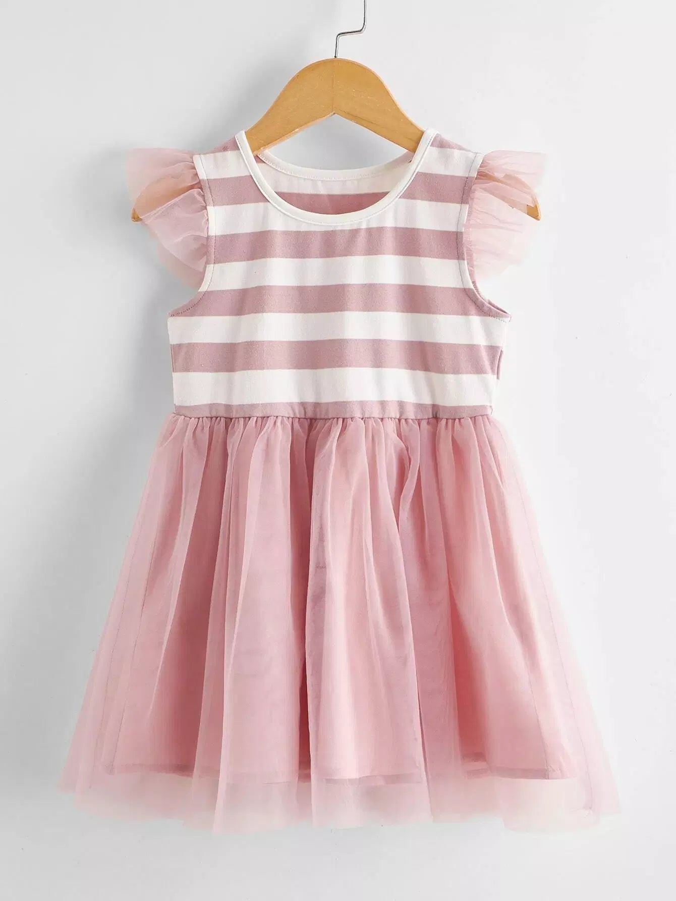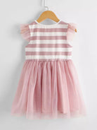 فستان بنات صغيرات صغيرات فستان سموك مخطط شبكي بلون مغاير