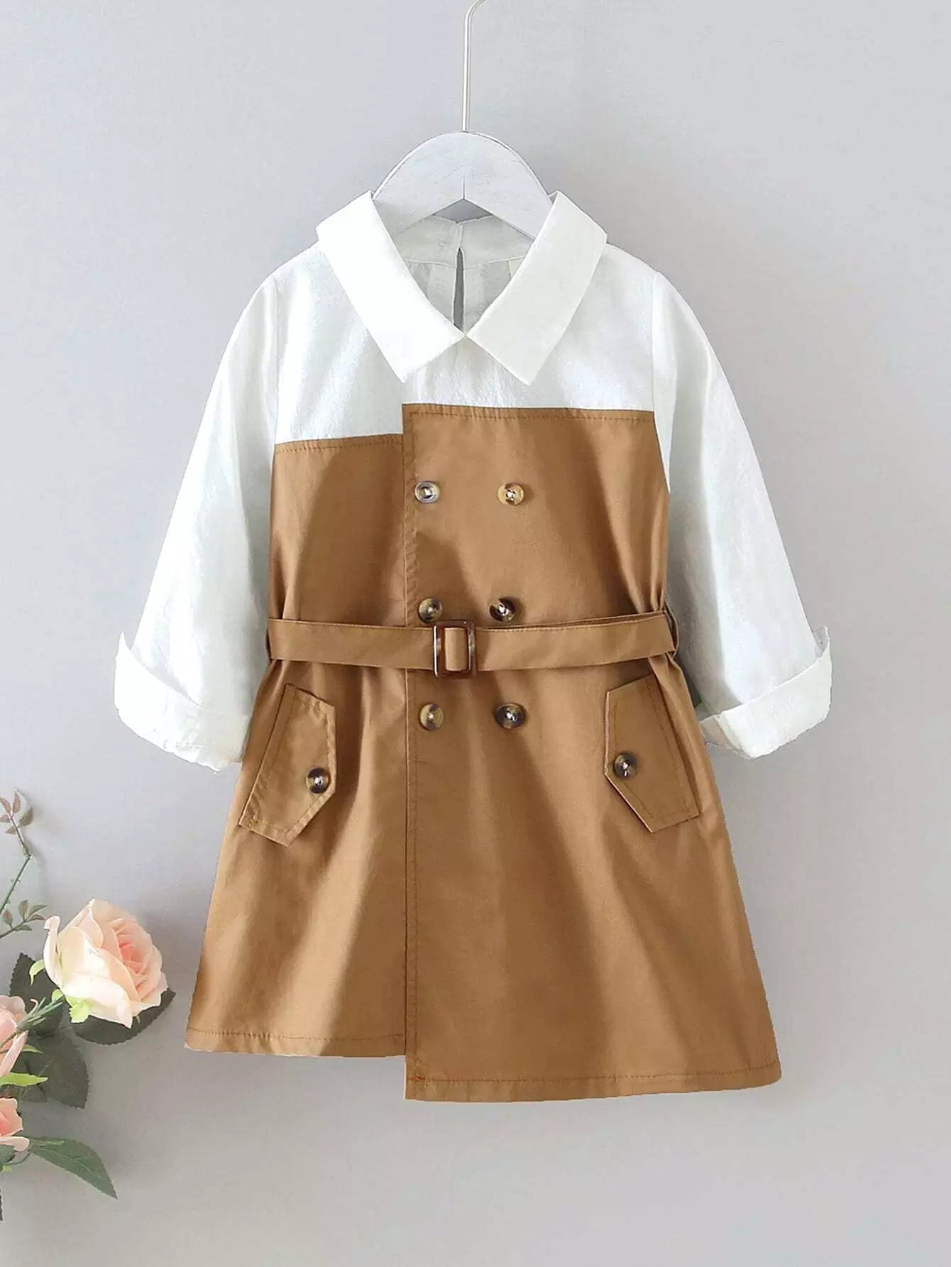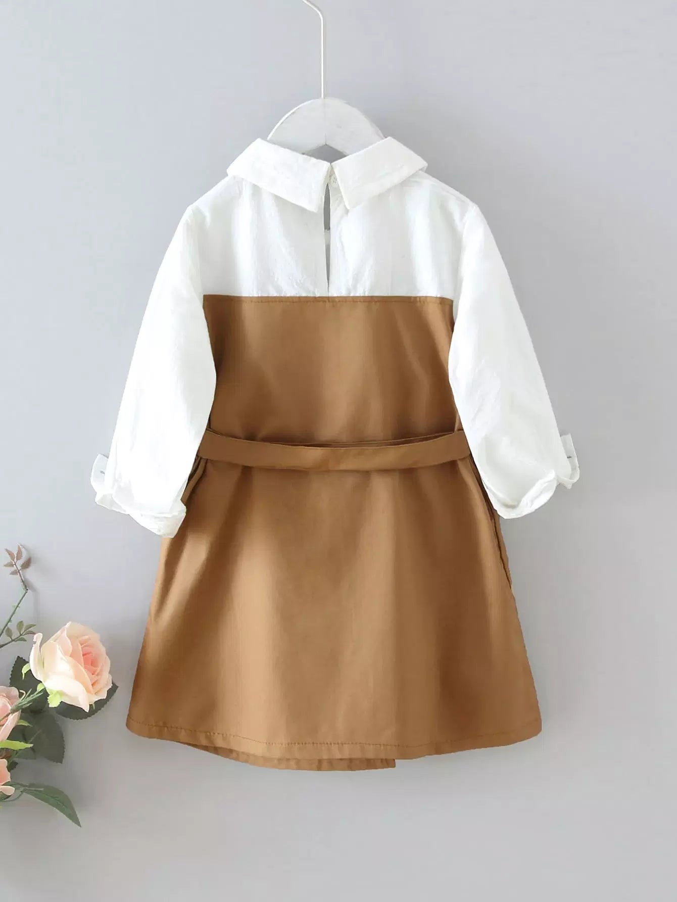 فستان مزدوج الصدر للفتيات الصغيرات بلوحة متباينة بدون حزام