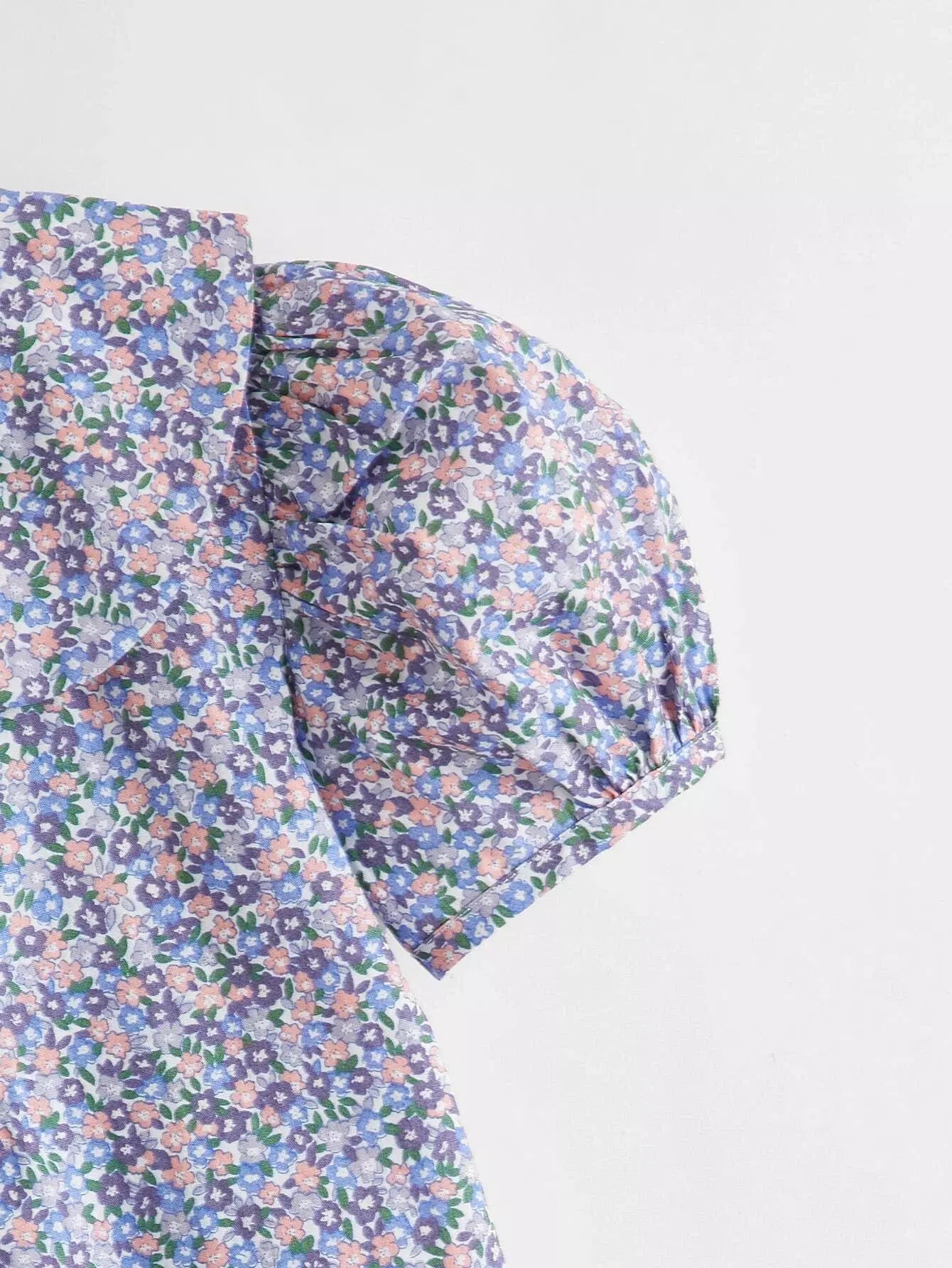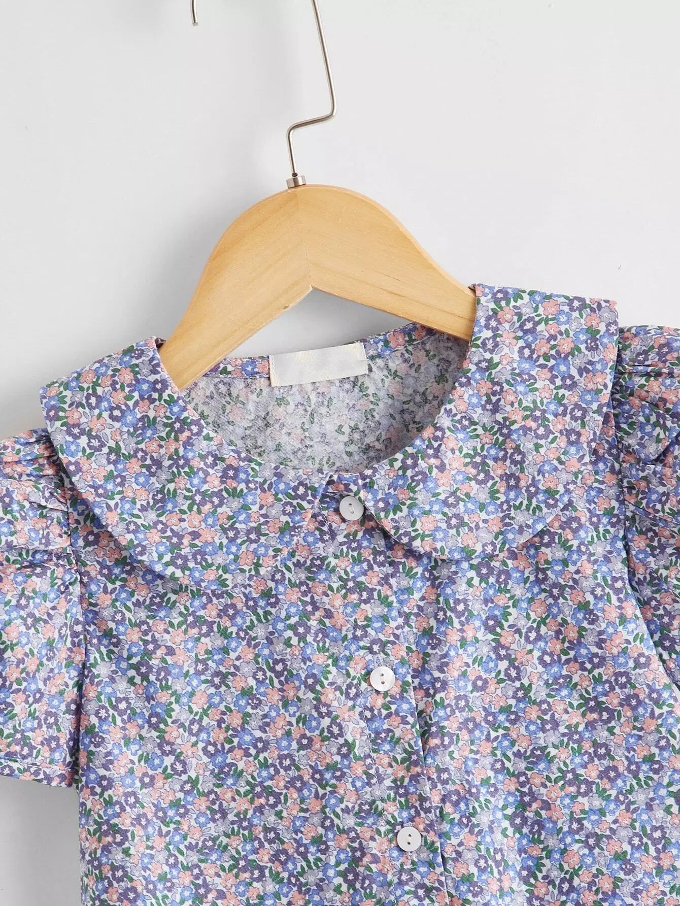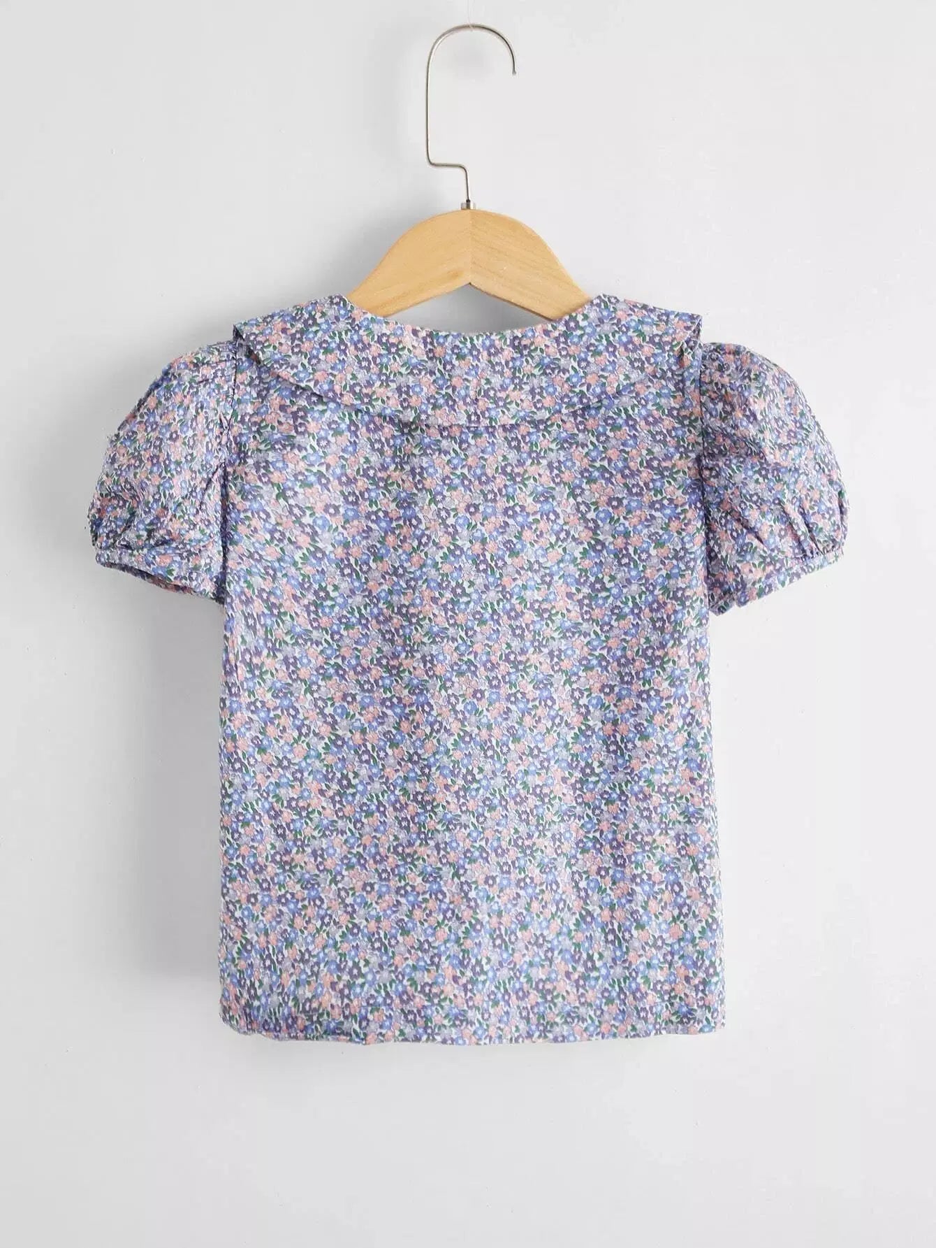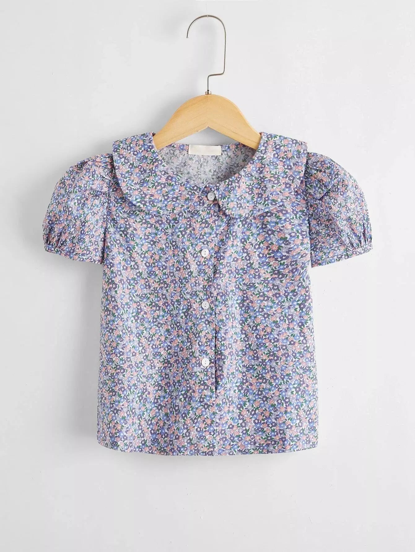 بلوزة بأكمام منفوشة بأزرار أمامية بأزرار زهرية للبنات الصغار