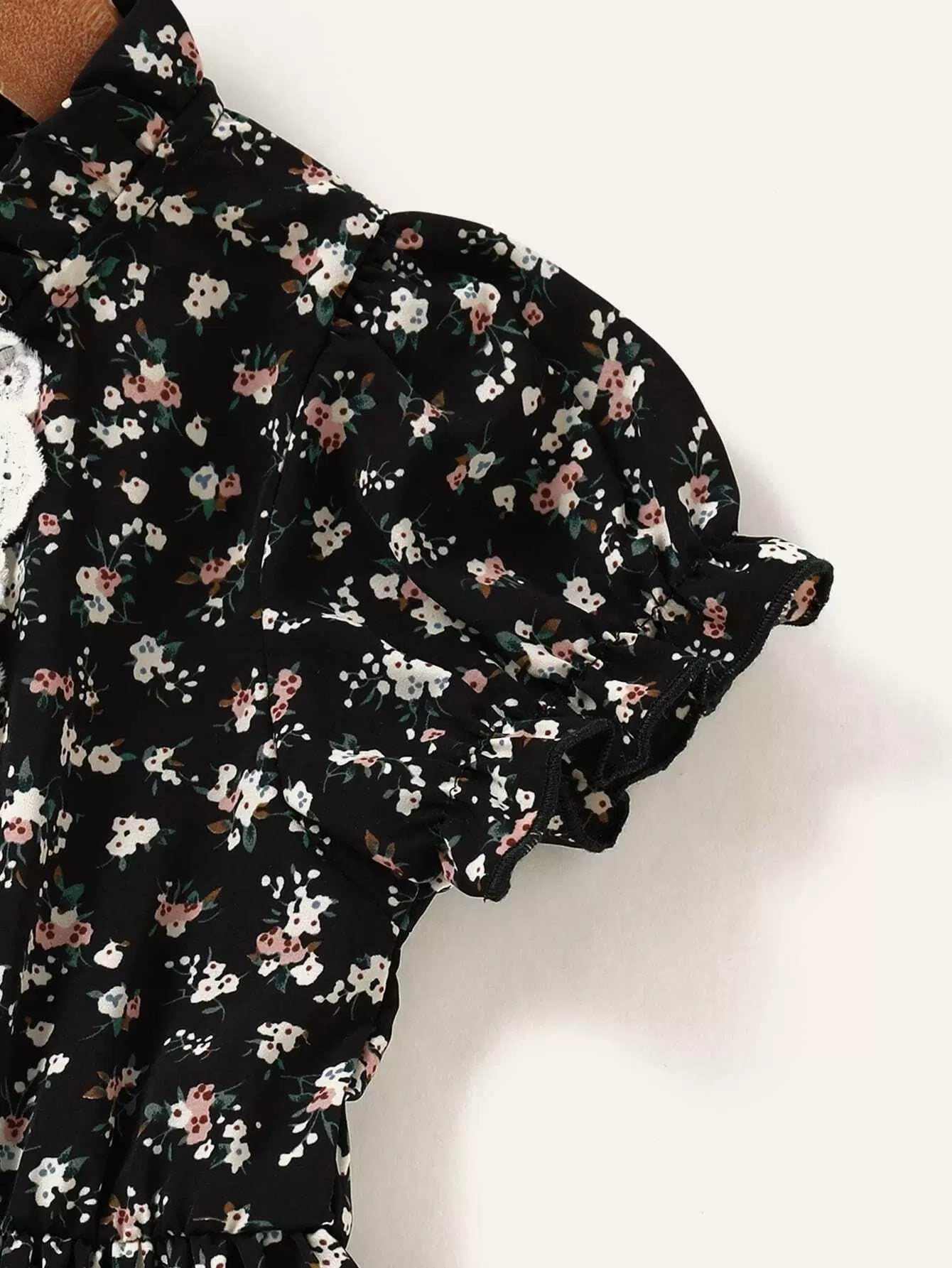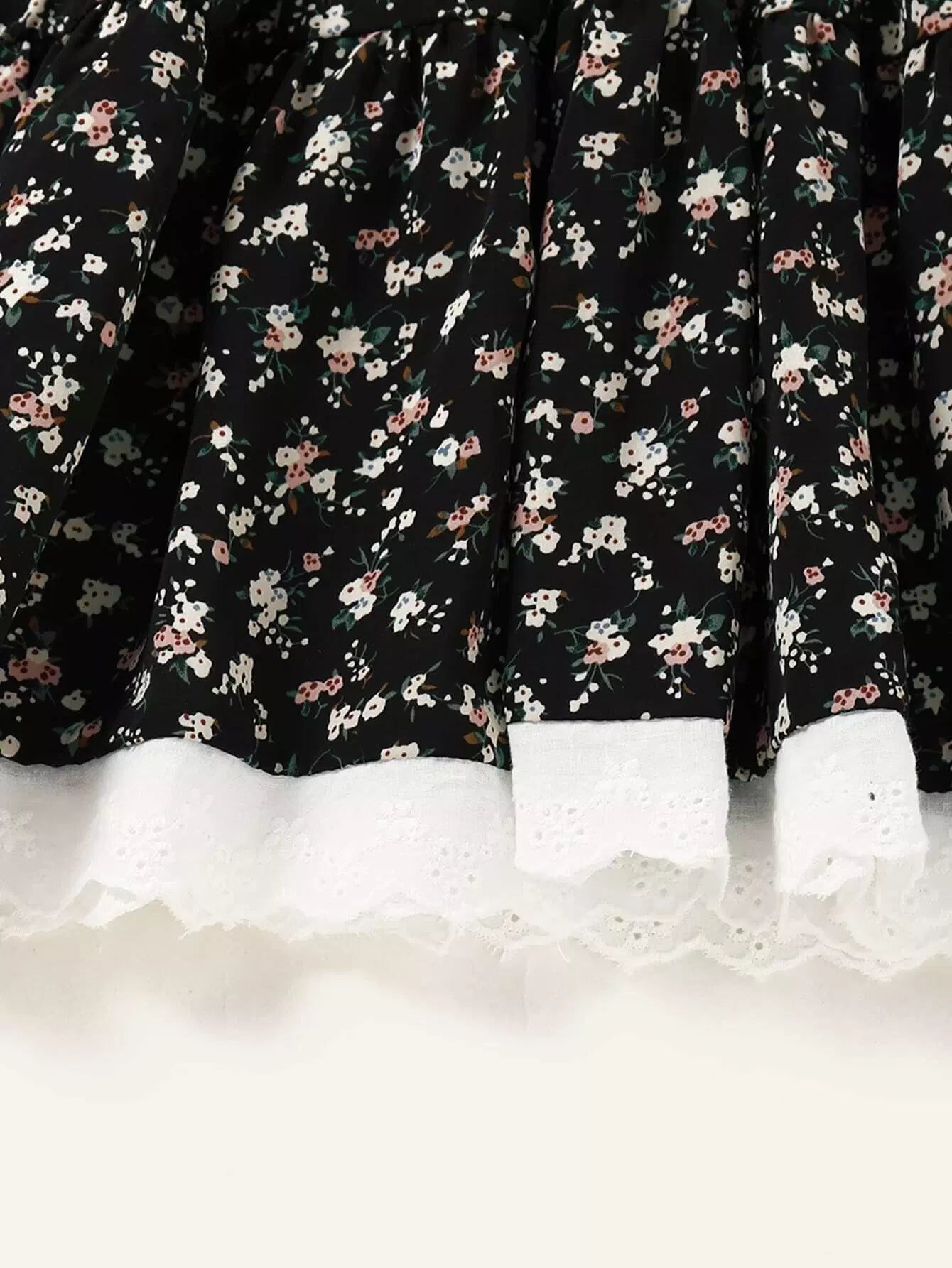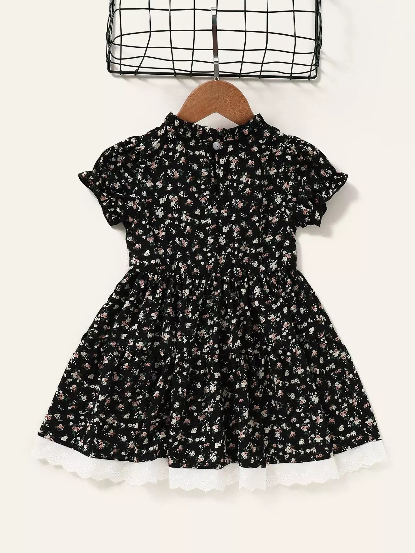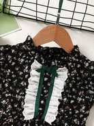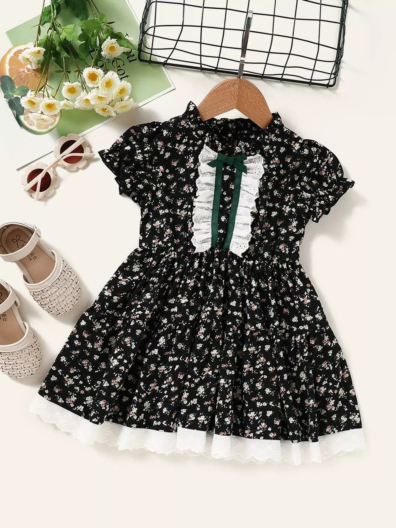 فستان مكشكش مزين بالورود والورود بلون متباين للبنات الصغار