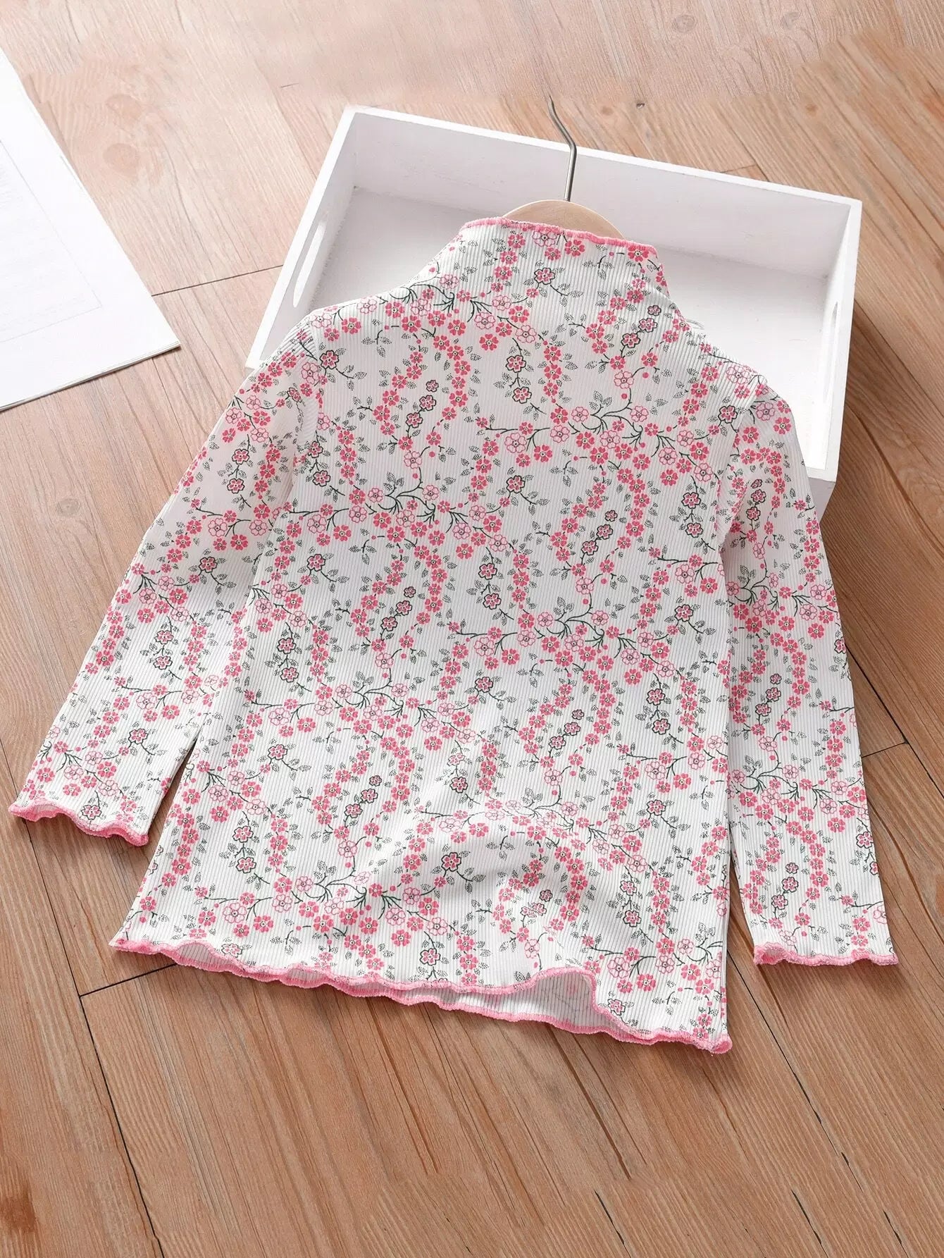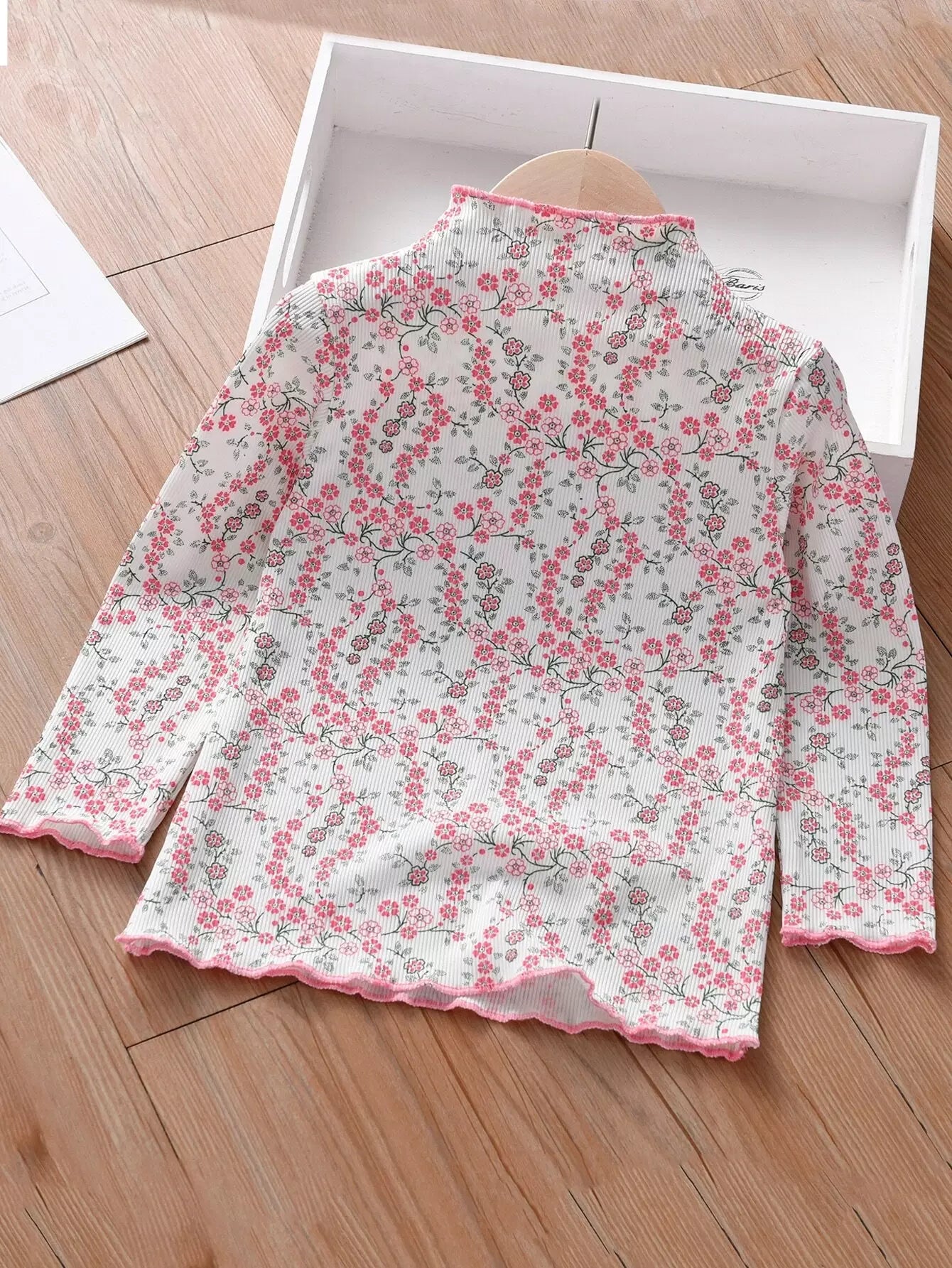 تي شيرت بناتي صغيرات بقصّة ديتسي مزين بزهور مزينة بالخس