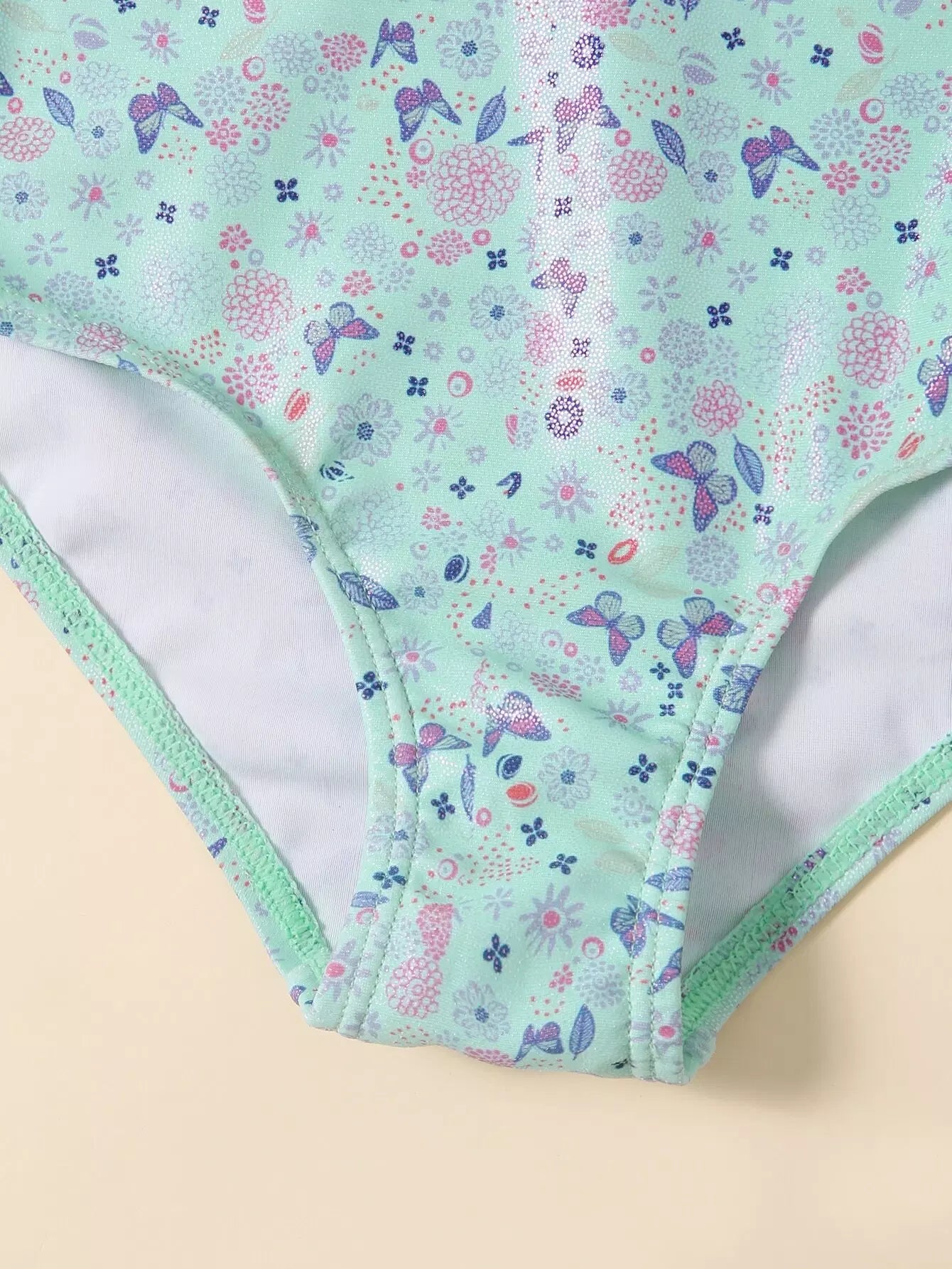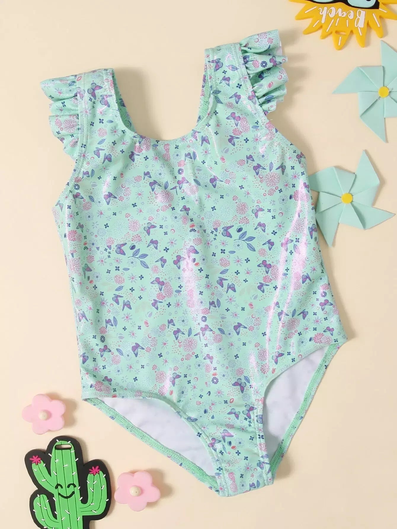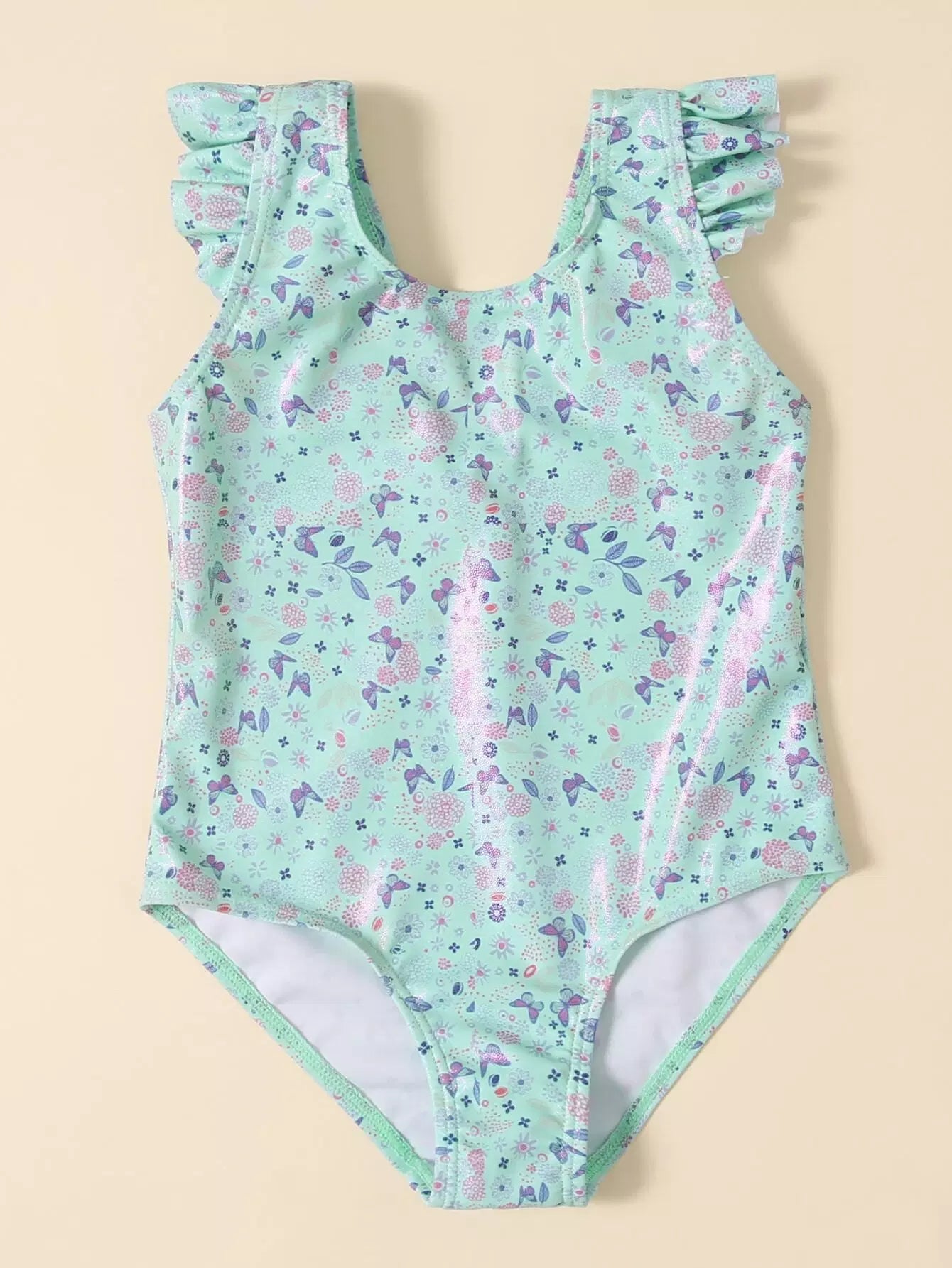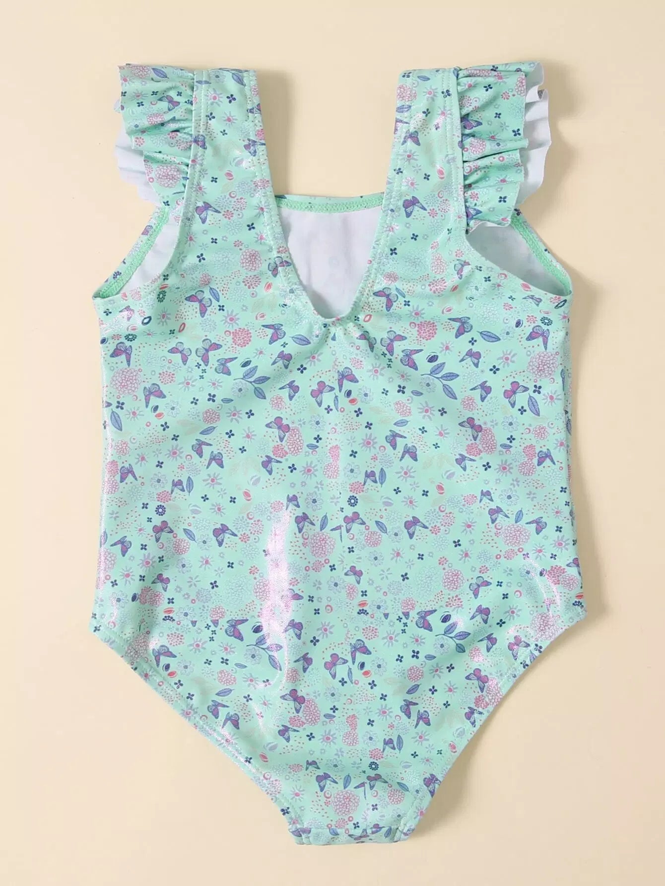 بذلة سباحة بقطعة واحدة مزينة بالورود للبنات الصغار
