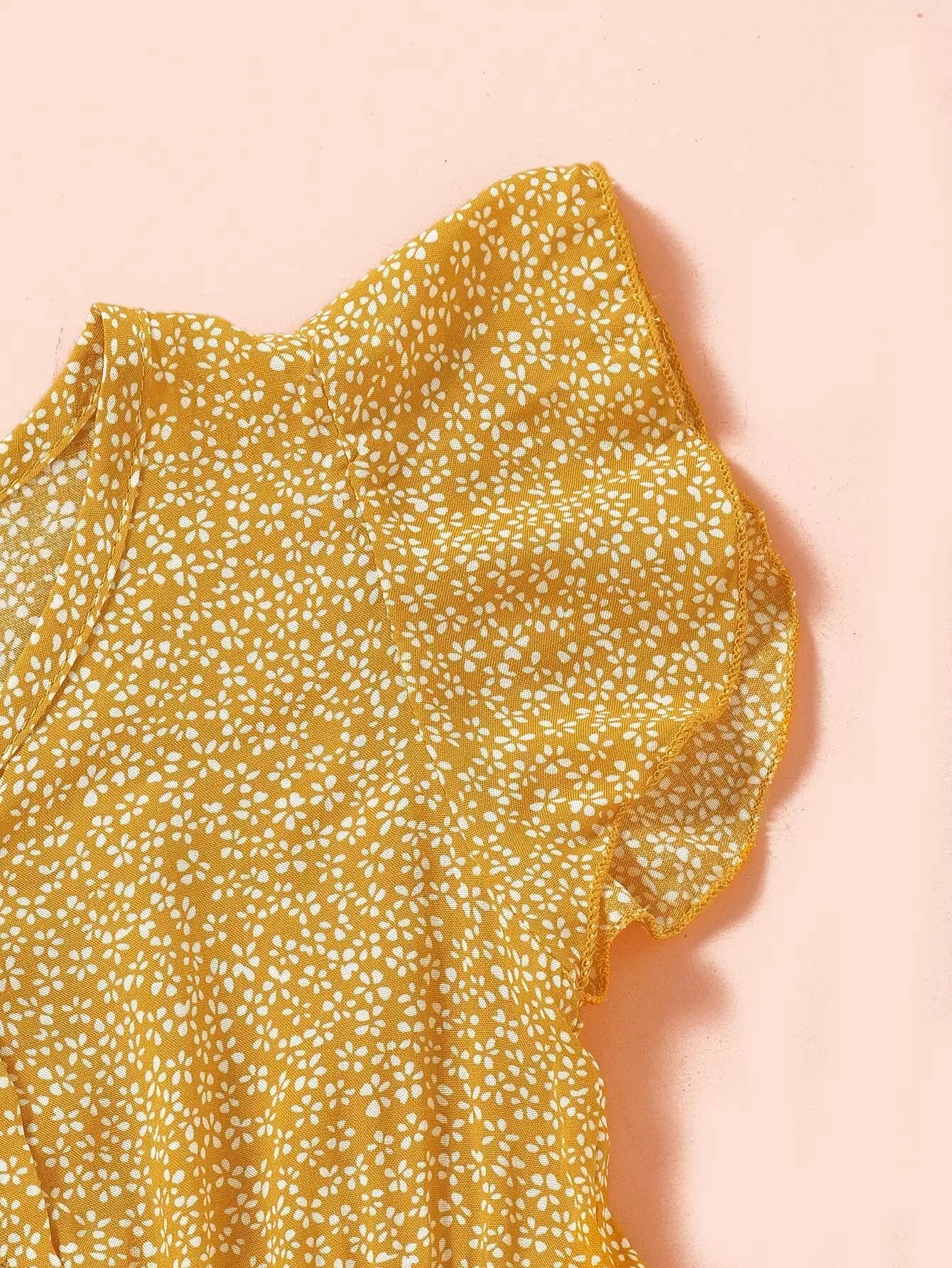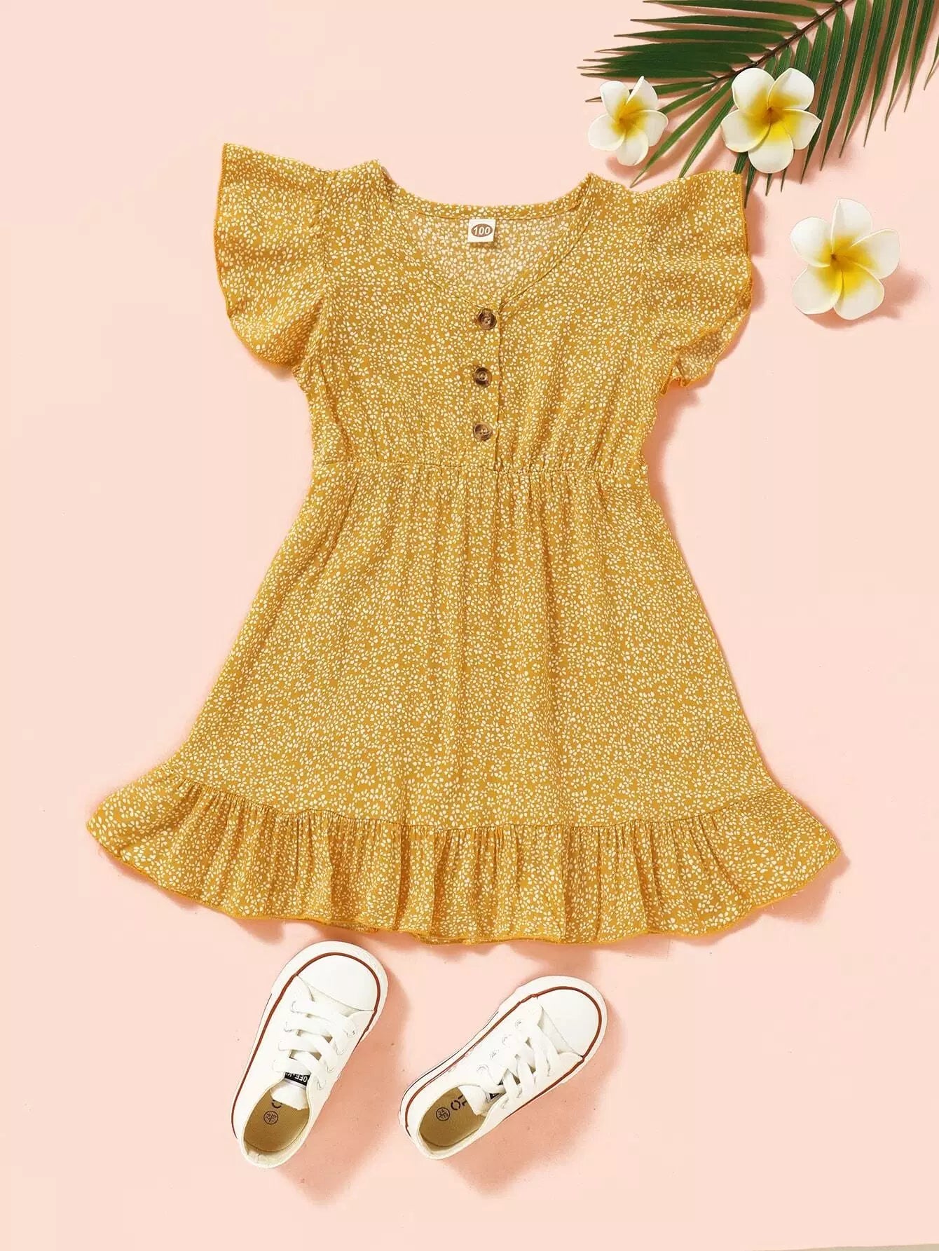 فستان بناتي صغيرات بطبعة أزهار بنصف زر على شكل حرف A بخط على شكل حرف A