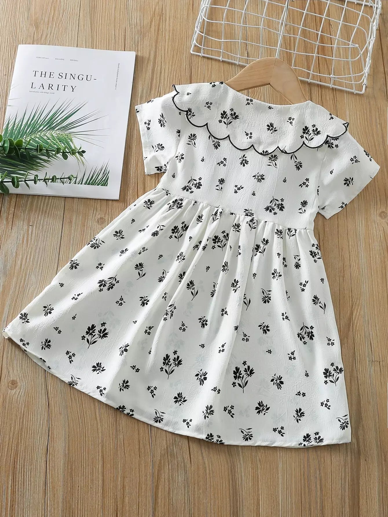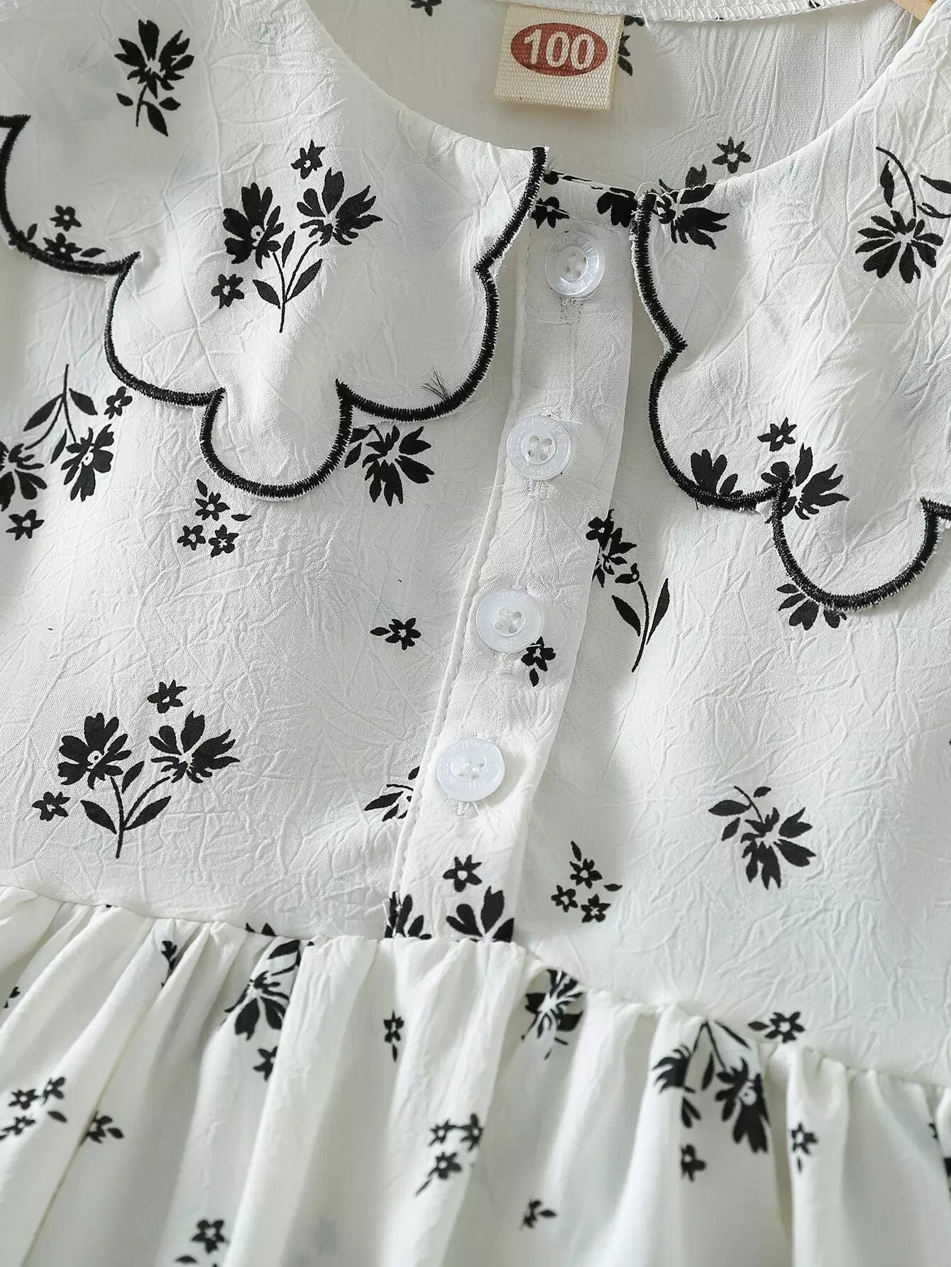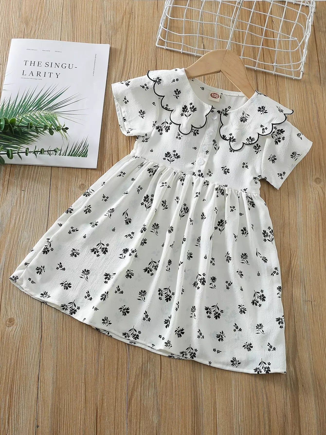 فستان نباتات بياقة دمية صغيرة بنات بياقة صدف مزين بزخارف نباتية