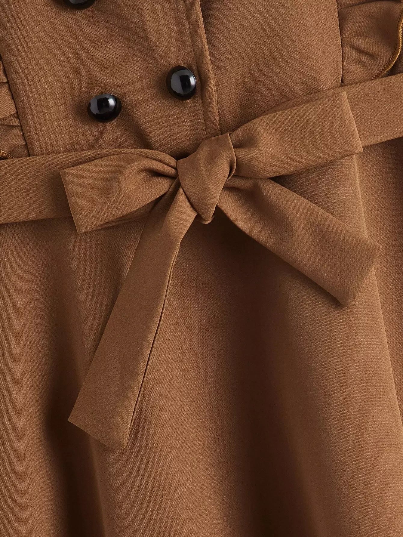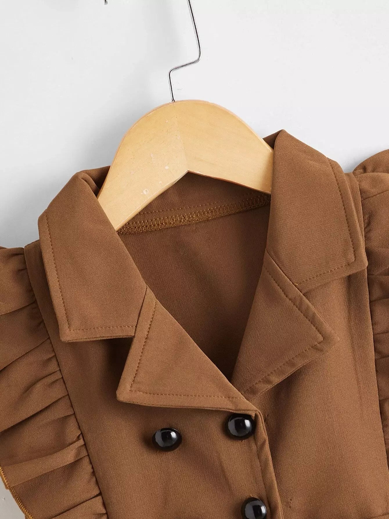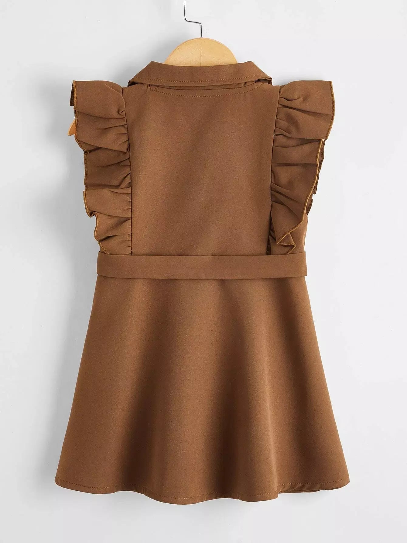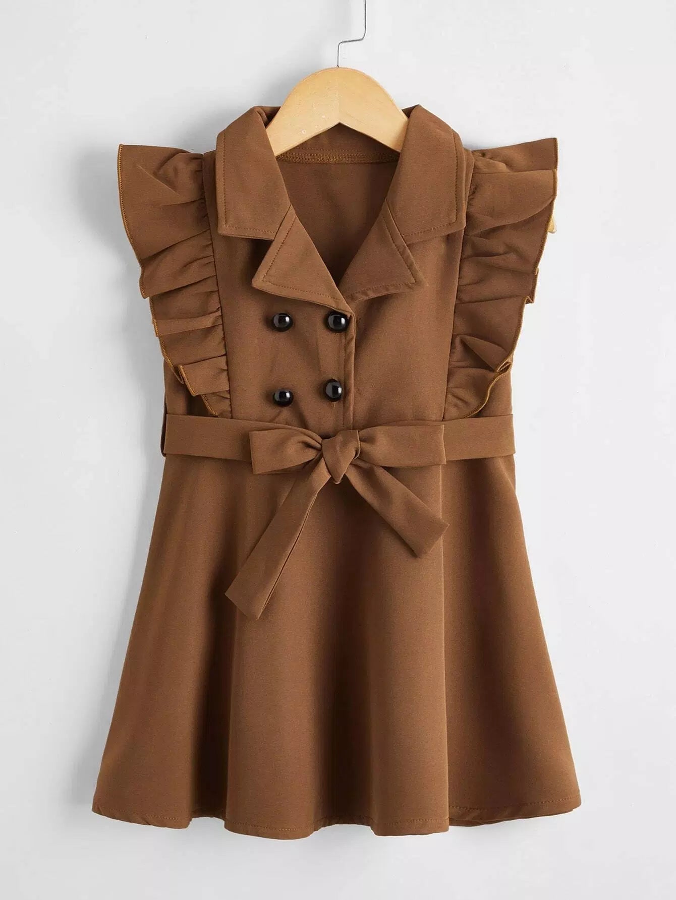 فستان مكشكش مزدوج الصدر للفتيات الصغيرات بدون حزام