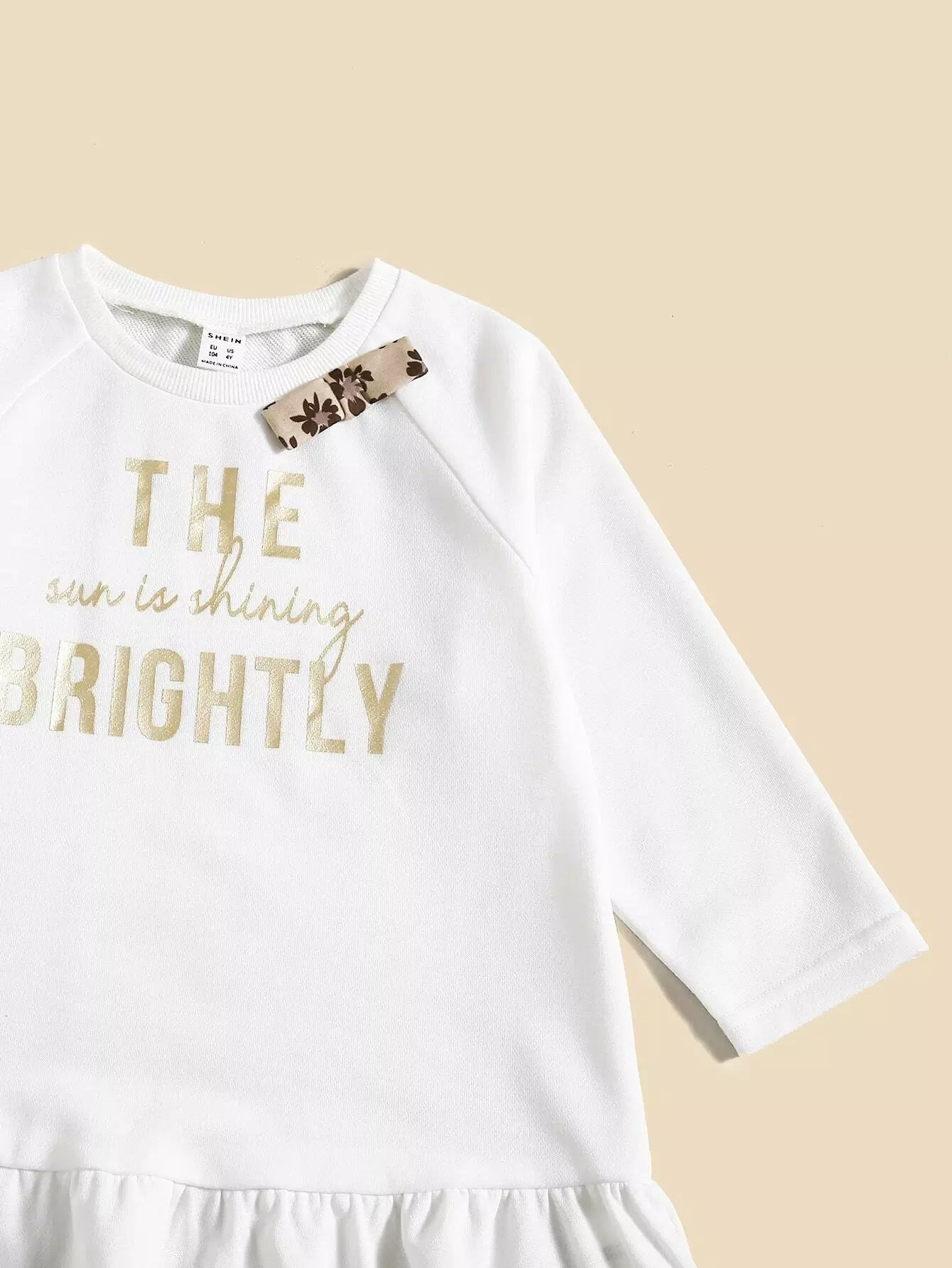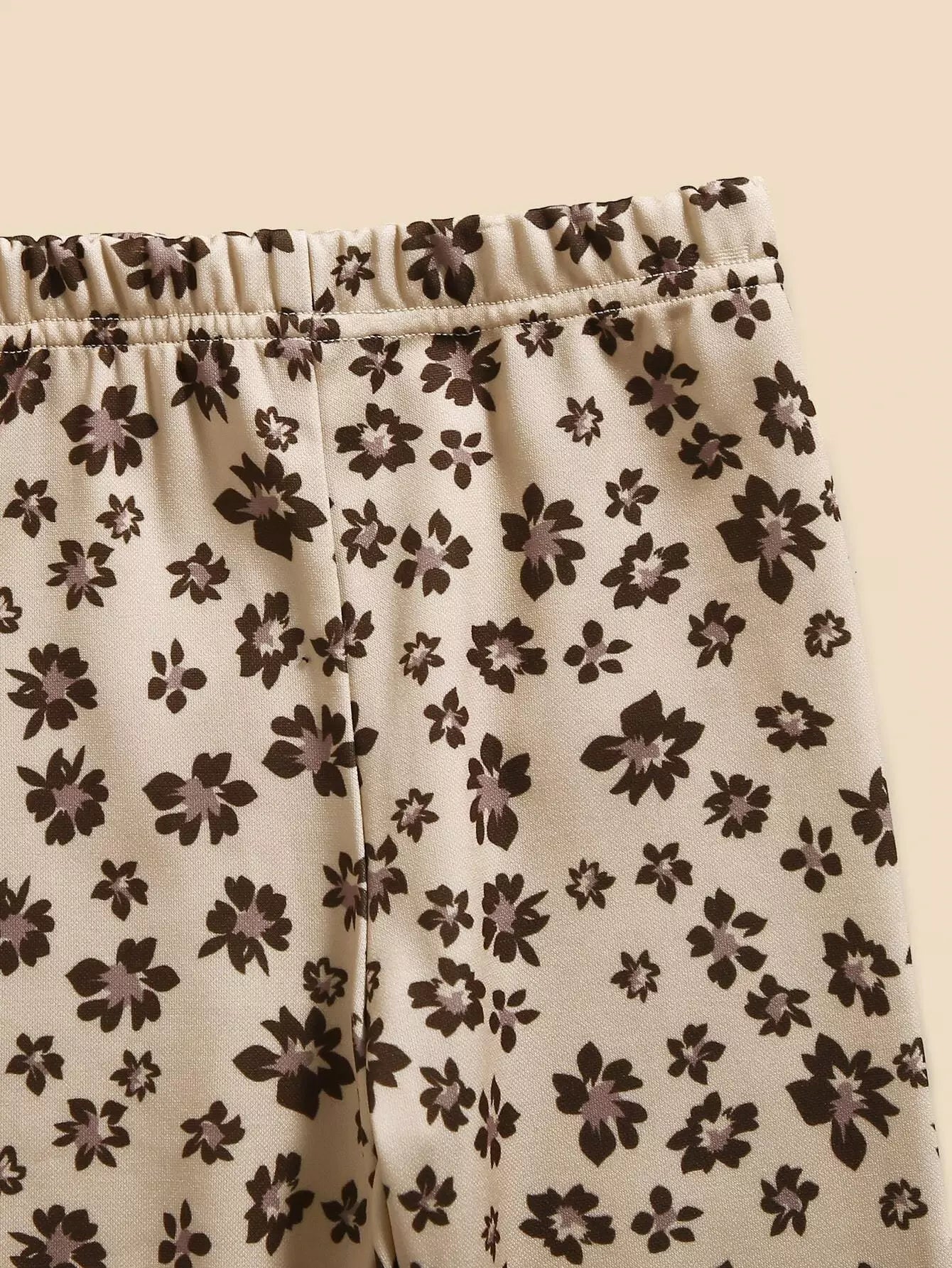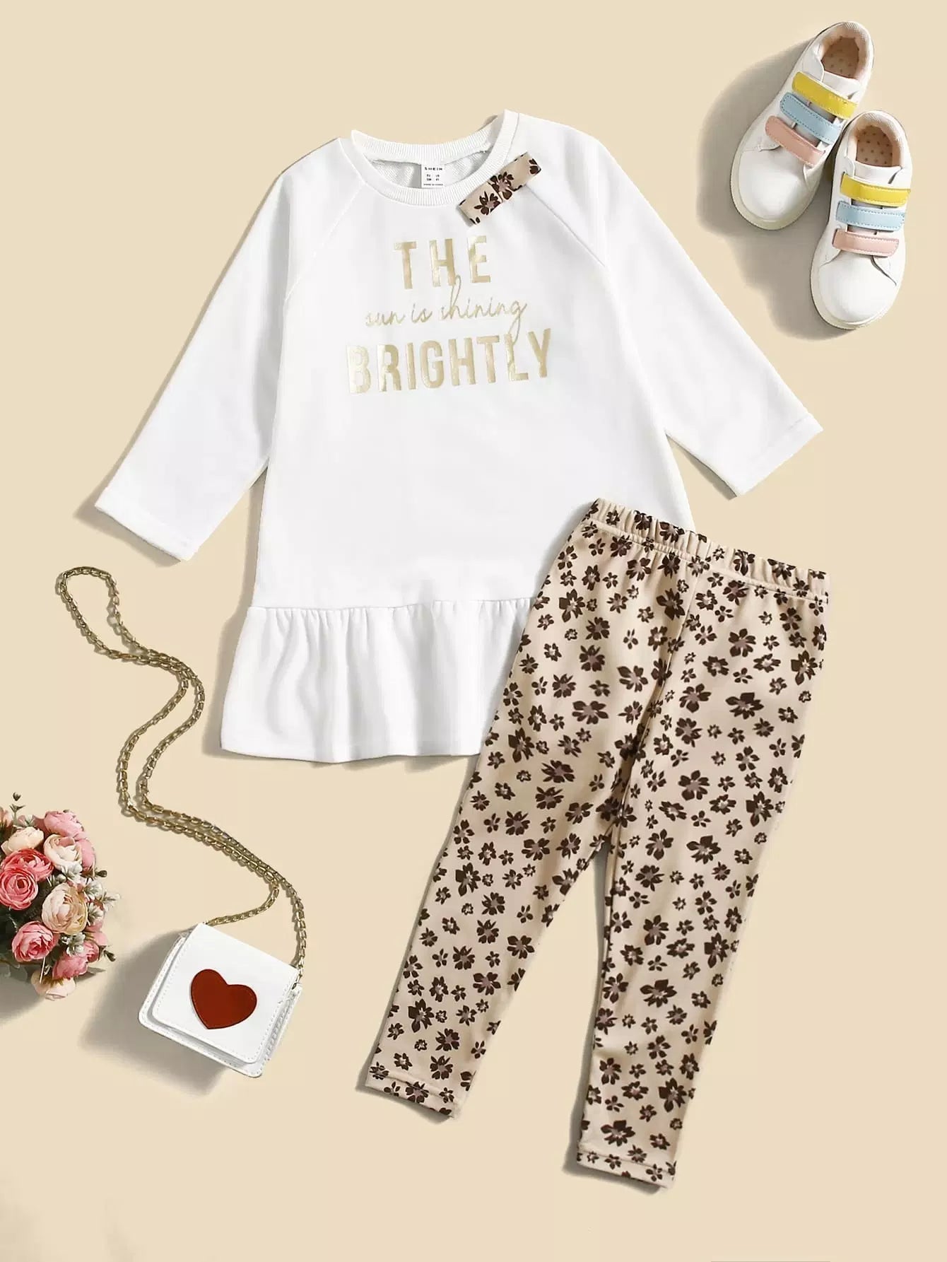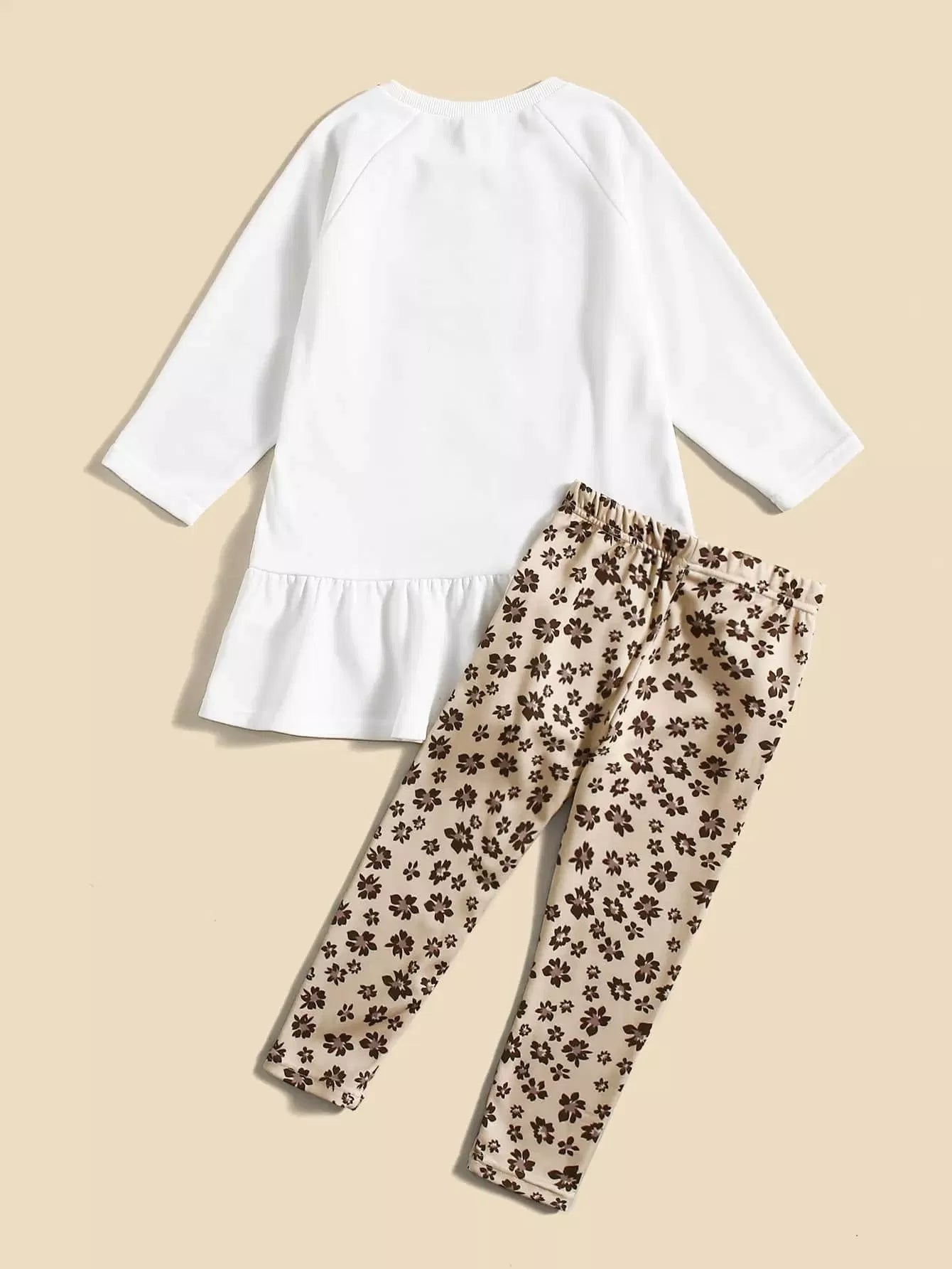 بلوزة وبنطلون ضيق مزين برسومات الأزهار والشعارات للفتيات الصغيرات