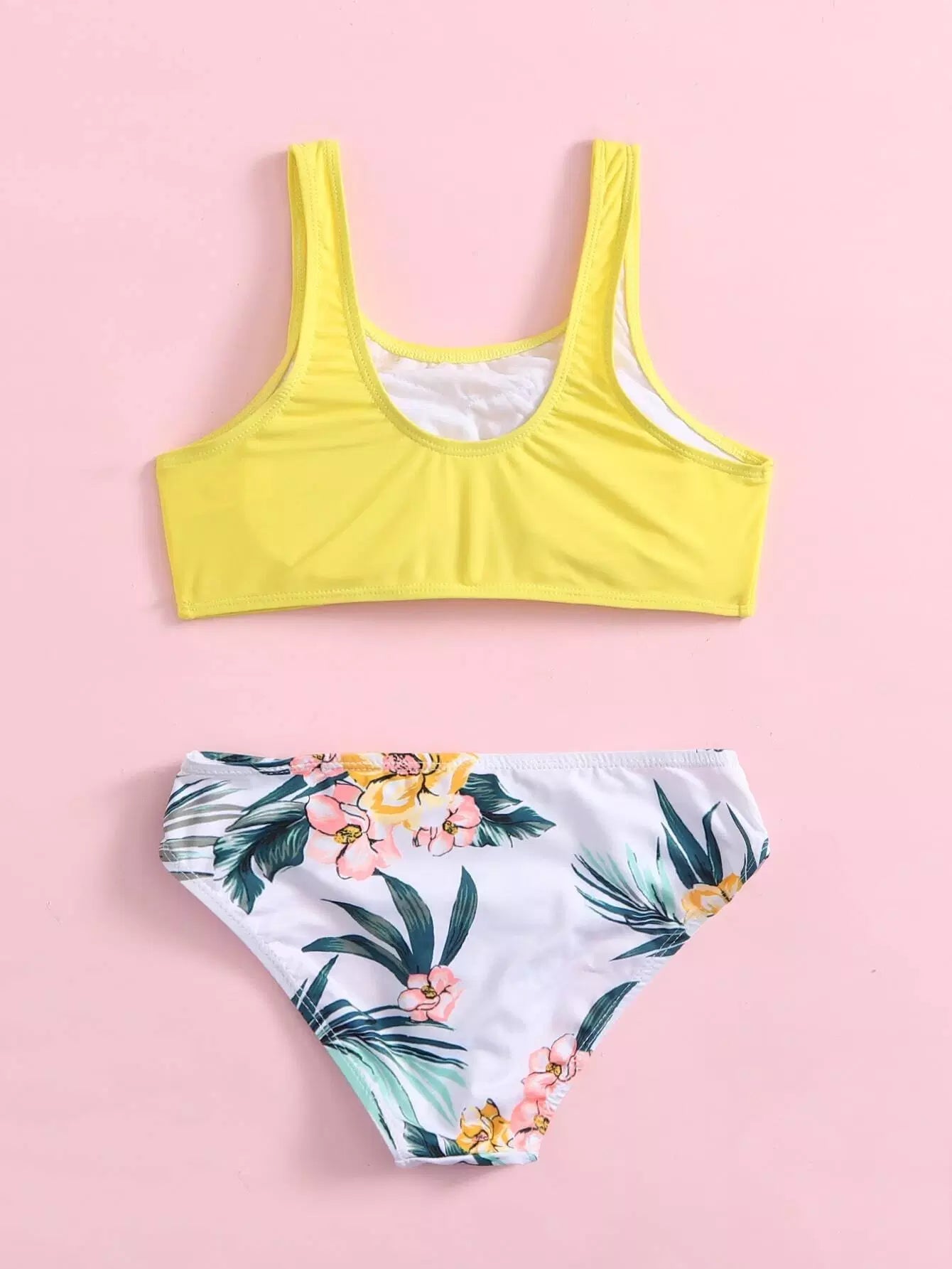 مايوه سباحة بيكيني بعقدة أمامية زهرية للبنات الصغار
