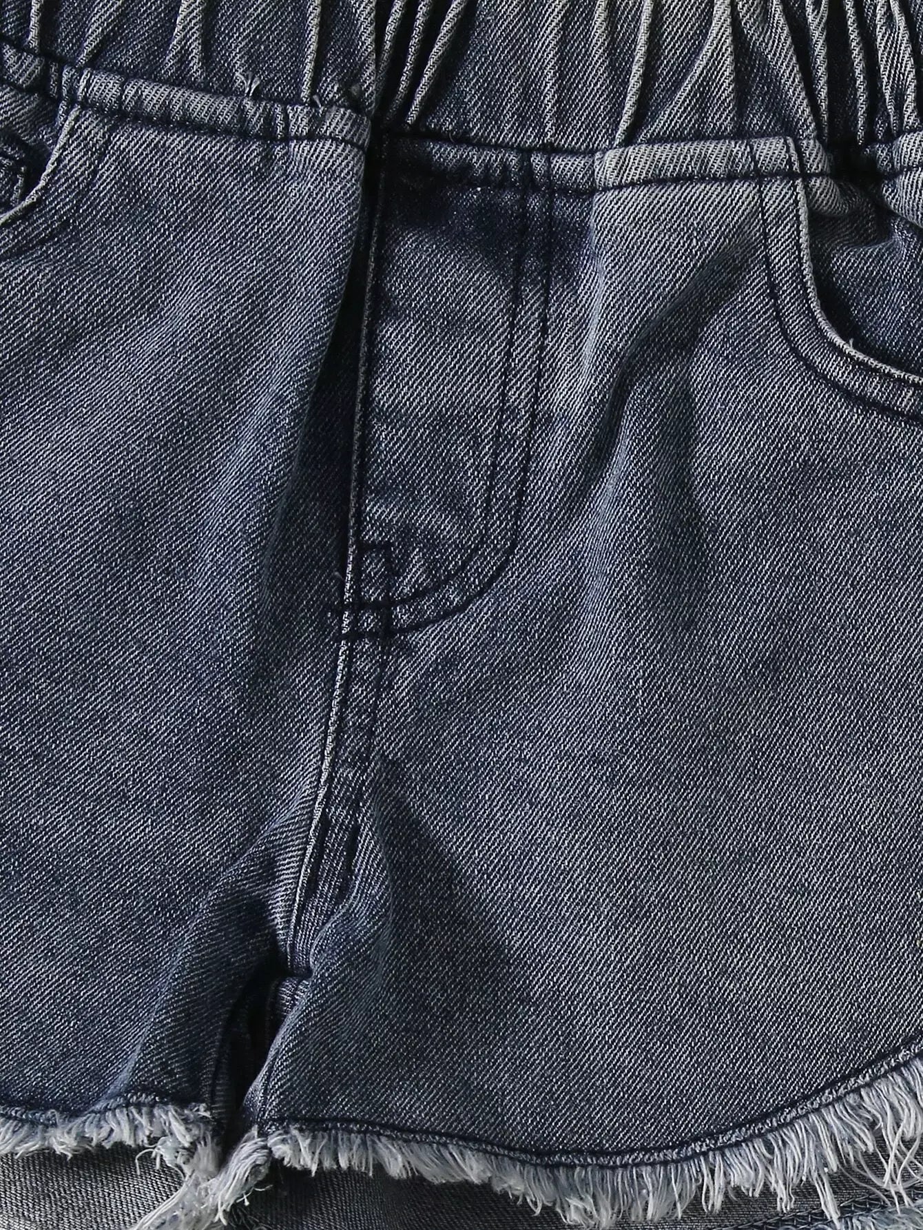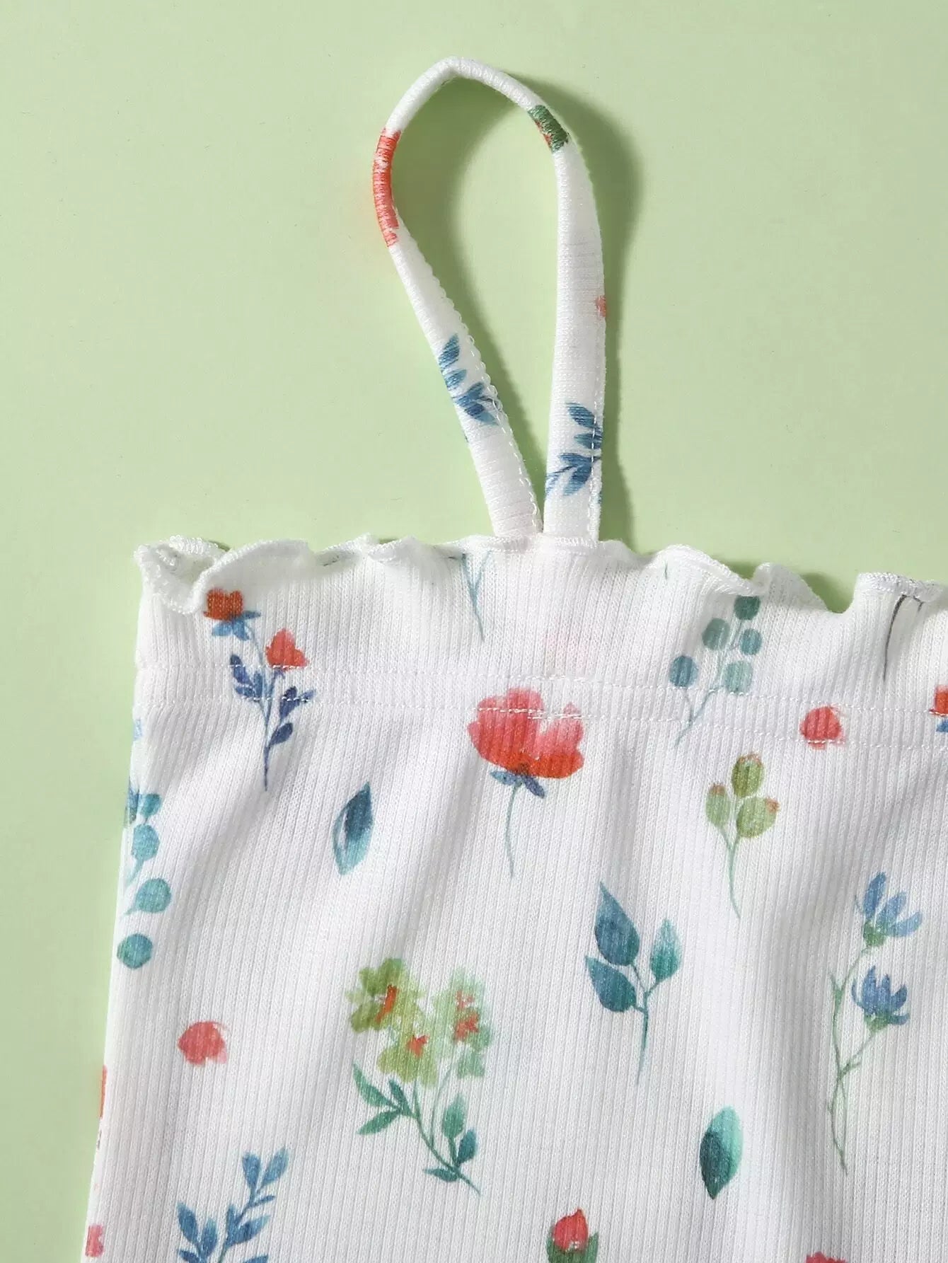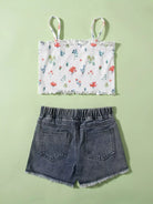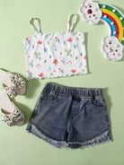 قميص قصير بناتي صغيرات مزين بالزهور والخس مع شورت جينز