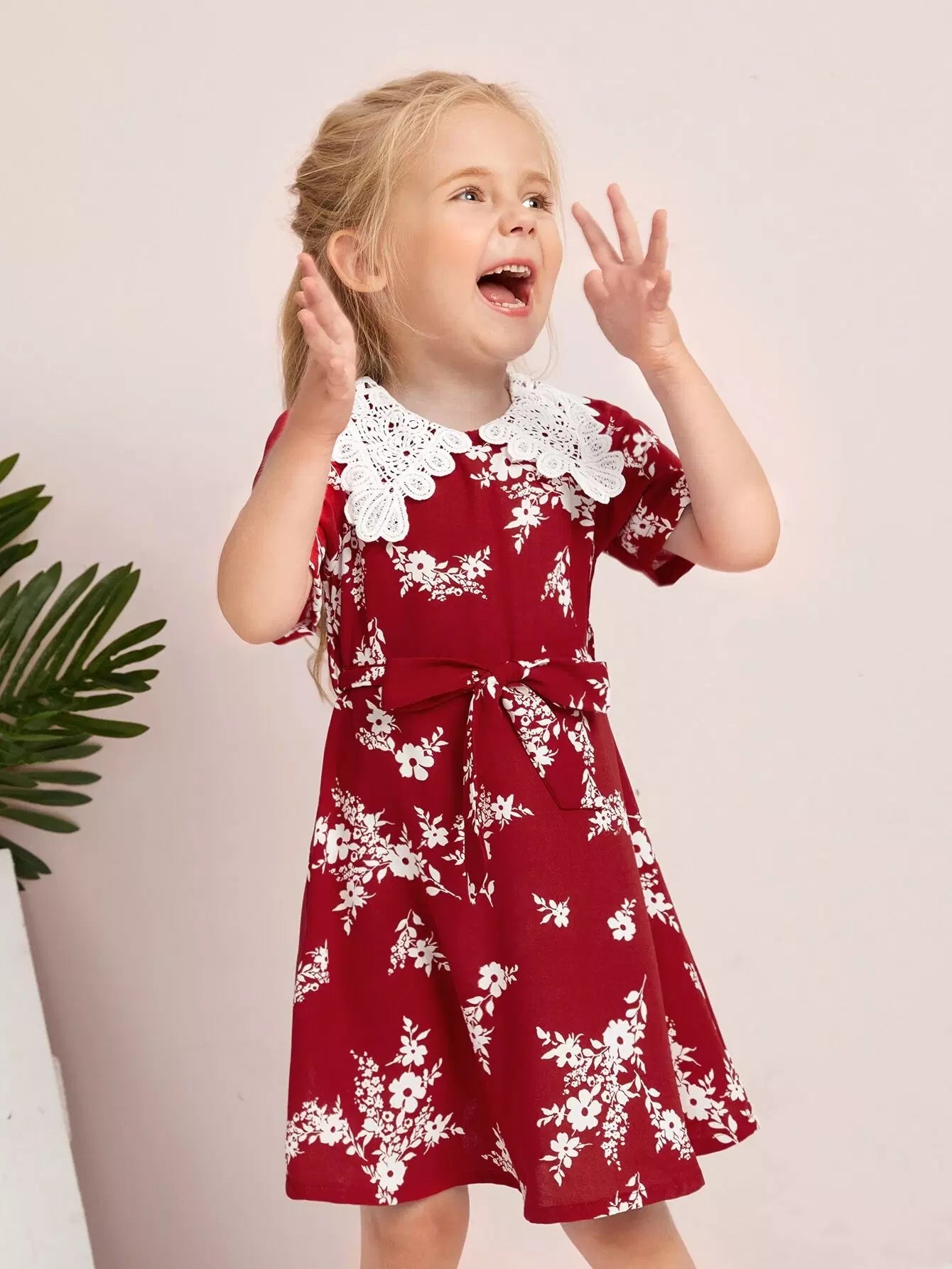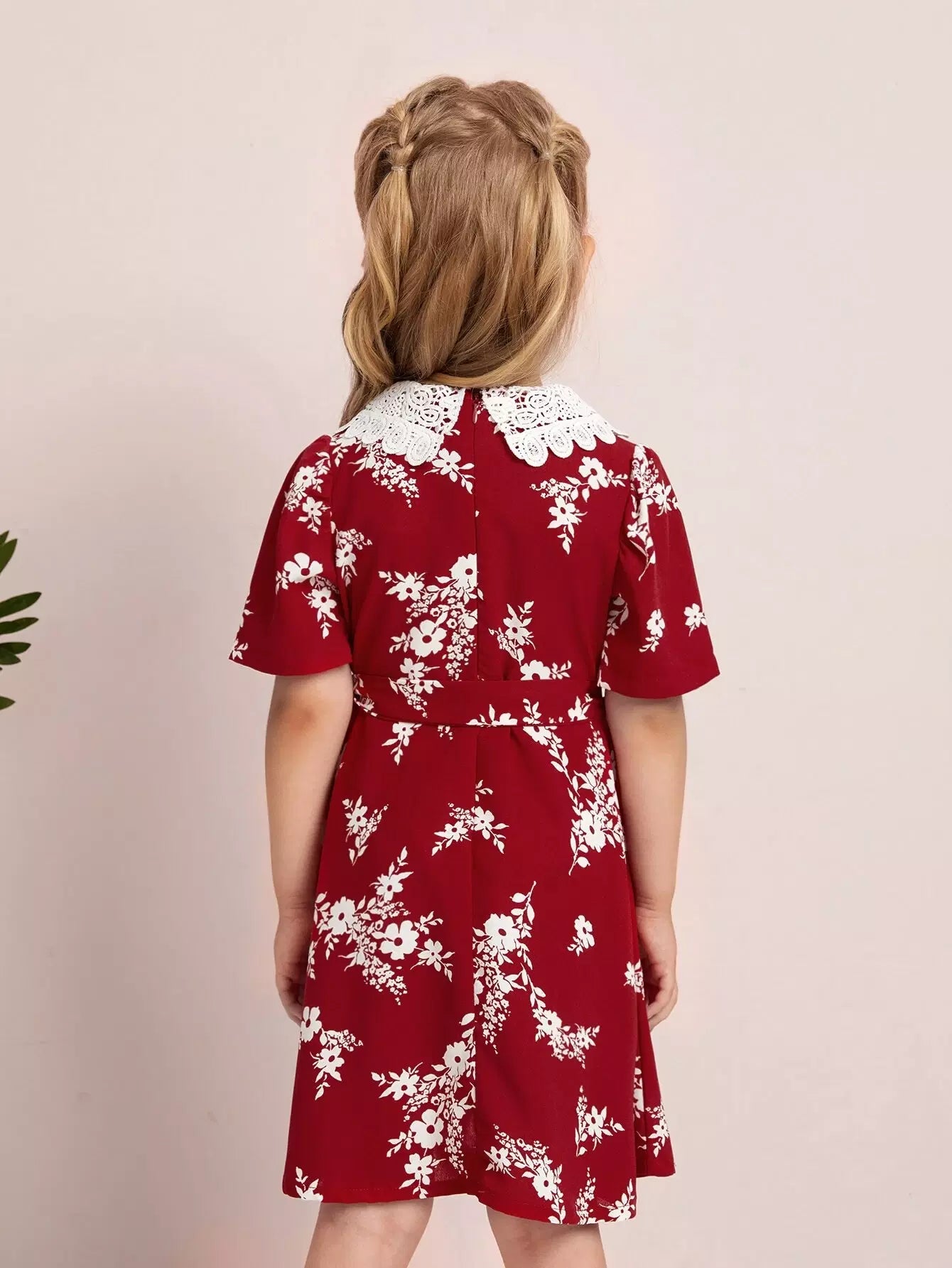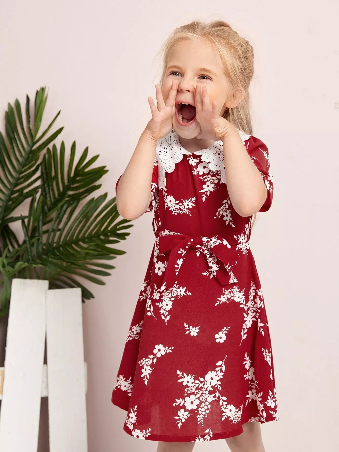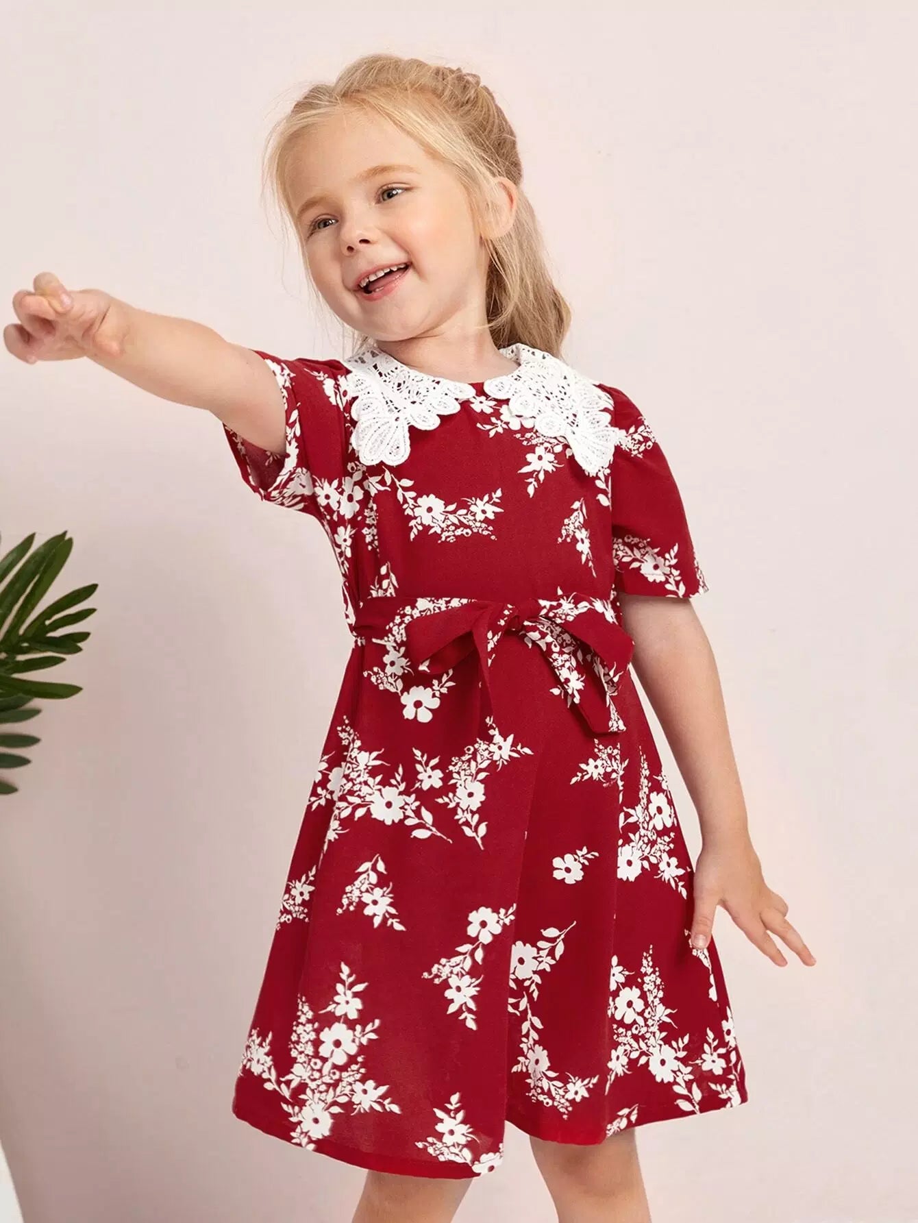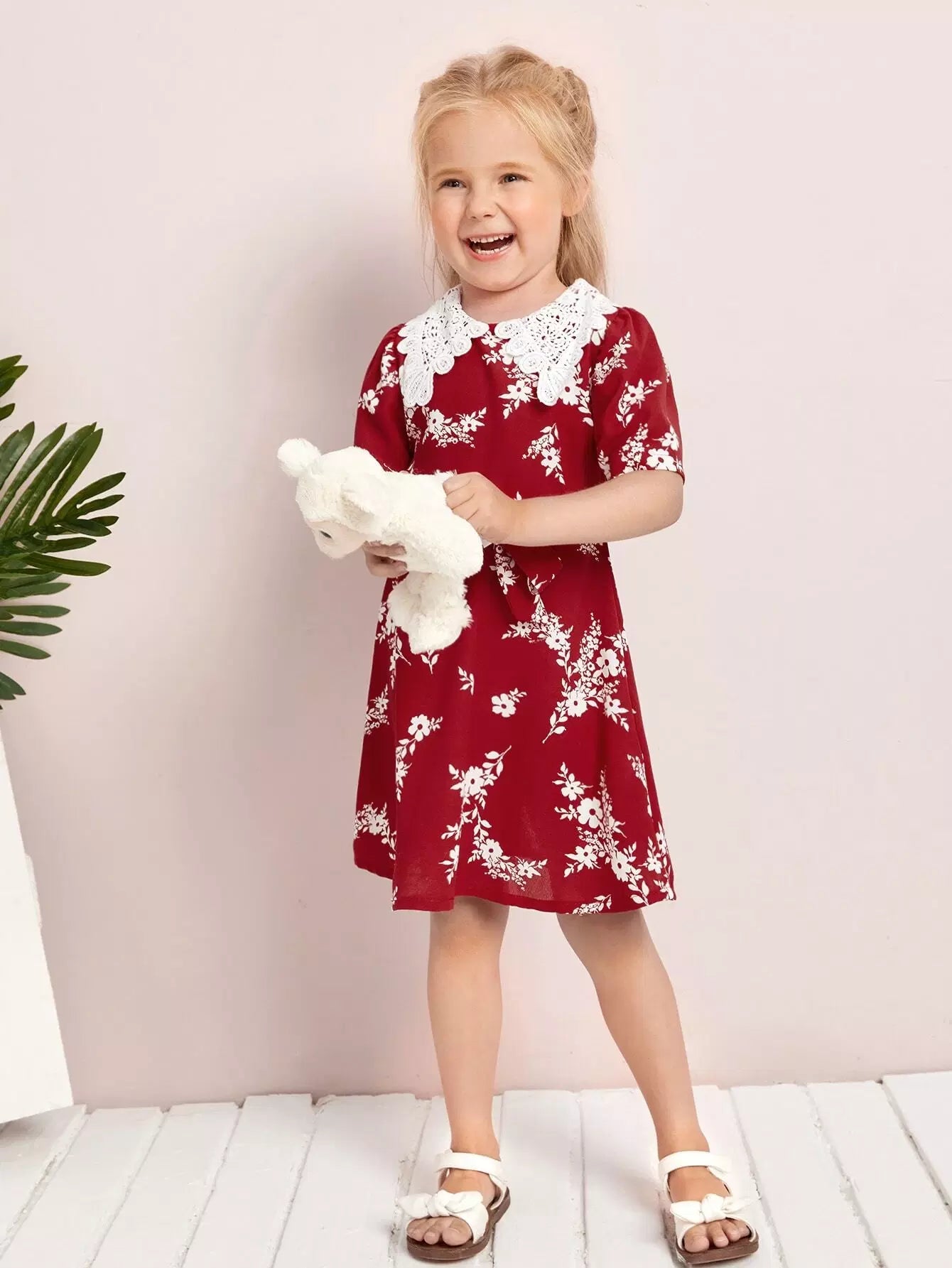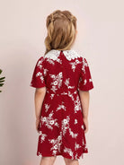 فستان بأكمام منتفخة وطبعة زهور للفتيات الصغيرات بدون حزام