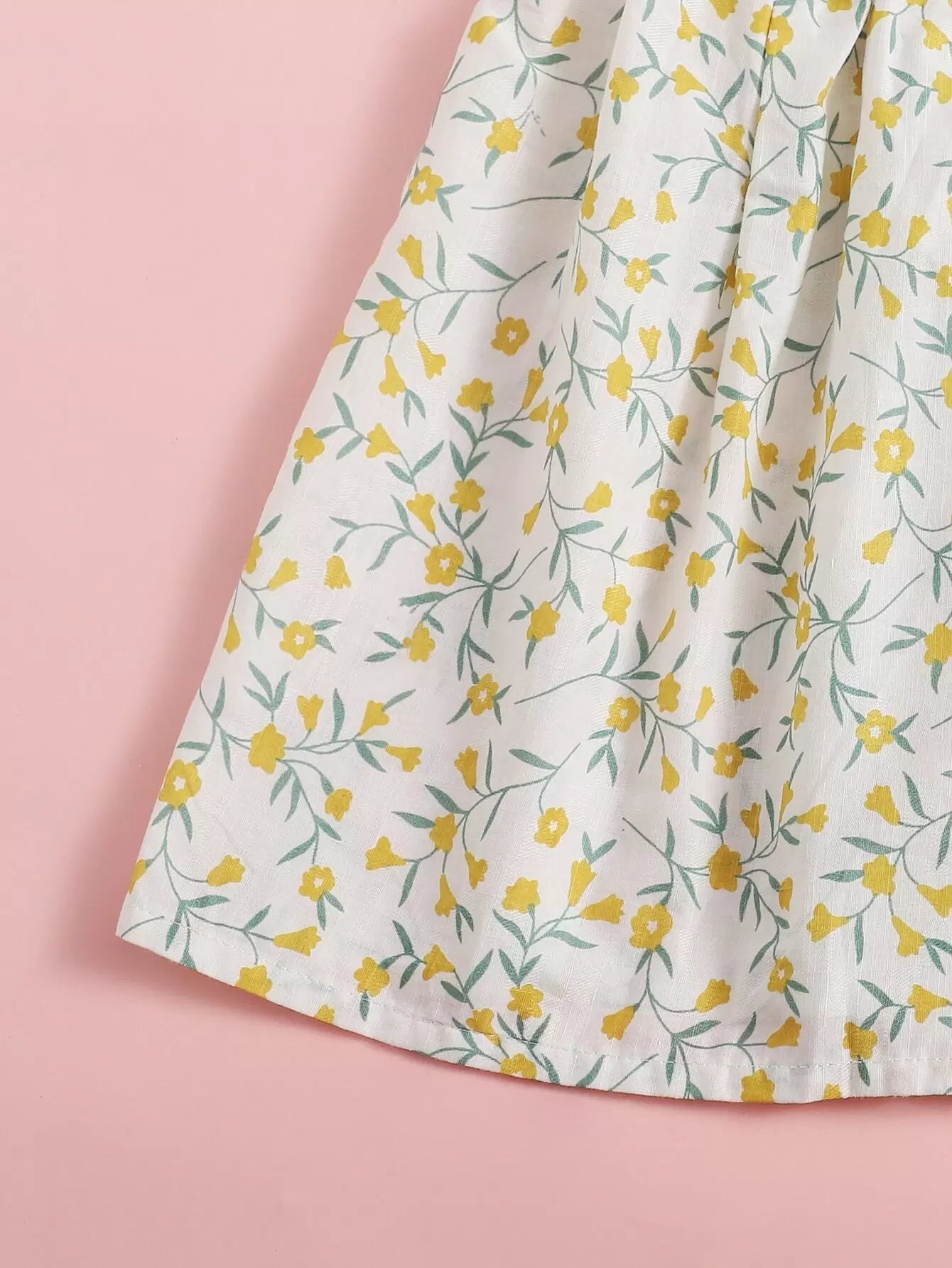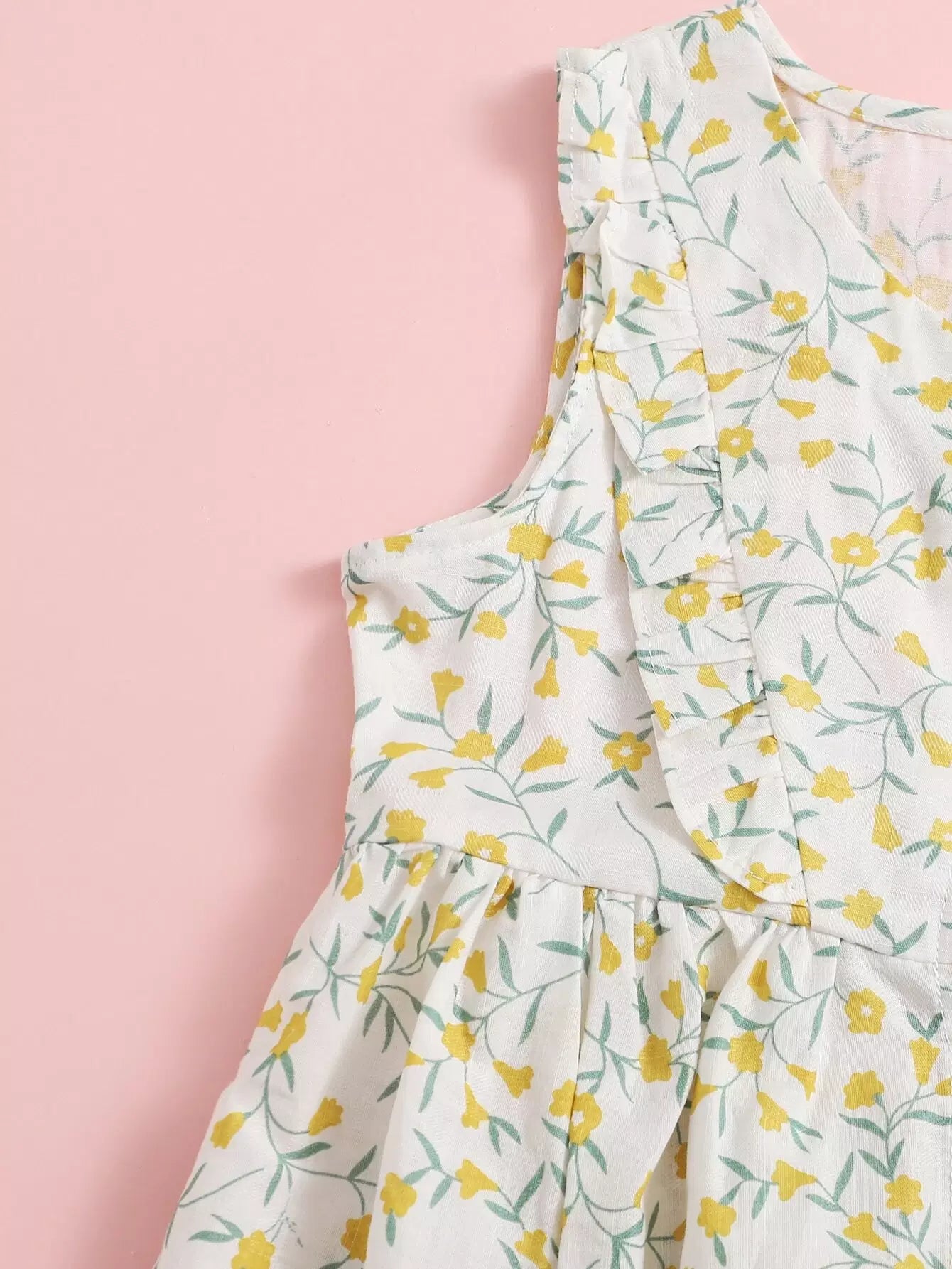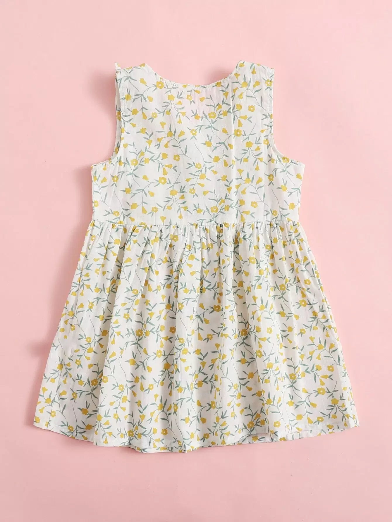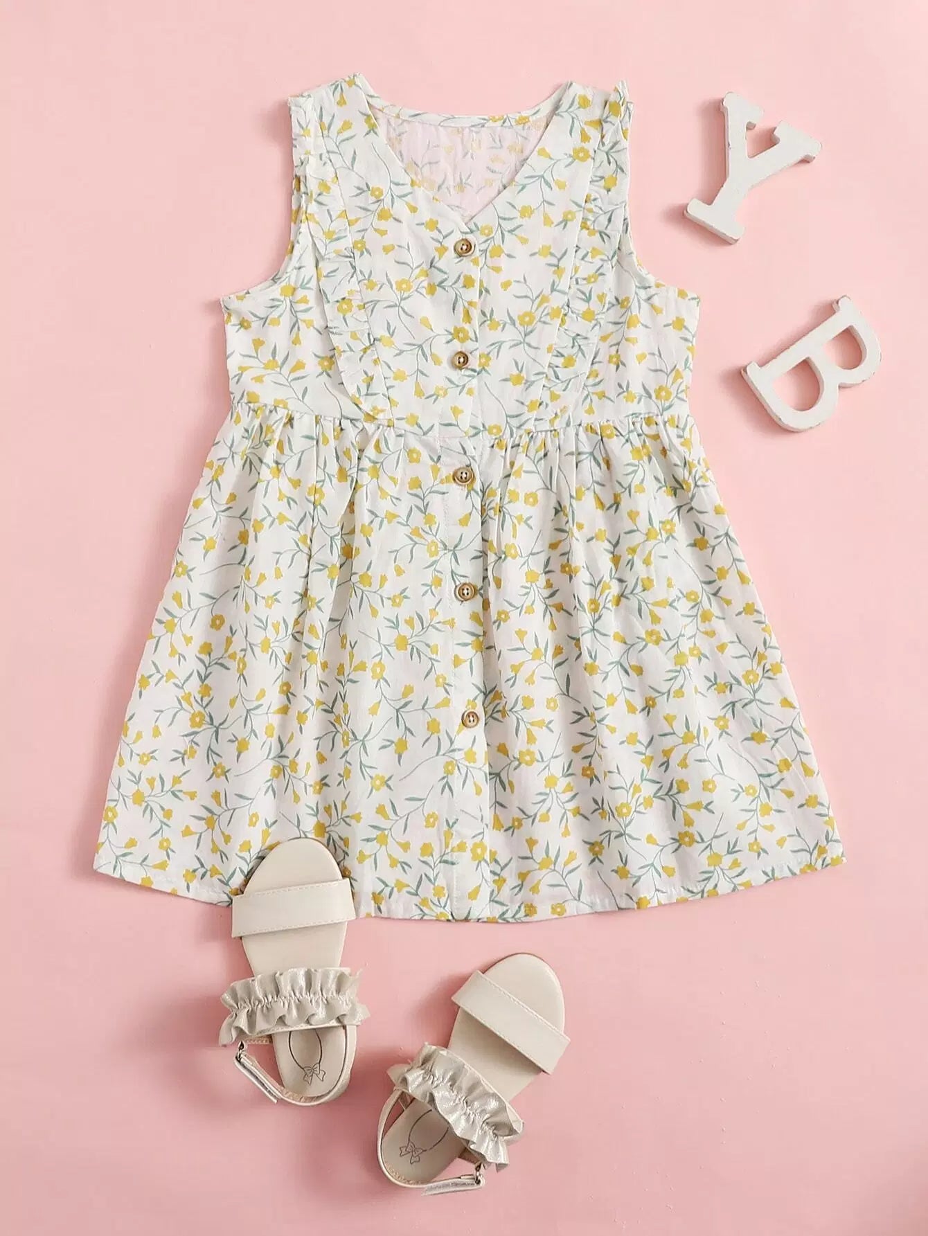 فستان بلا أكمام بدون أكمام للبنات الصغيرات بطبعة أزهار من الأمام بأزرار