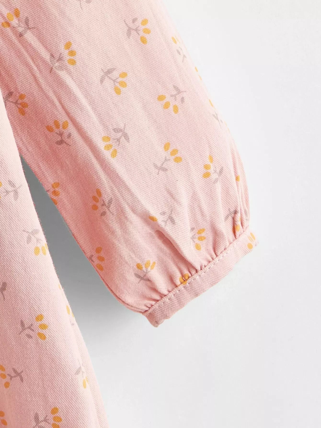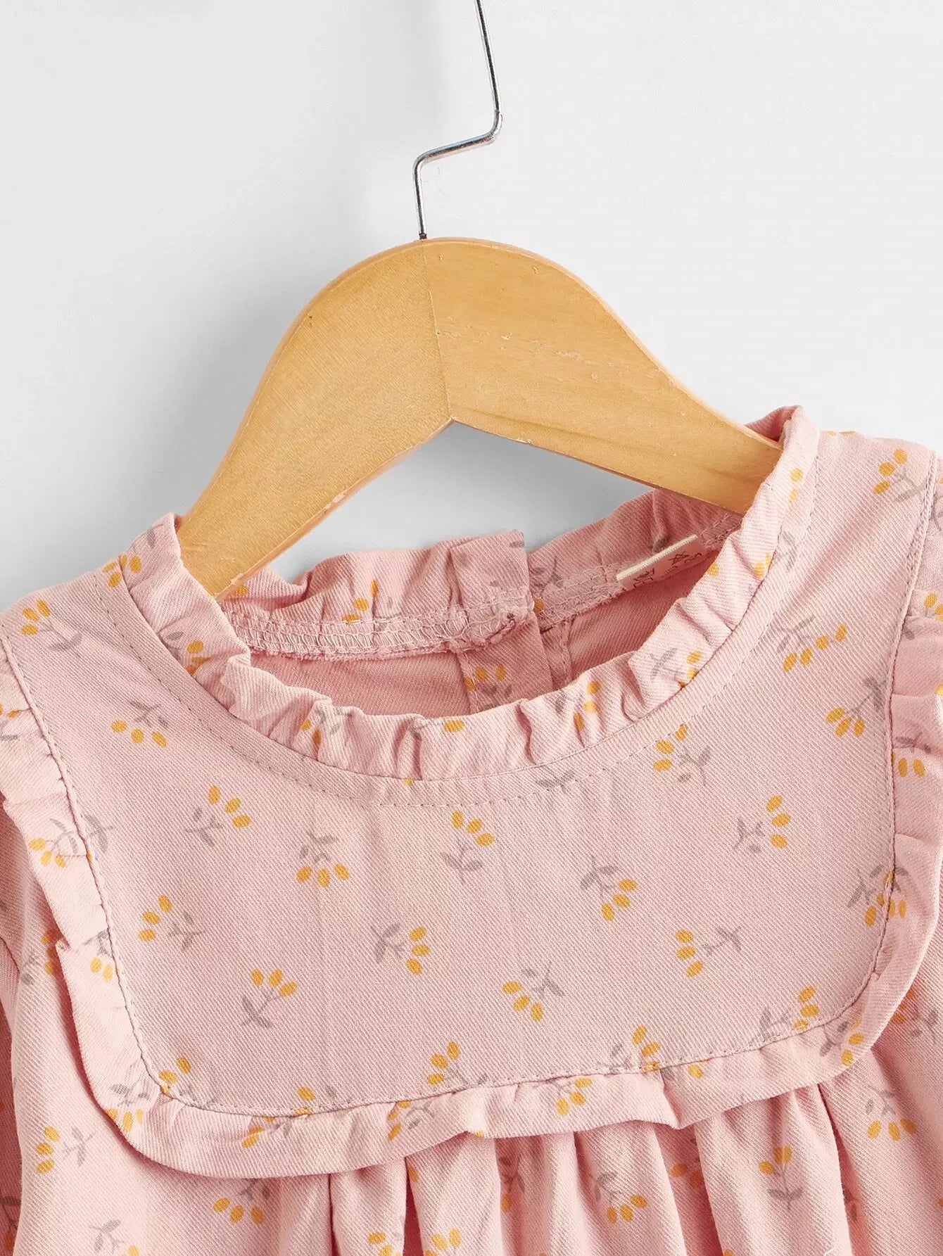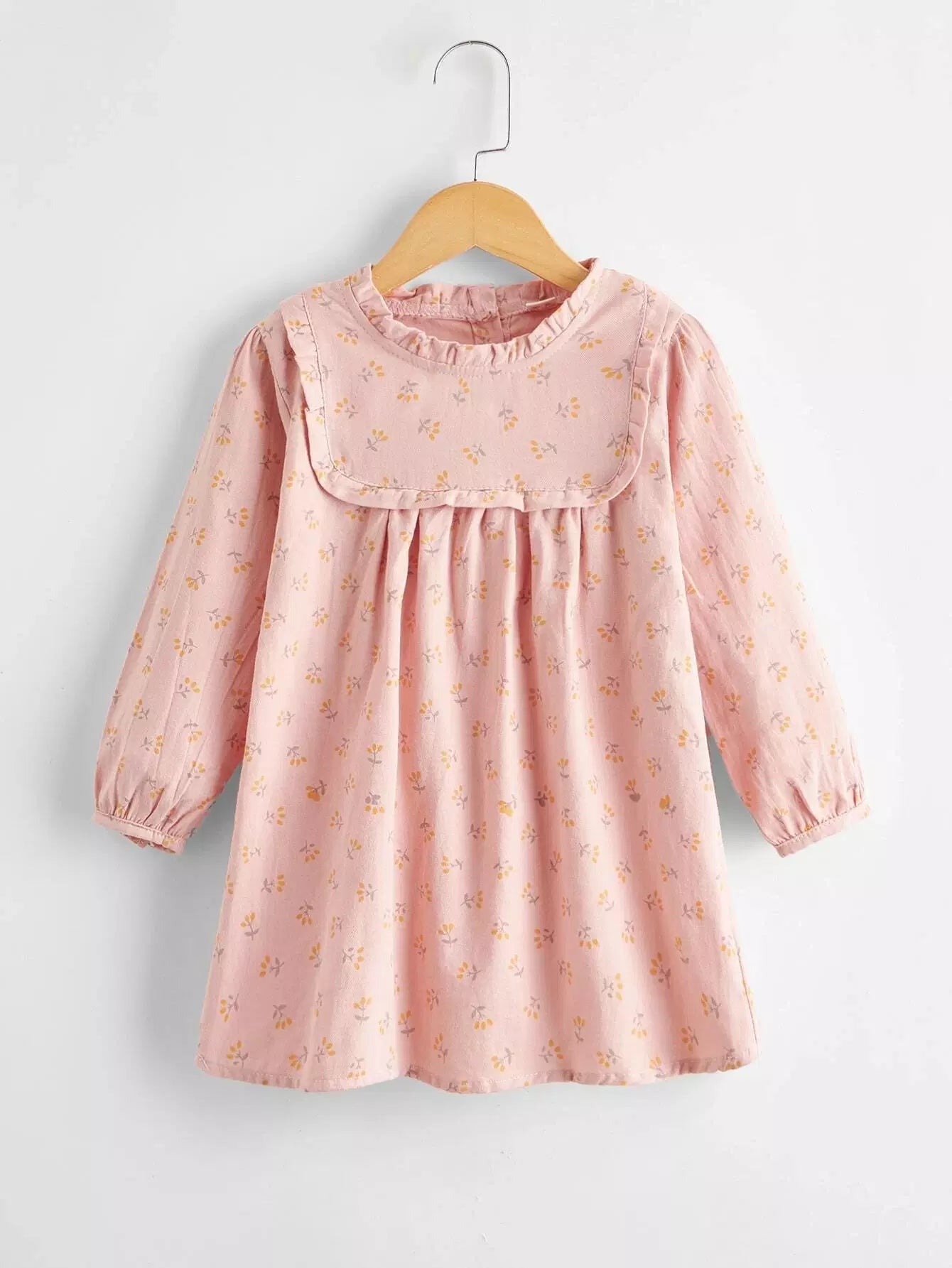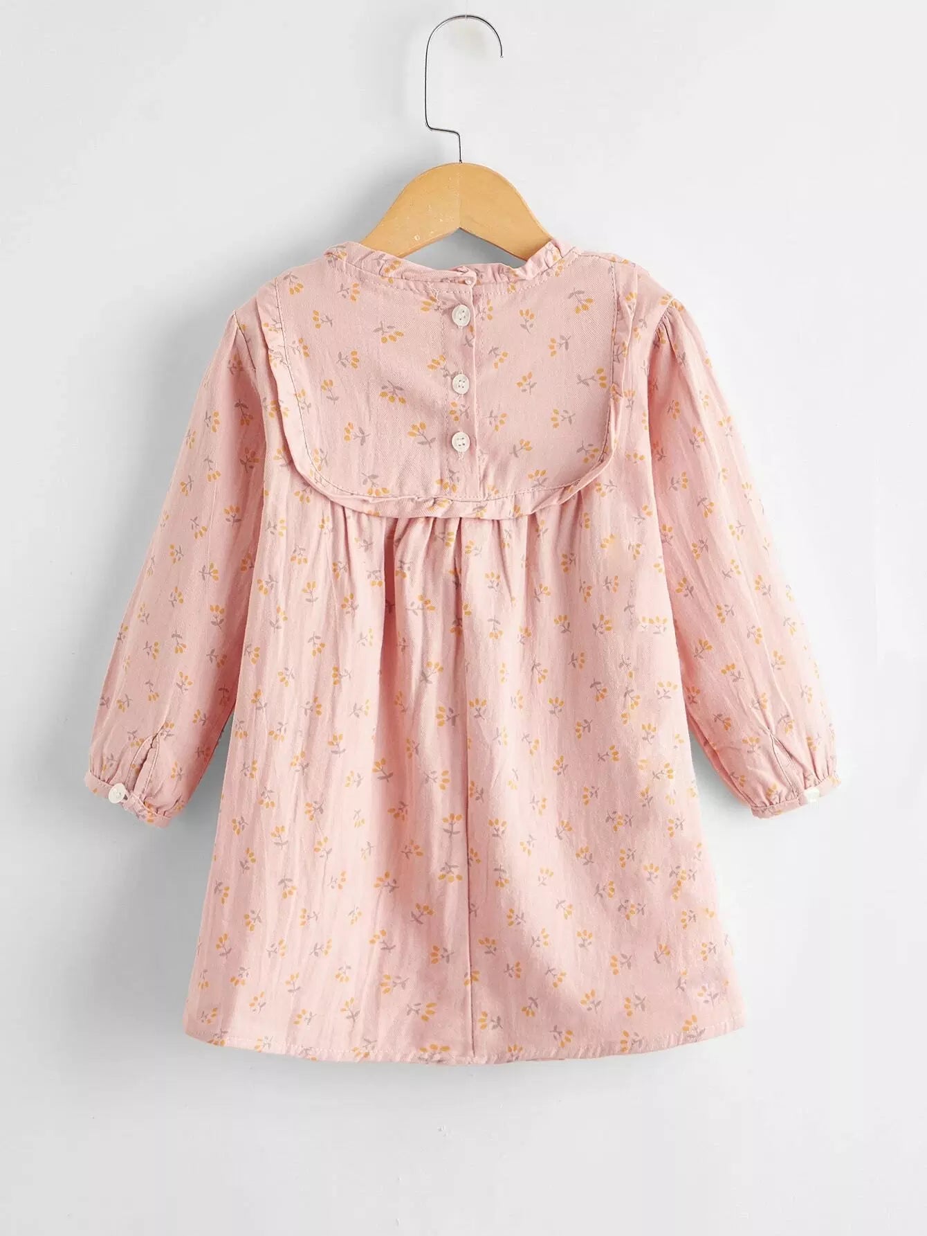 فستان بناتي صغيرات بطبعة أزهار برقبة كشكش وأزرار من الخلف