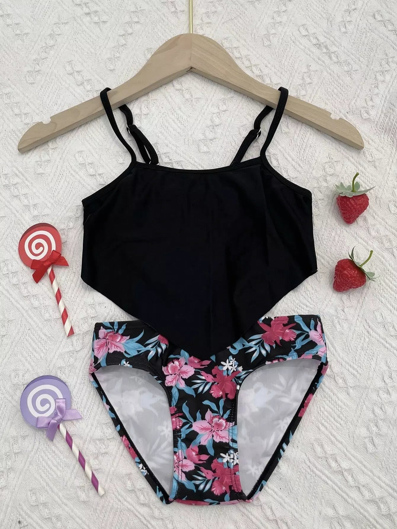 بدلة سباحة من قطعة واحدة بطبعة زهور للبنات الصغار