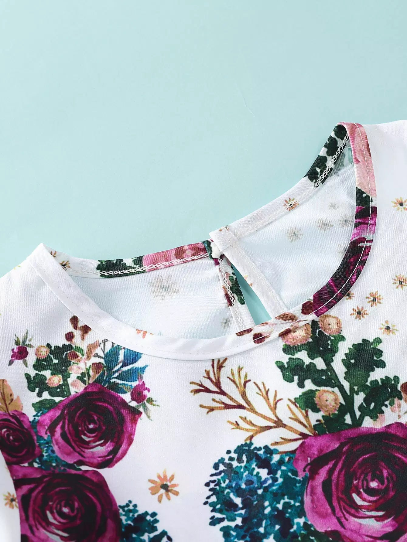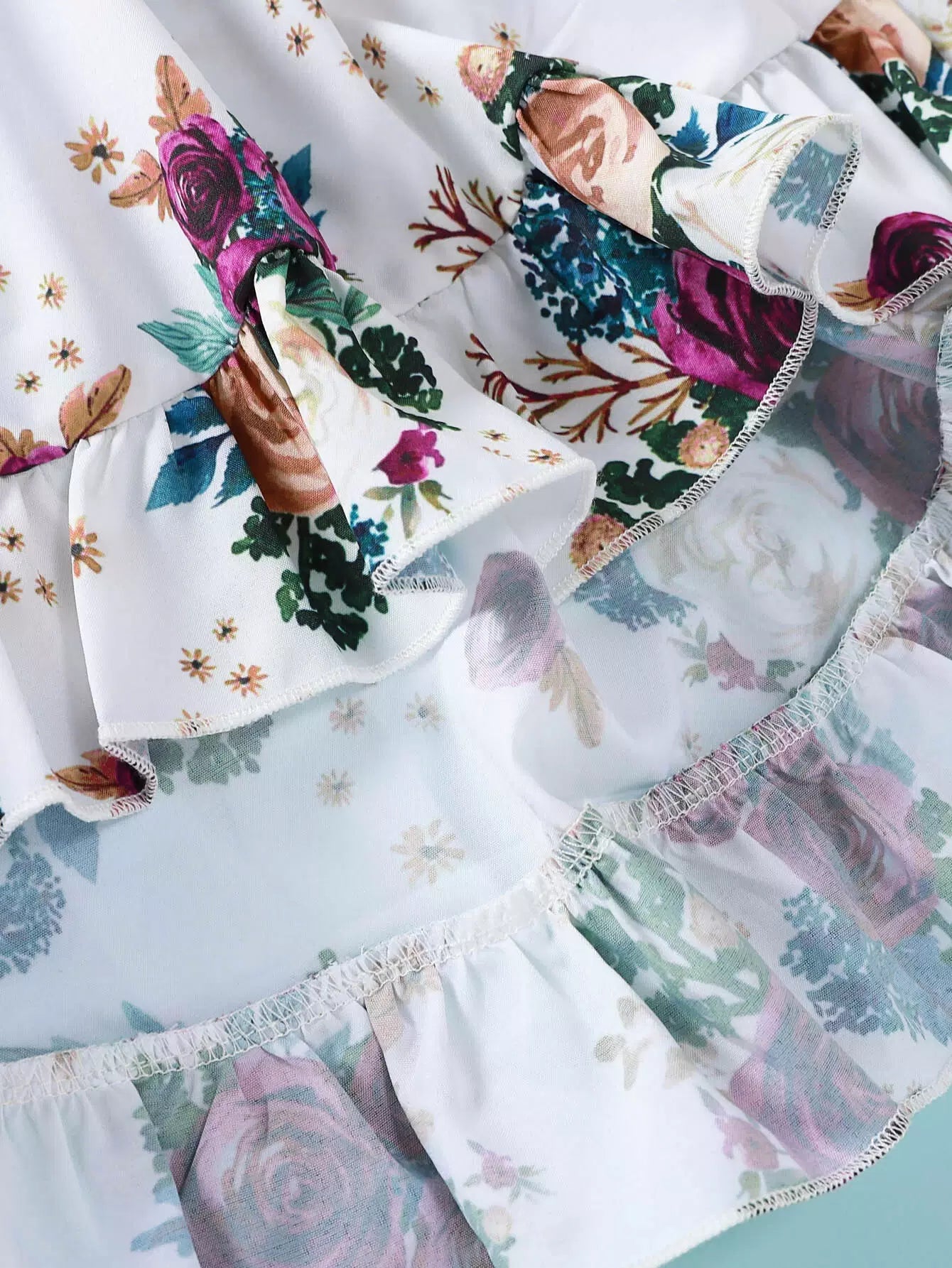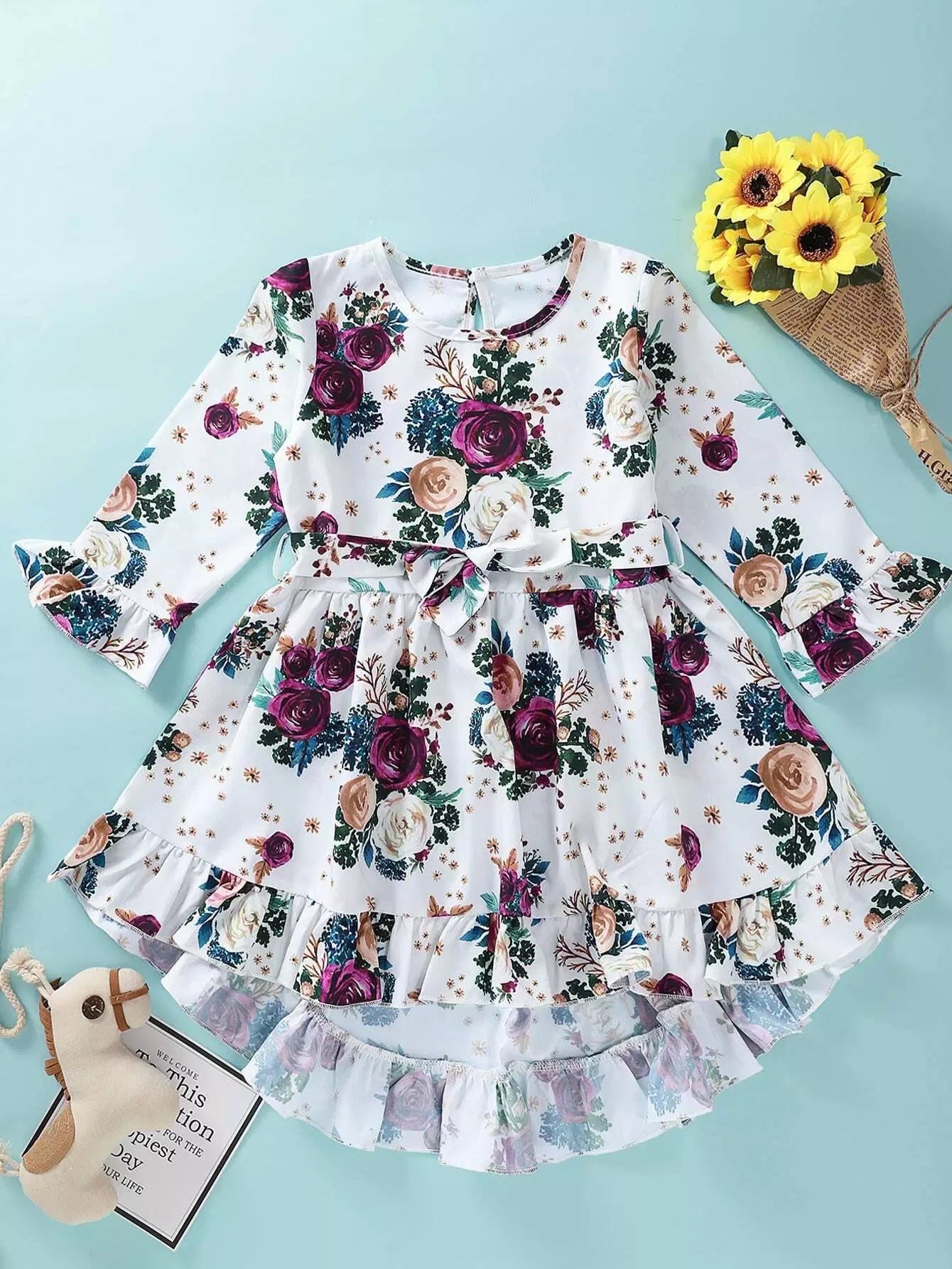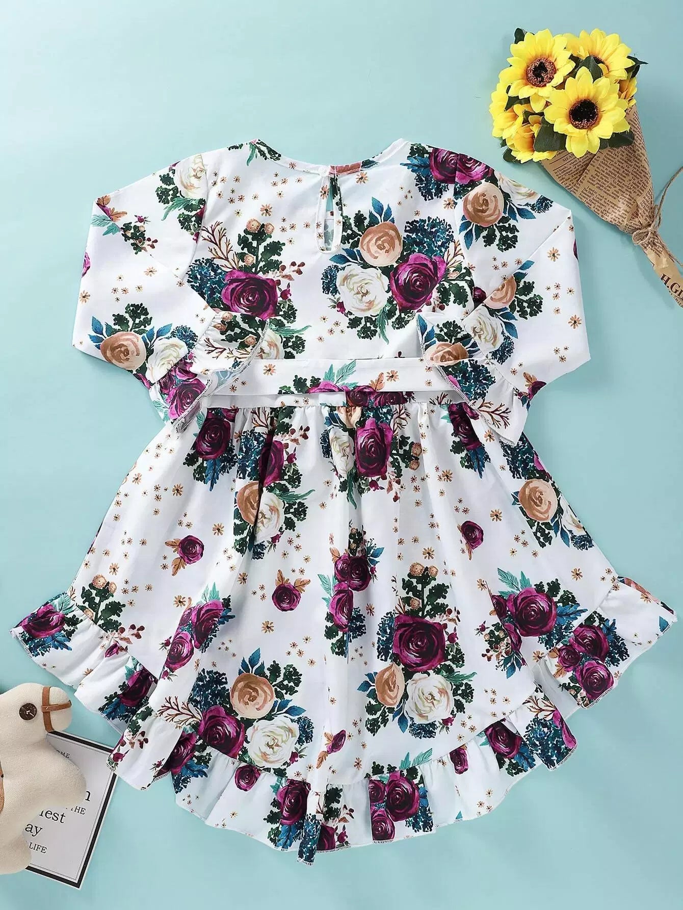 فستان بحاشية مكشكشة بطبعات زهور للفتيات الصغيرات بدون حزام