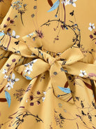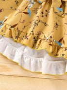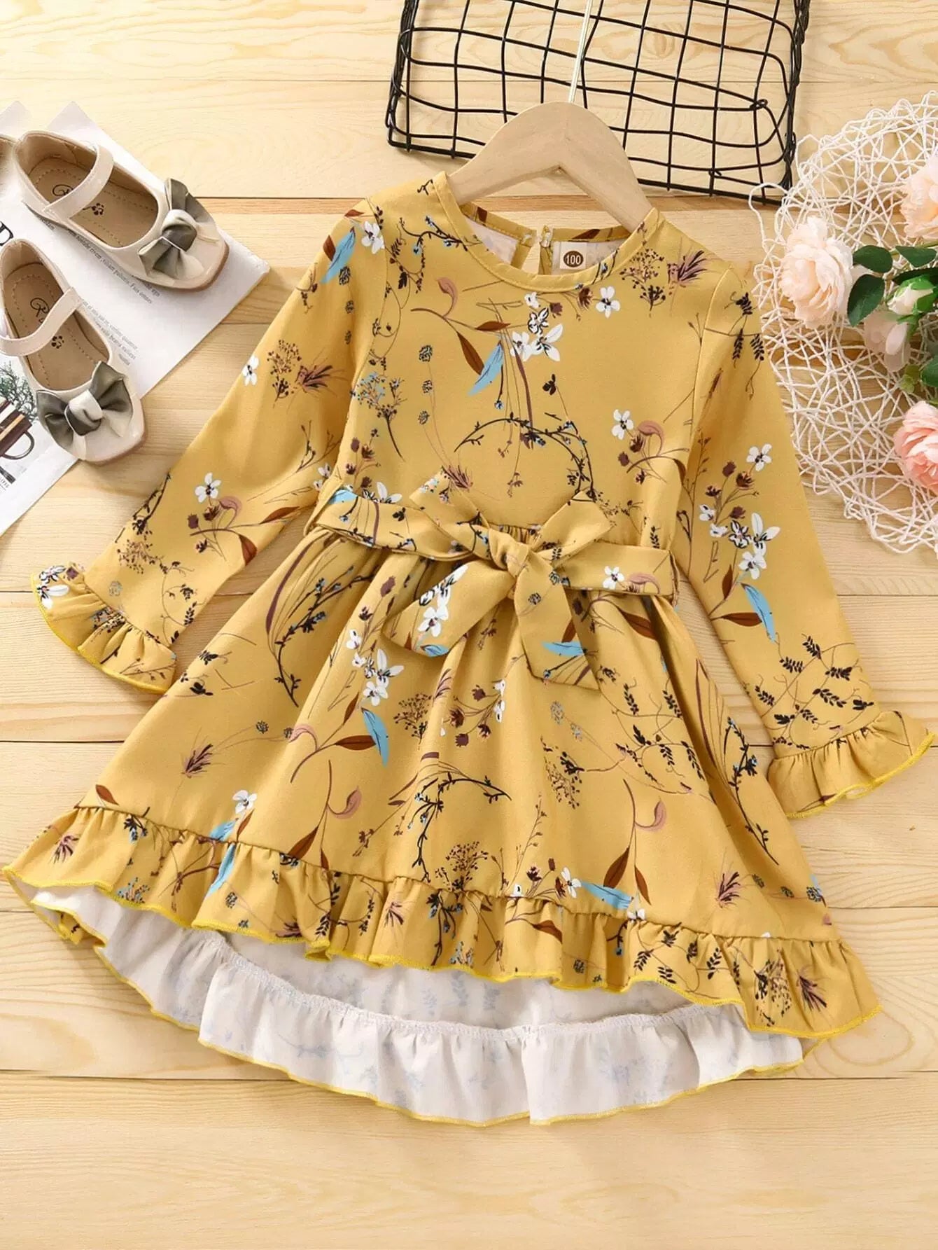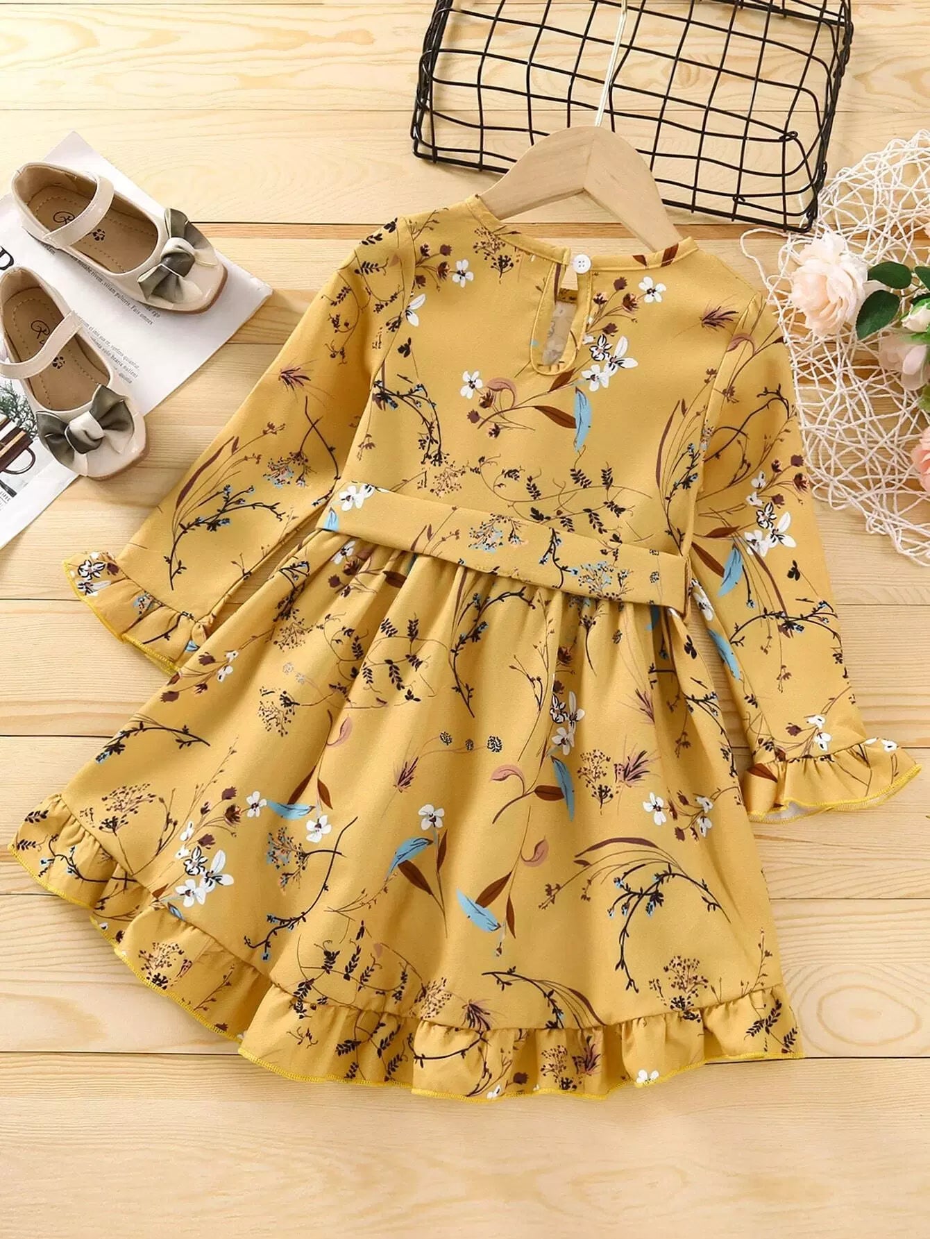 فستان بحاشية مكشكشة بطبعات زهور للفتيات الصغيرات بدون حزام