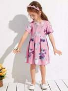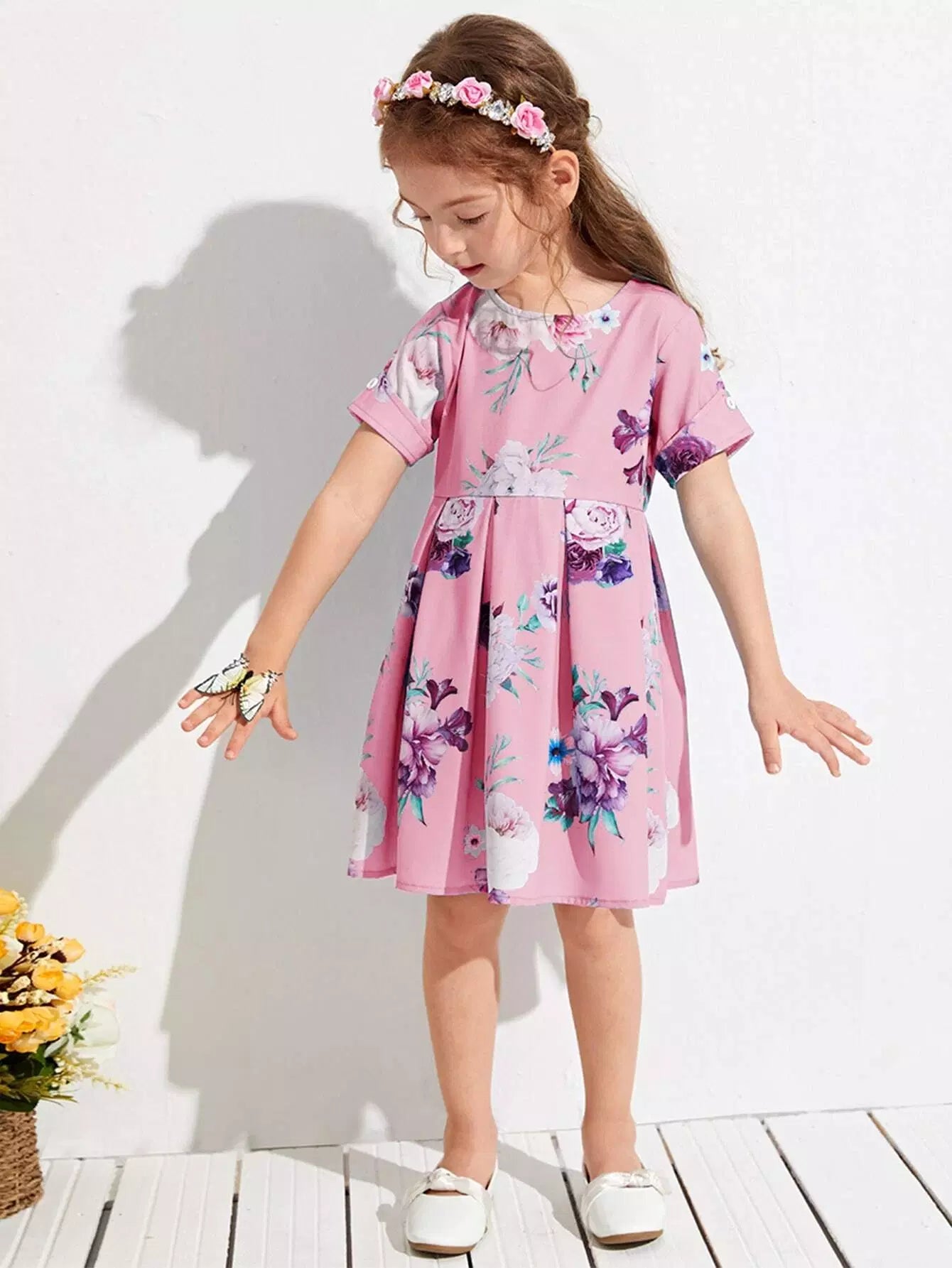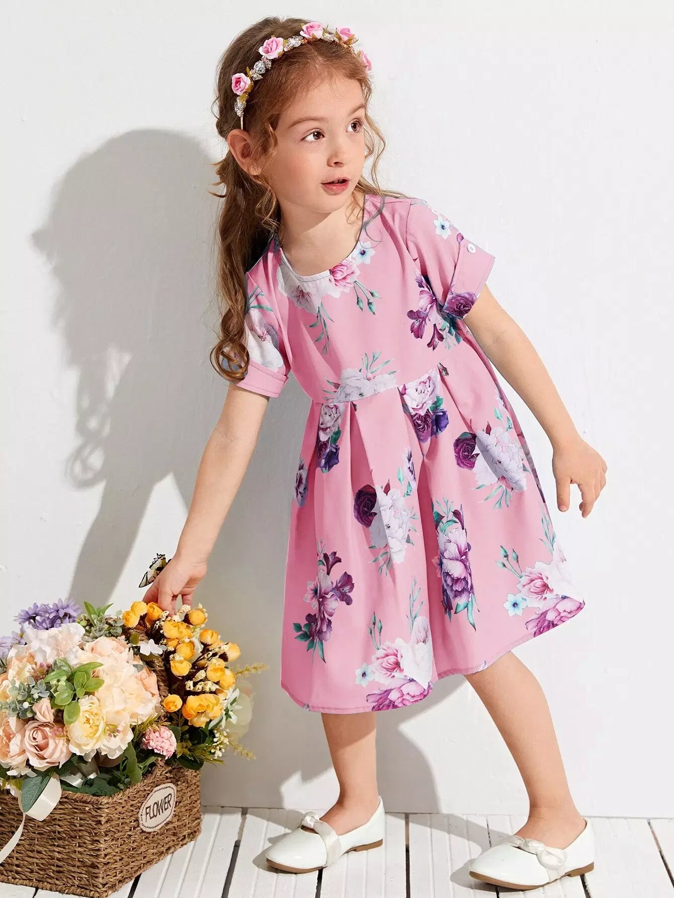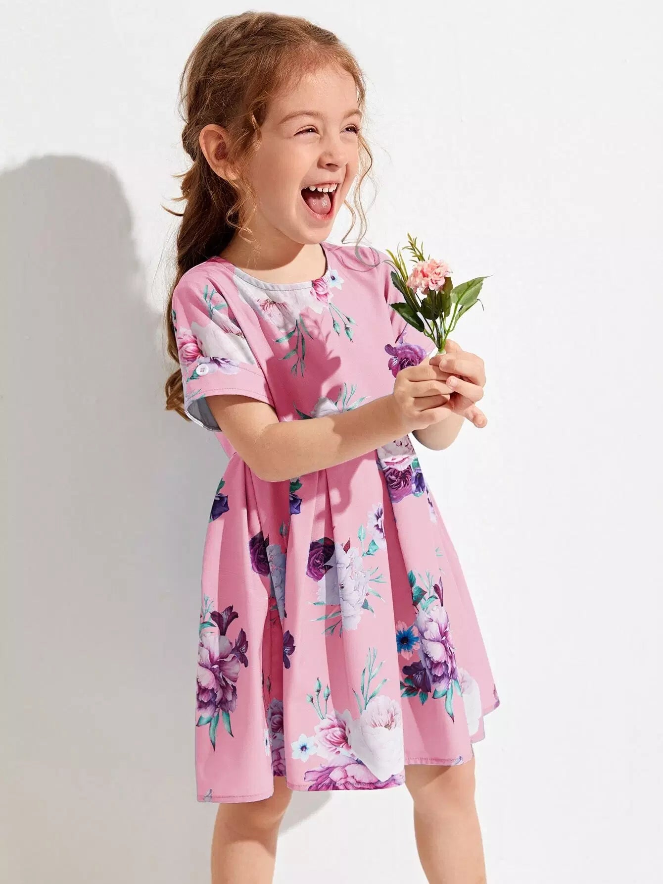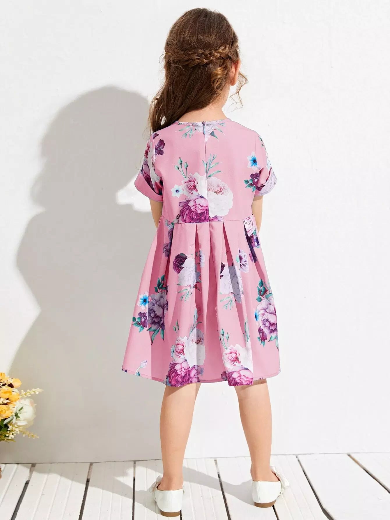 فستان بناتي صغيرات بطبعة زهور مطبوع بسحاب من الخلف بسحاب