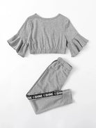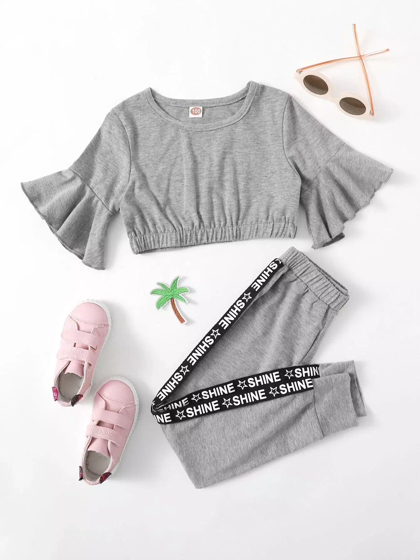 تيشيرت بأكمام منفوشة للبنات الصغار وبنطال رياضي بأكمام منفوشة وبنطال رياضي بشريط لاصق