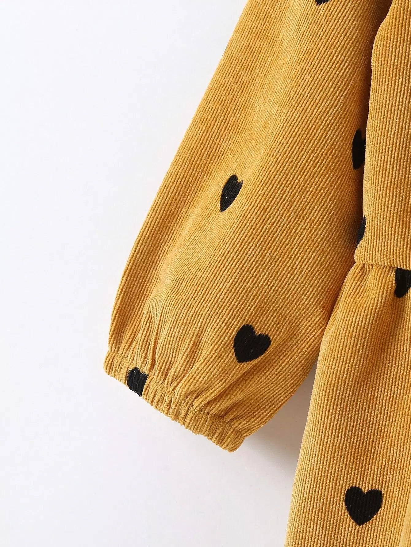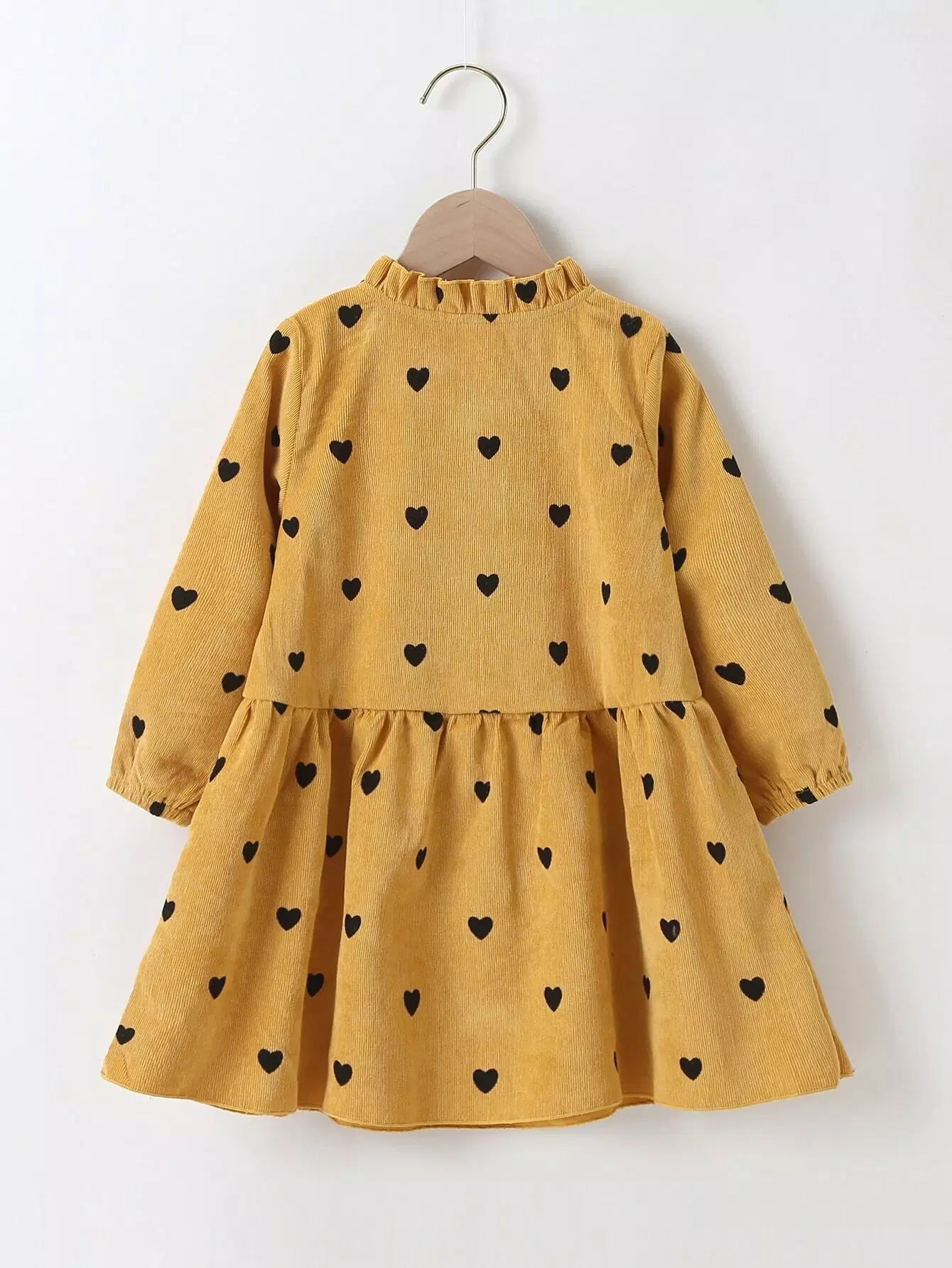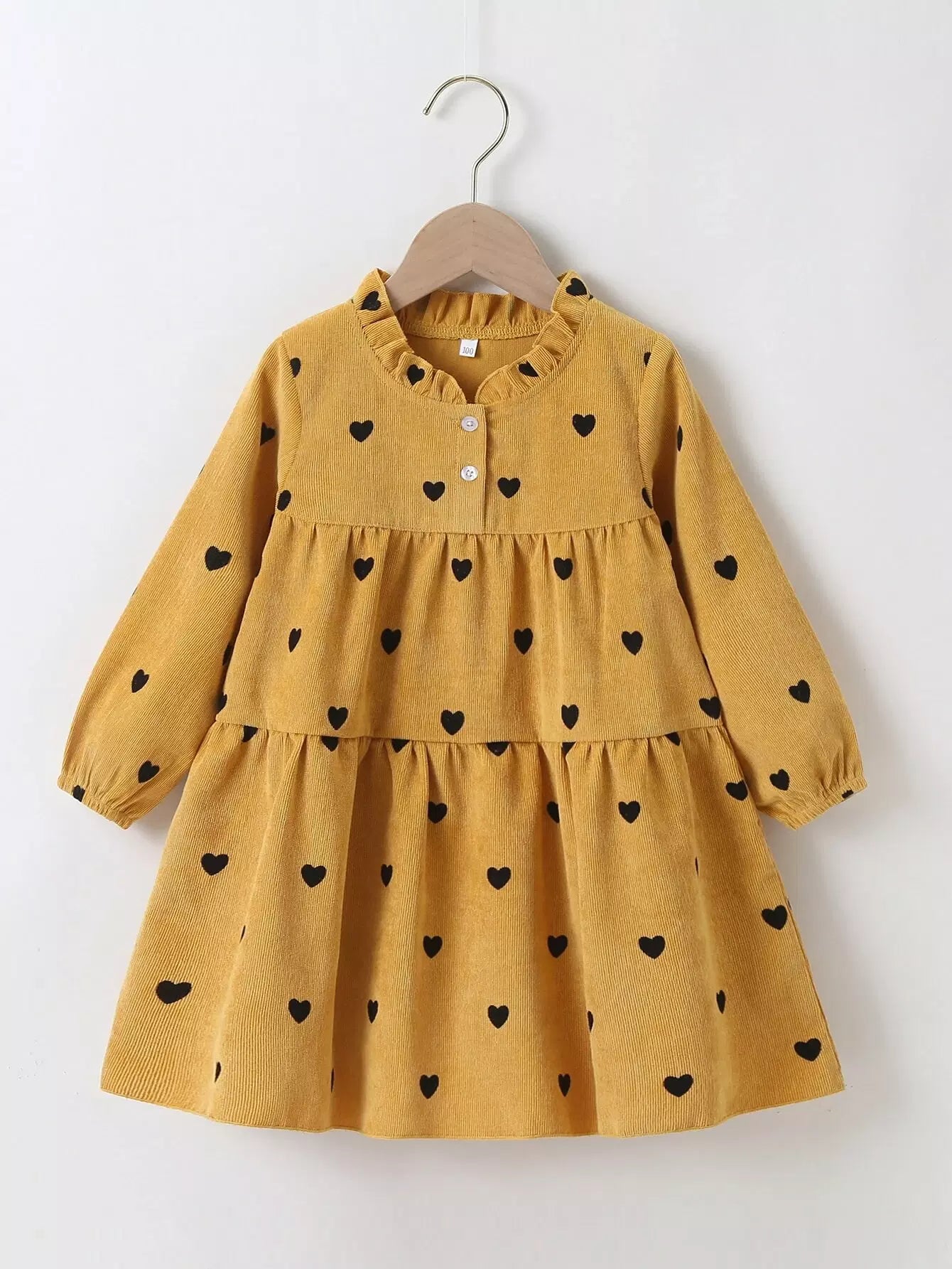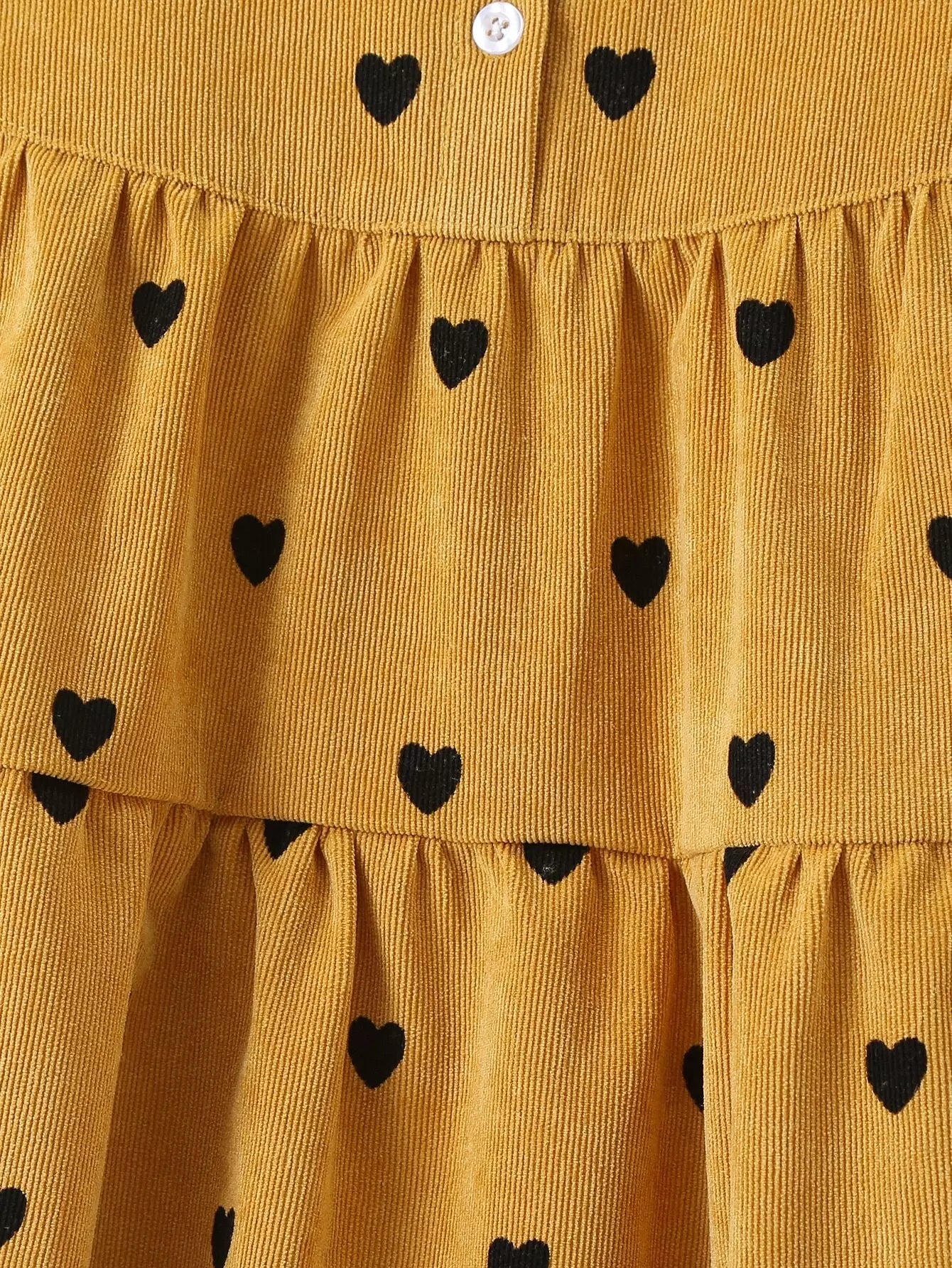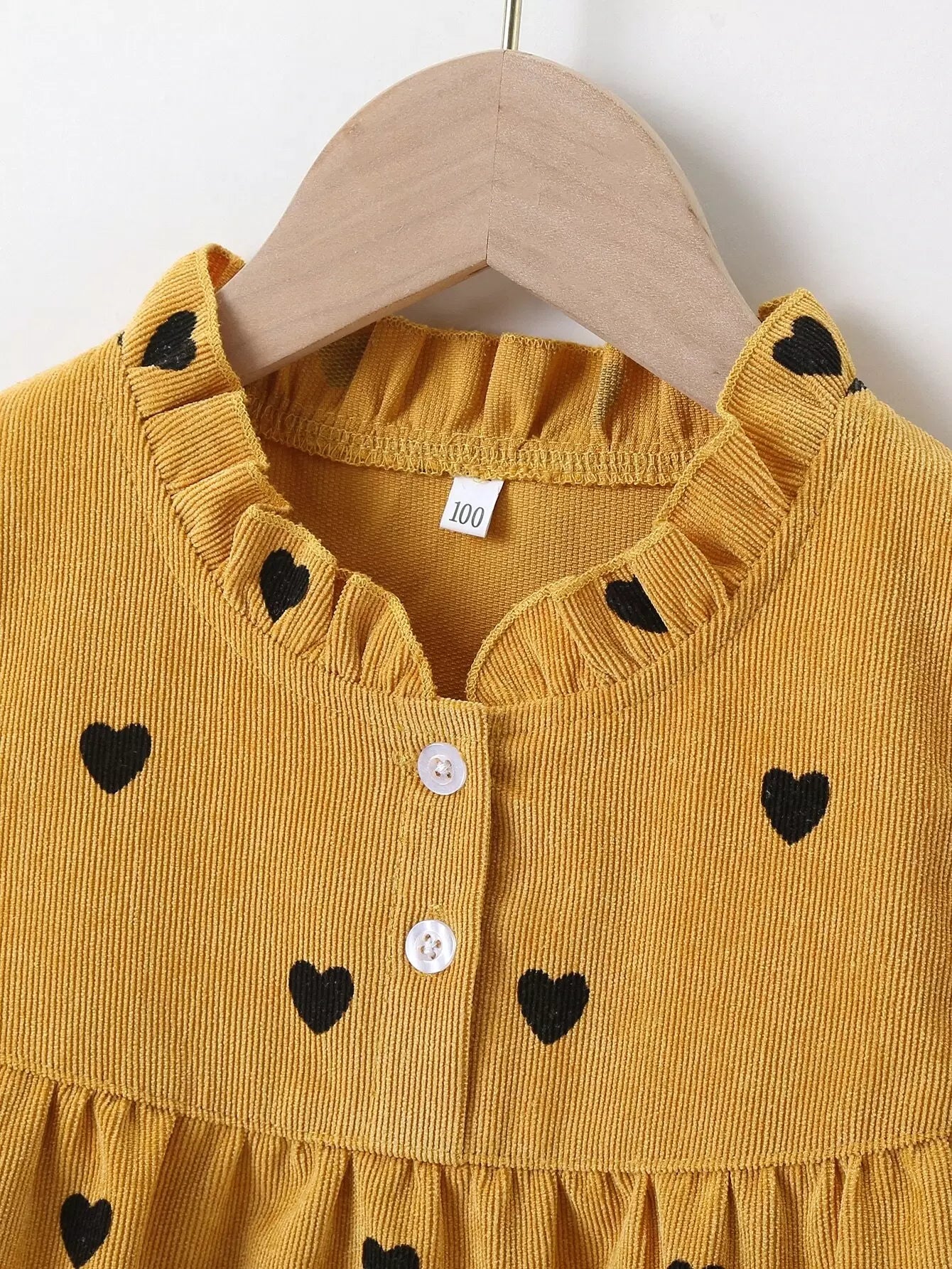 فستان بنات صغيرات بياقة كشكش برقبة على شكل قلب مطبوع عليه سروال قصير قصير قصير