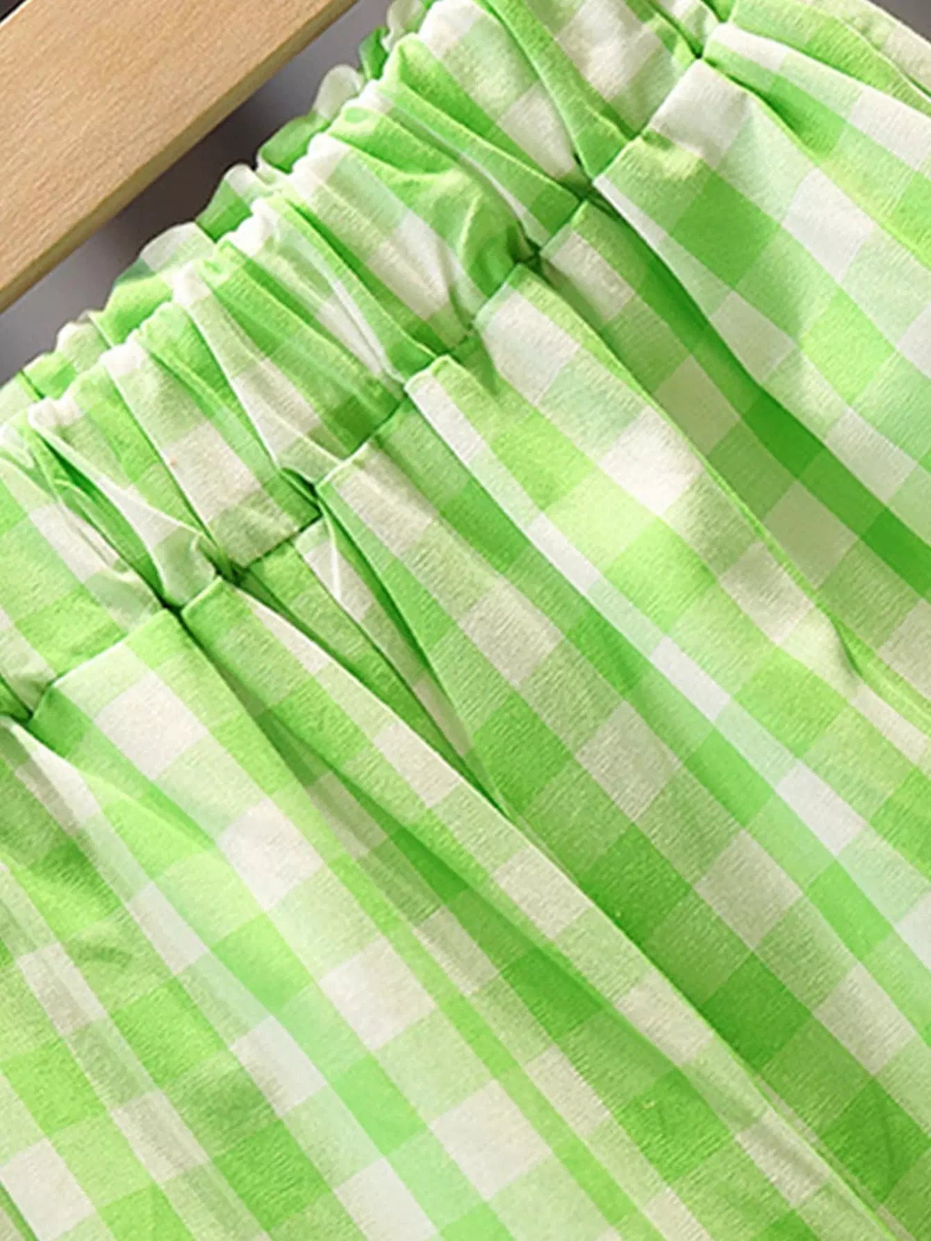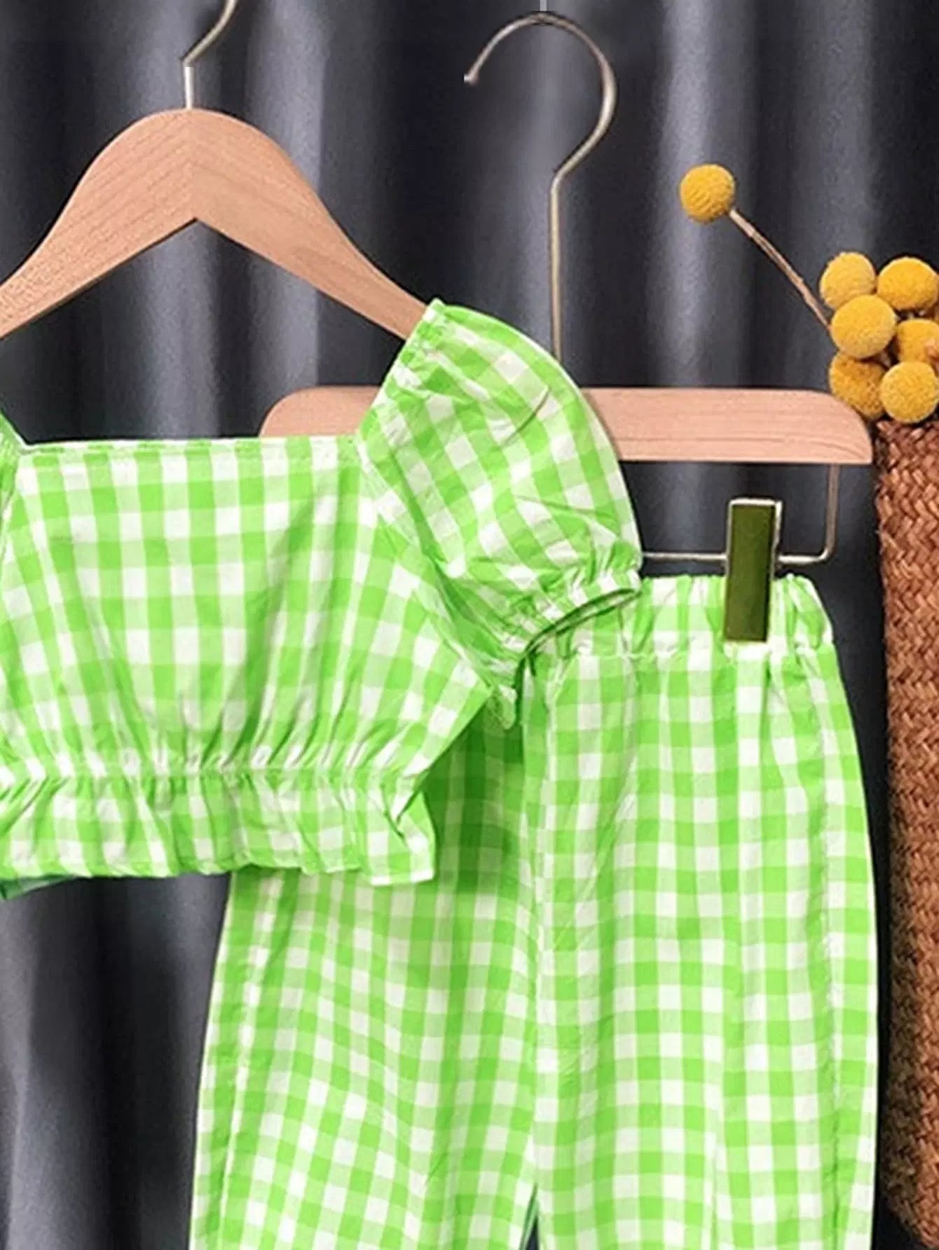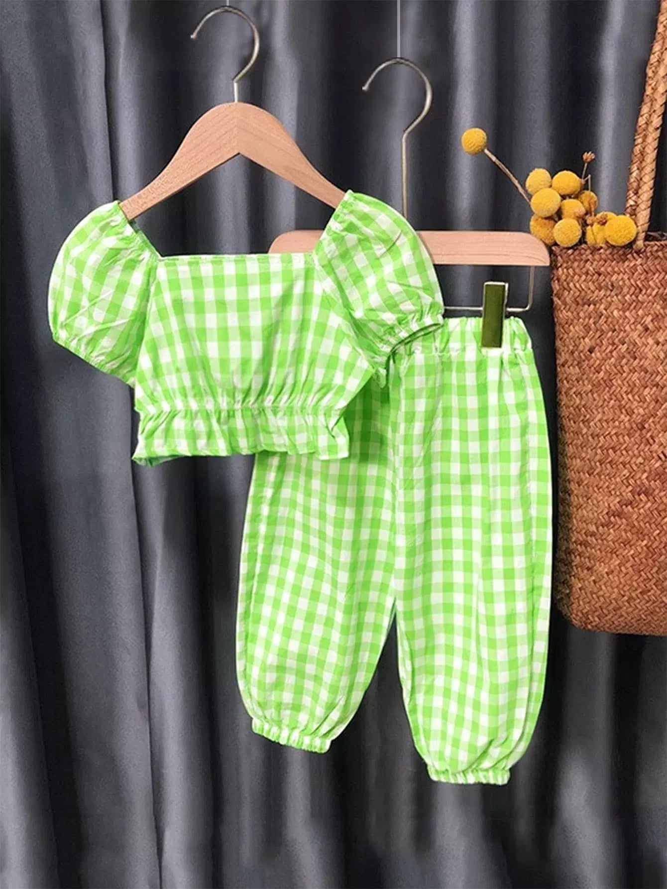 الأطفال - قميص وسروال بحاشية مكشكشة من القماش القطني للفتيات الصغيرات