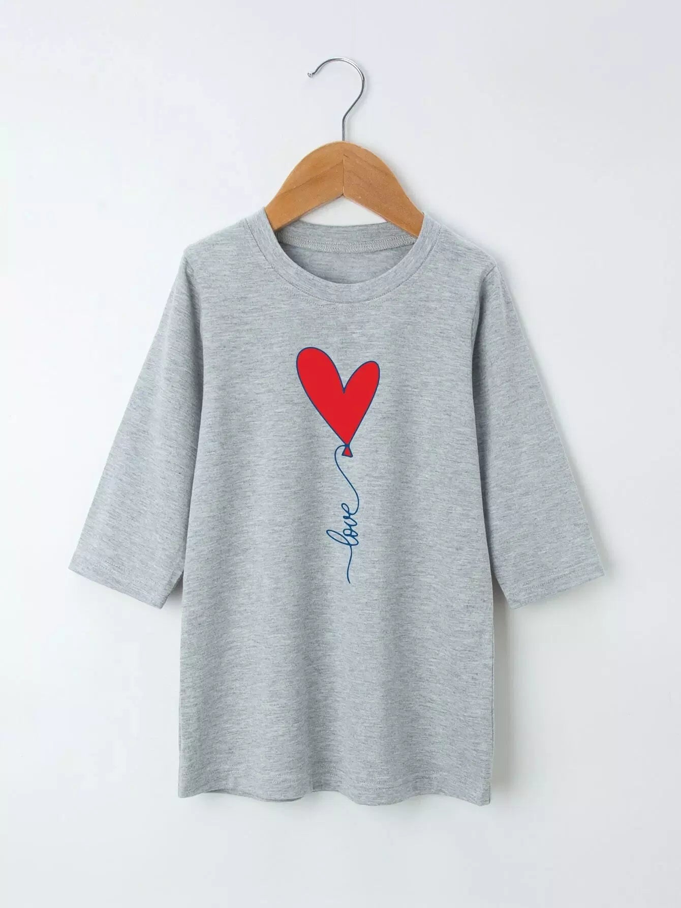 تي شيرت جرافيك على شكل قلب وحروف للبنات الصغار