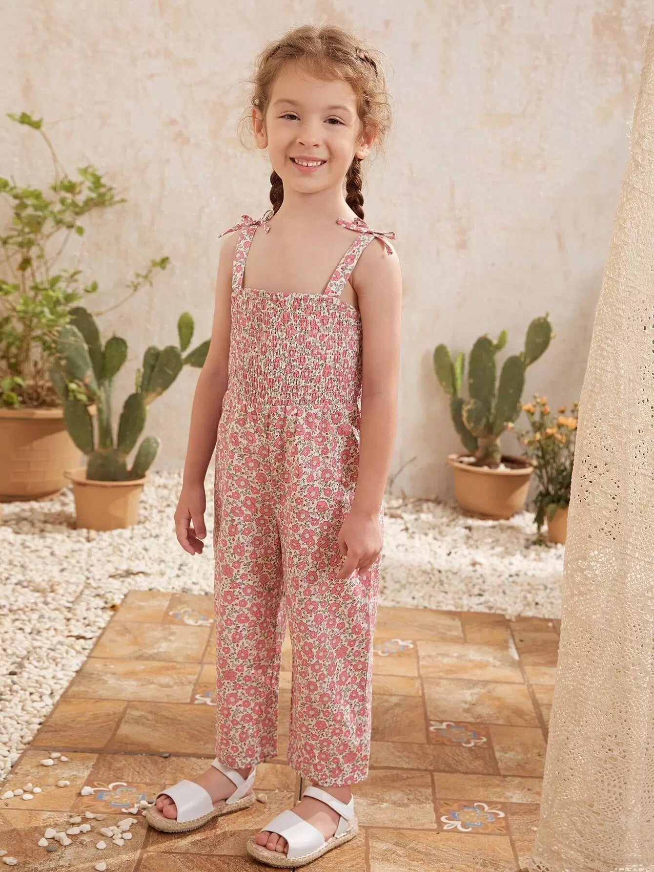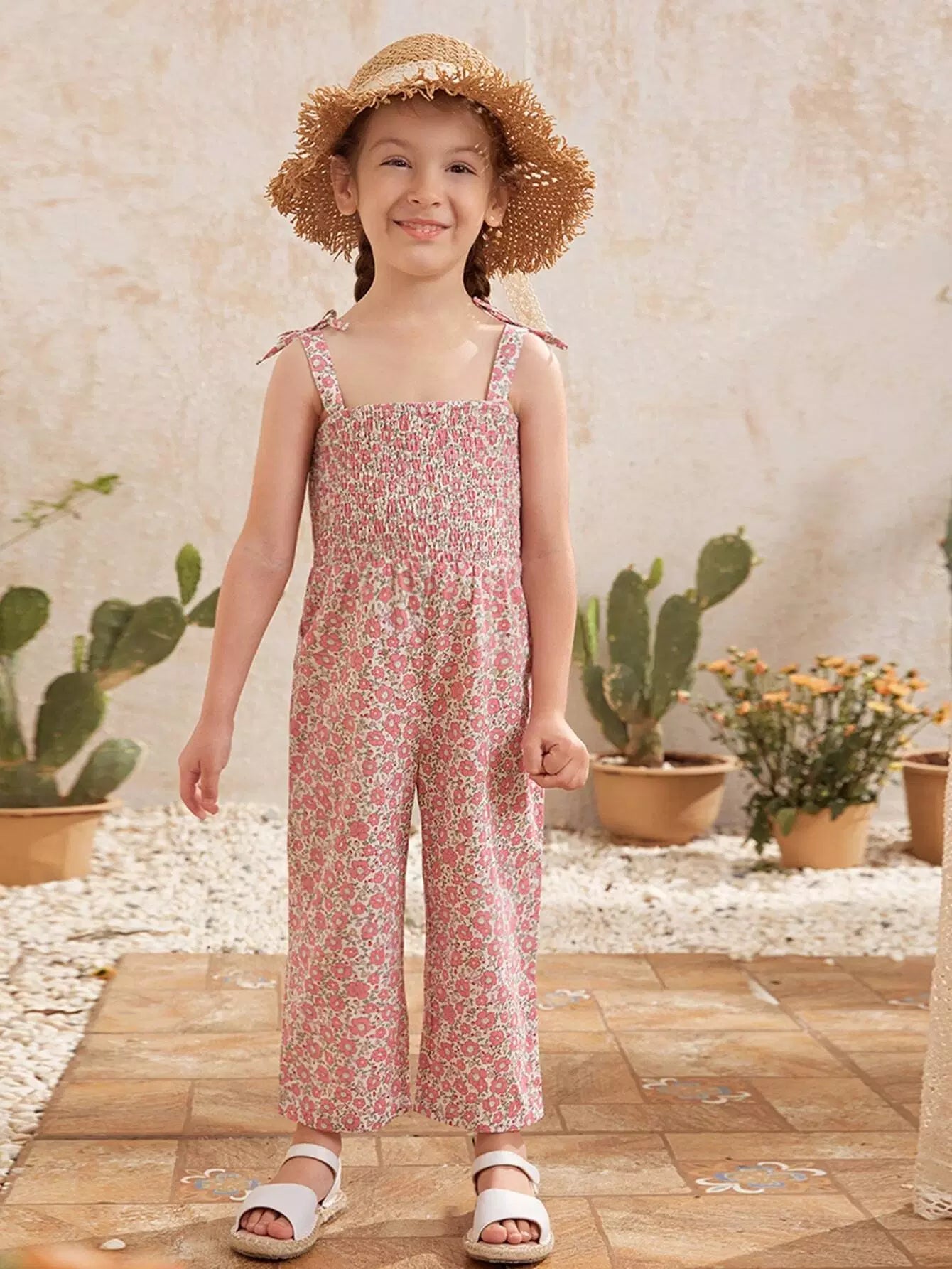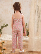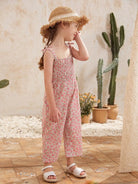جمبسوت بطبعة زهور مع حزام عقدة للبنات الصغار