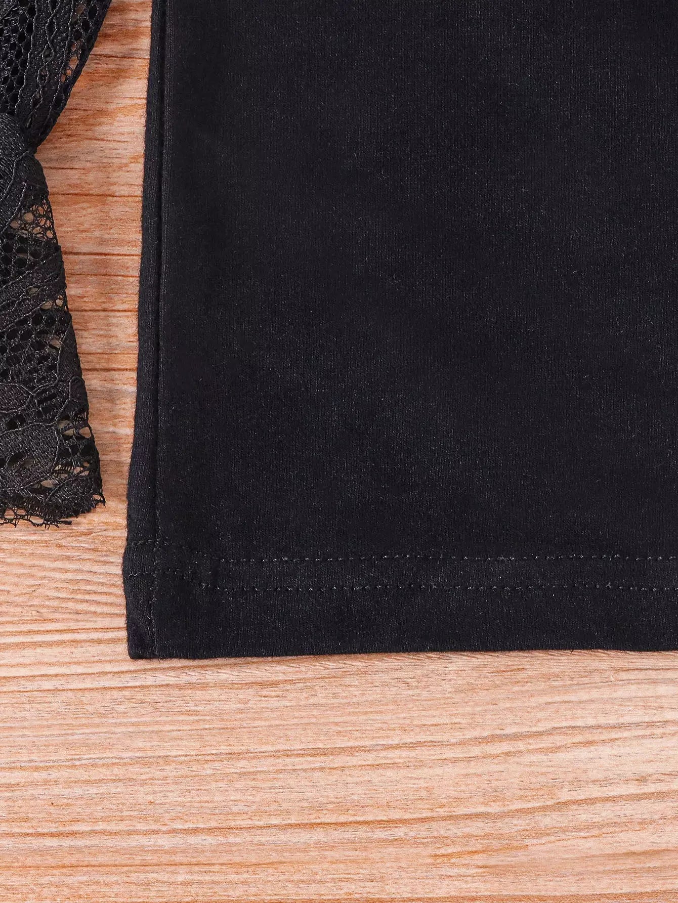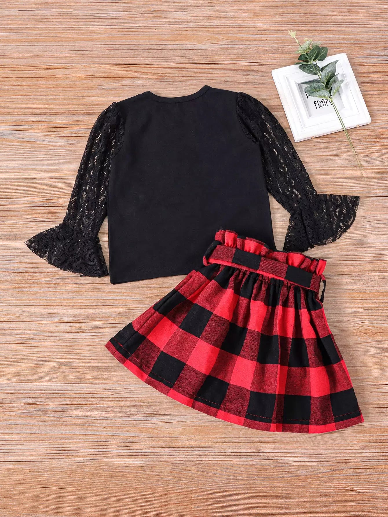 الأطفال - بلوزة بأكمام واسعة من الدانتيل للفتيات الصغيرات وتنورة من القماش القطني
