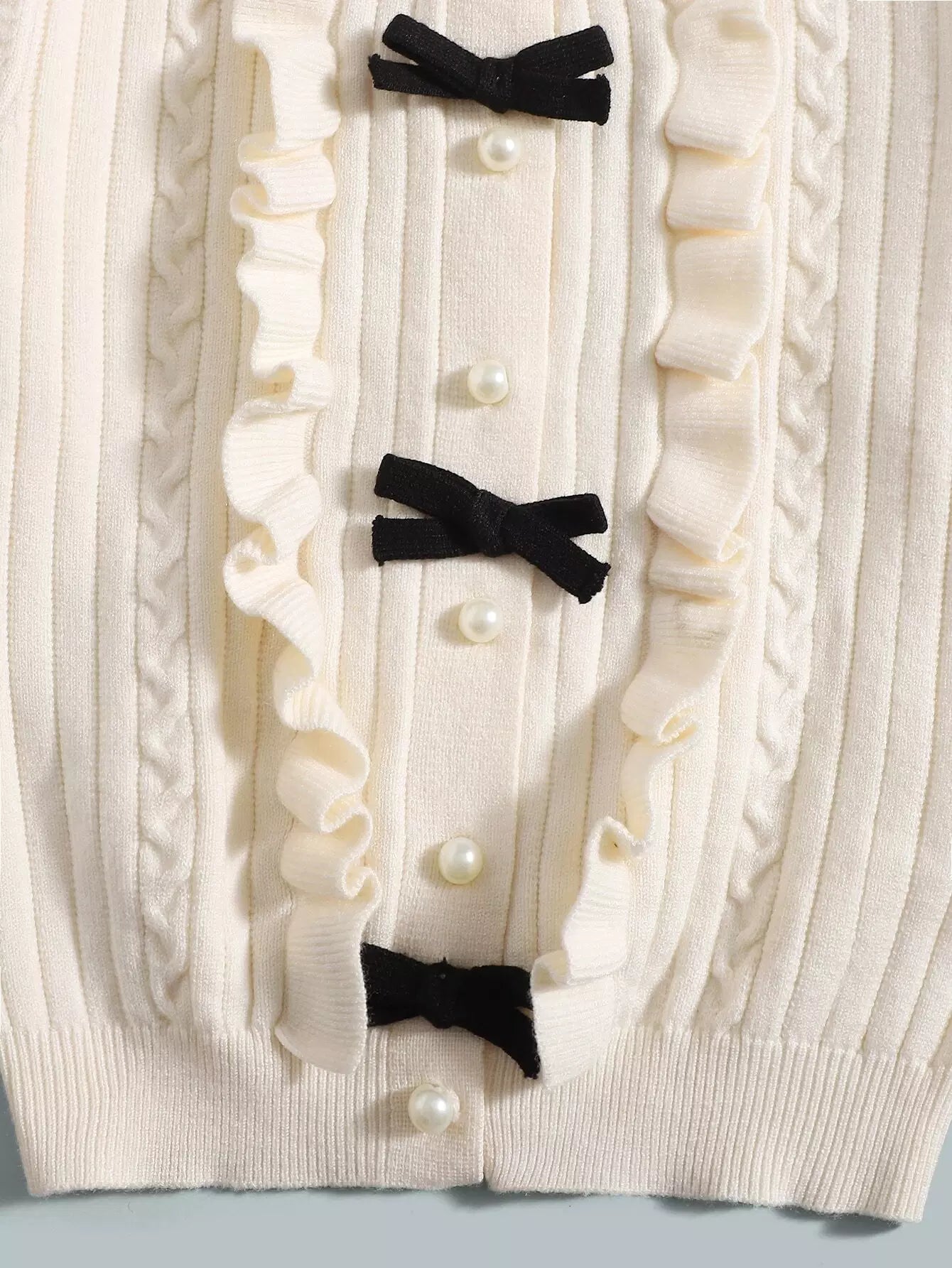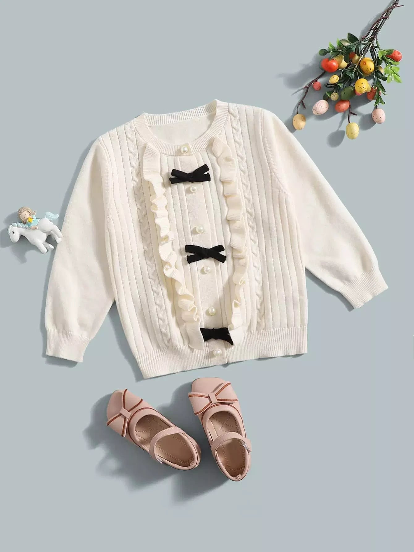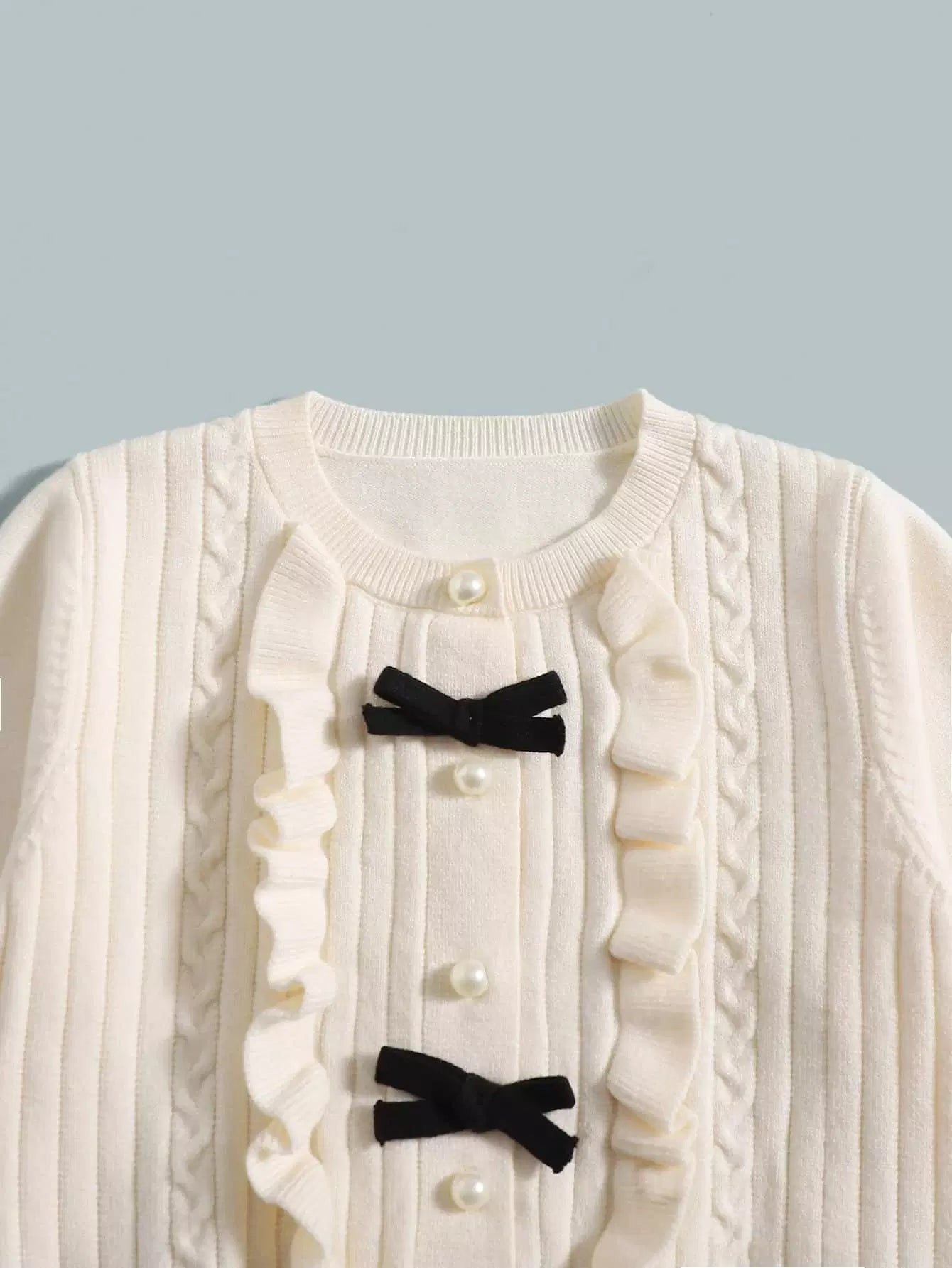 كارديجان بأكمام فانوس مع فيونكة وحواف أمامية مكشكشة للفتيات الصغيرات