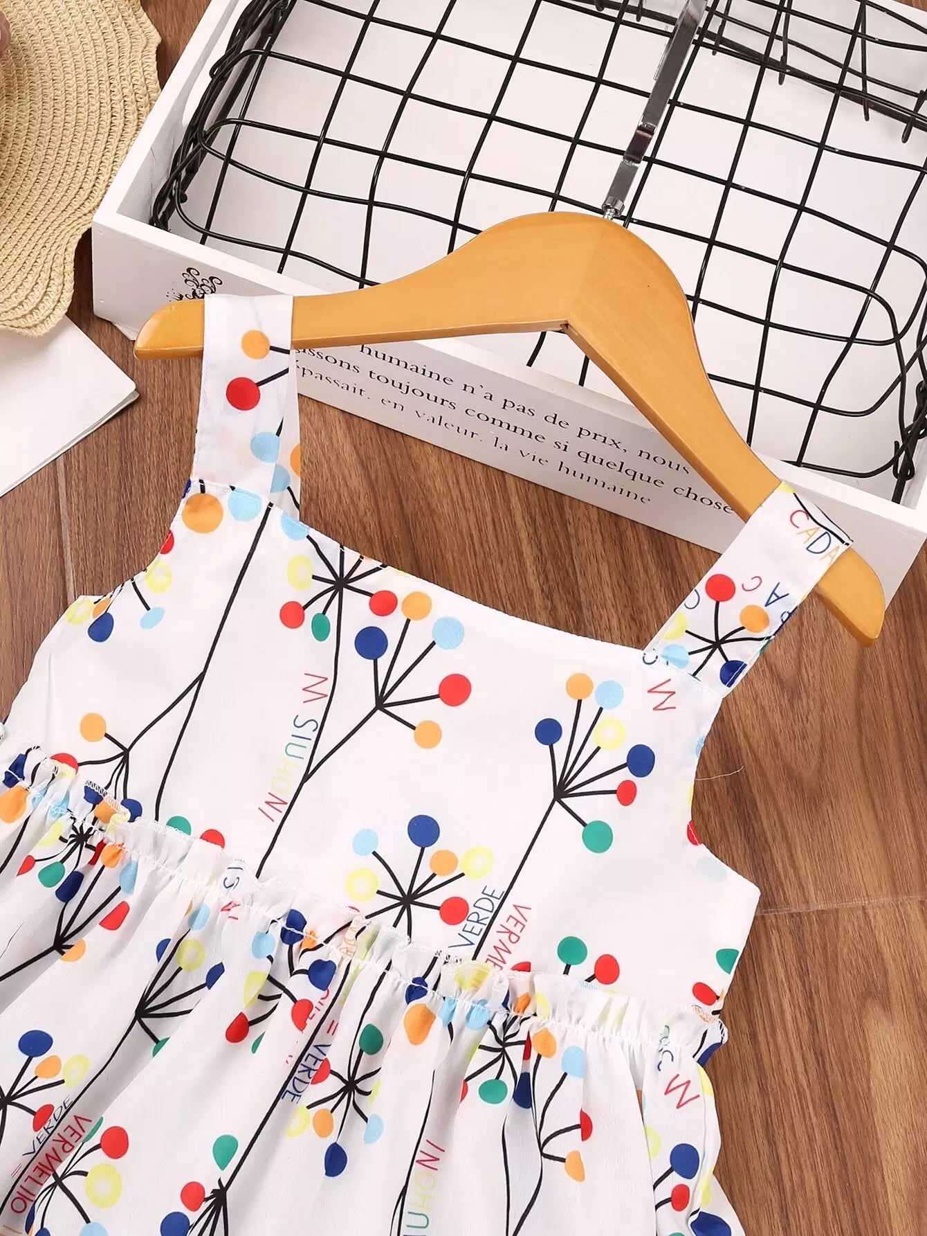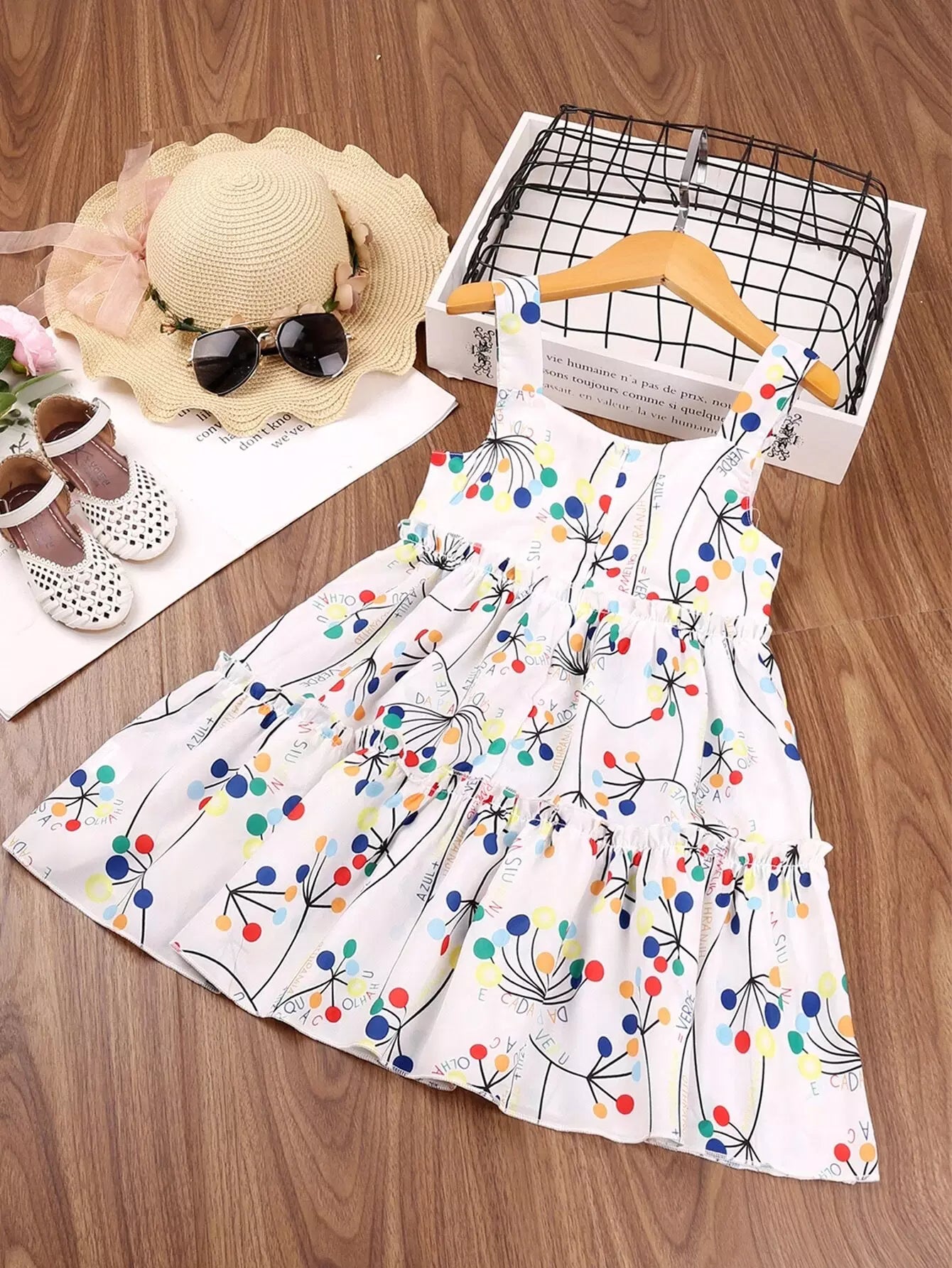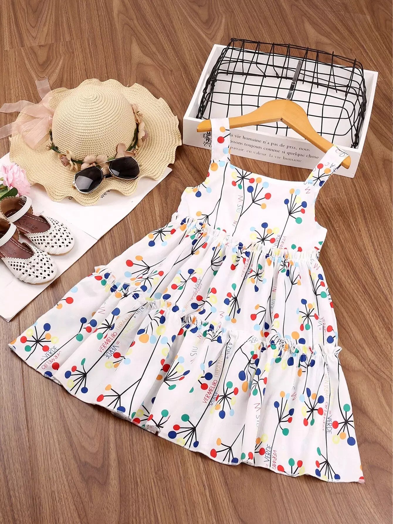 فستان كامي بطبعة حروف ورسومات للبنات الصغار
