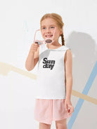 بلوزة بدون أكمام برسومات أحرف للبنات الصغار