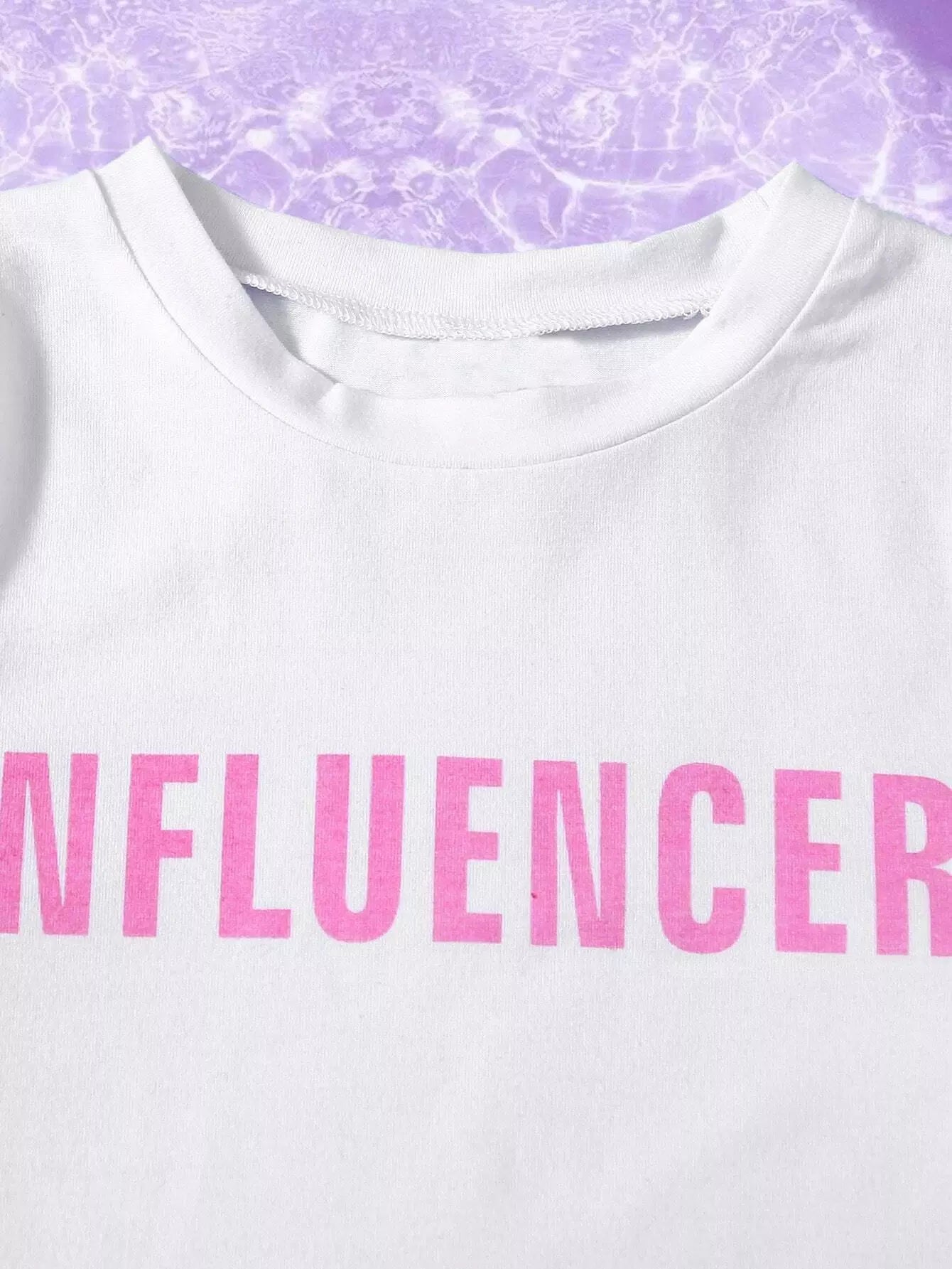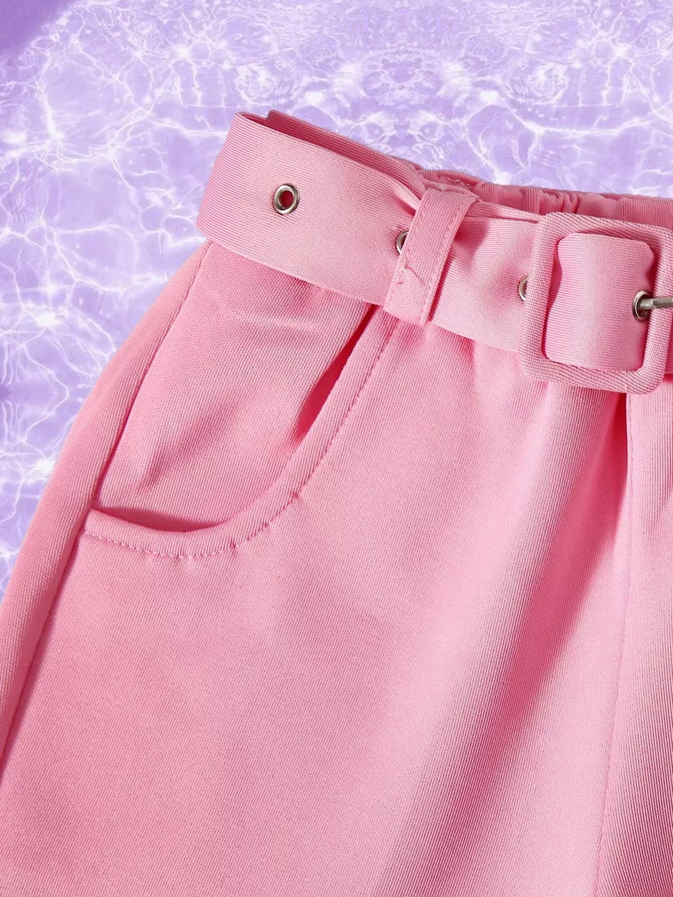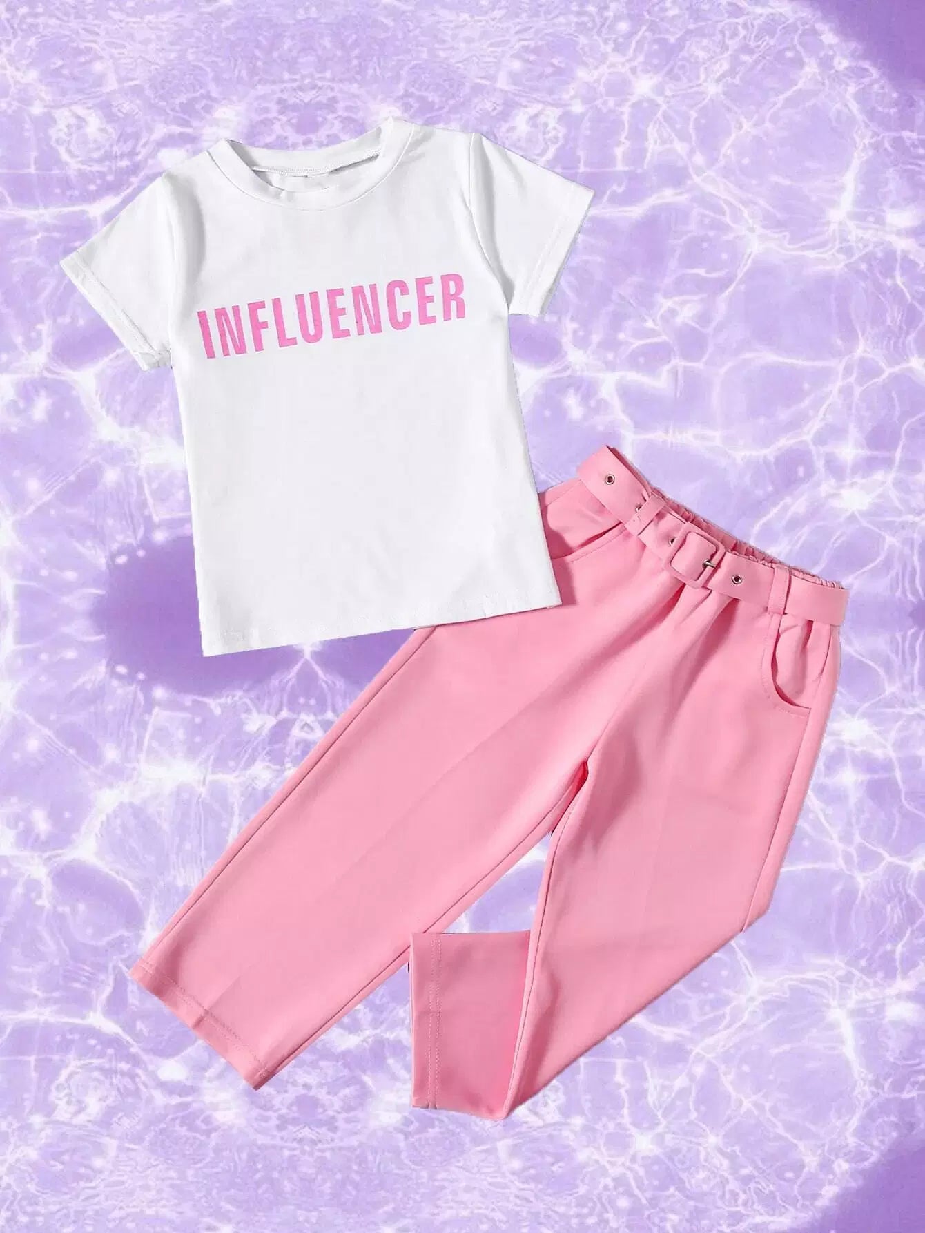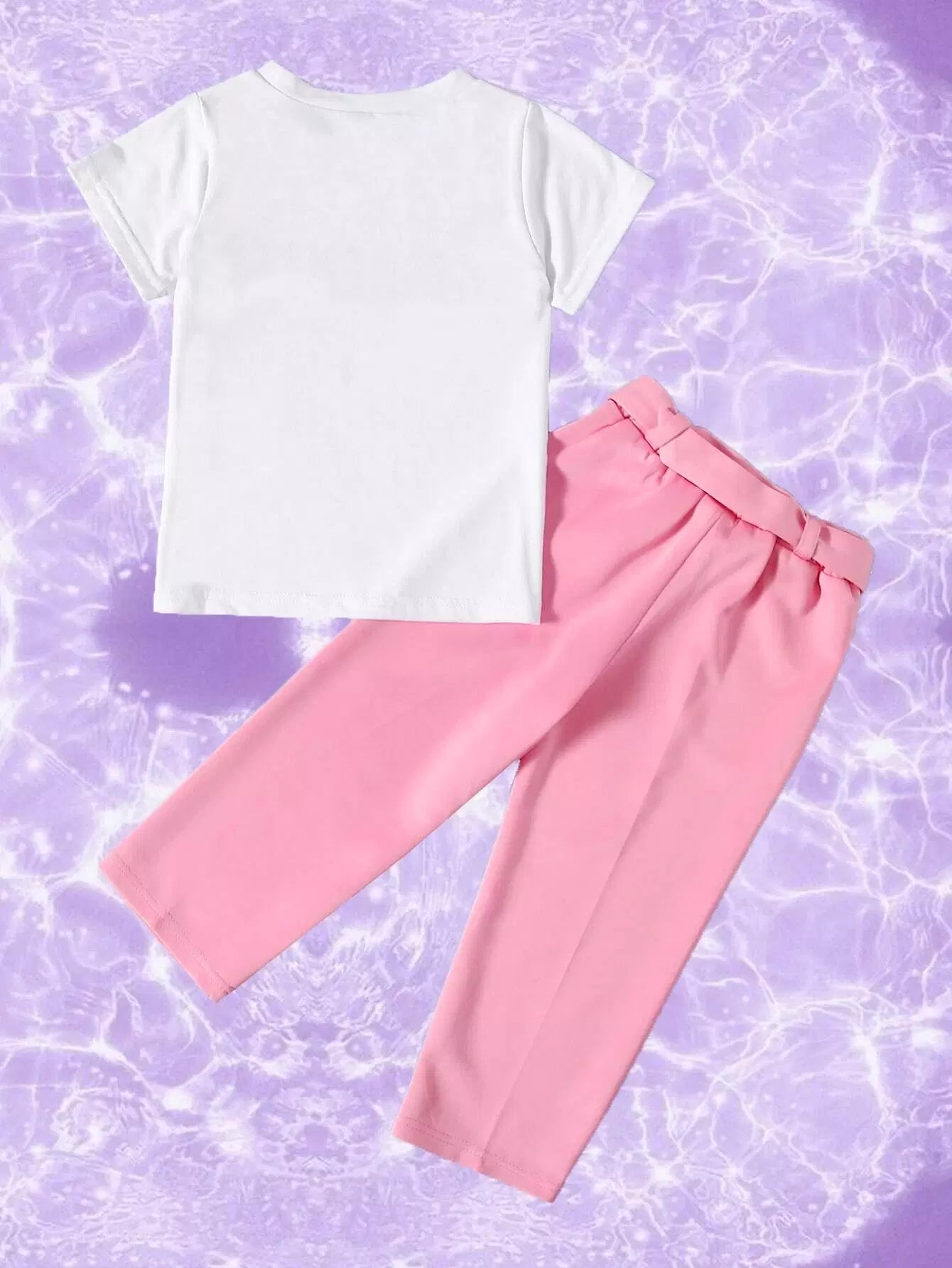 الأطفال - تي شيرت برسومات جرافيك للفتيات الصغيرات مع بنطال بحزام