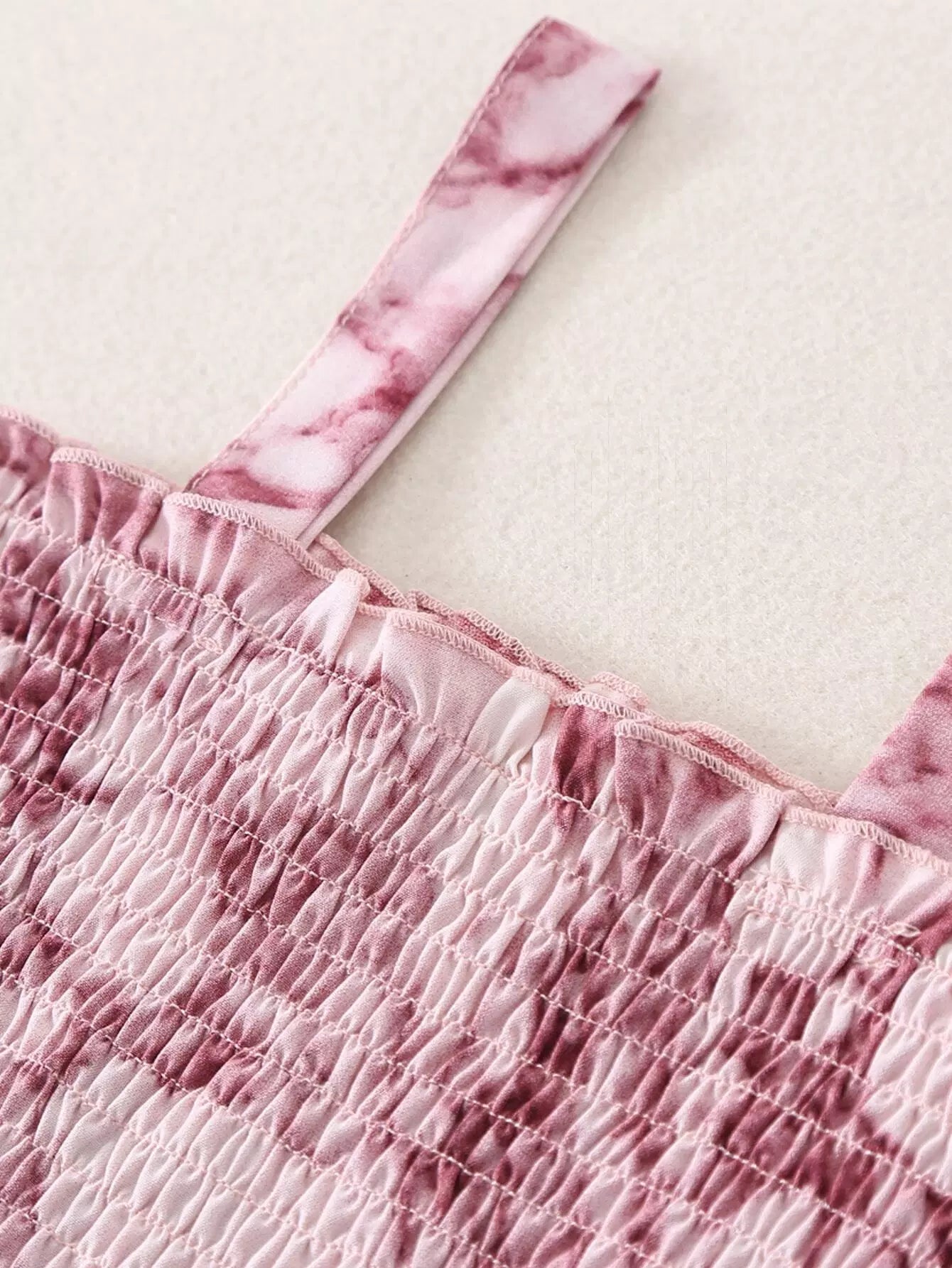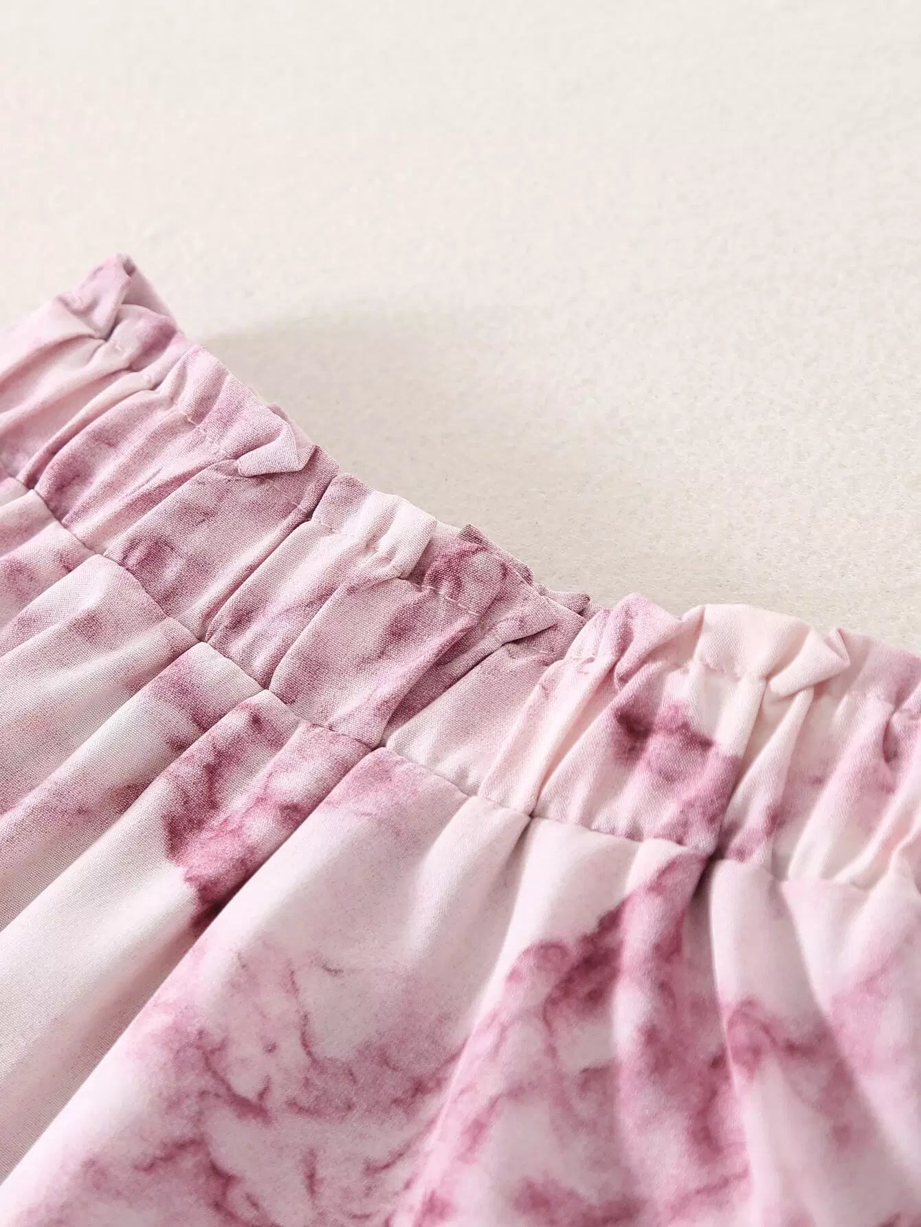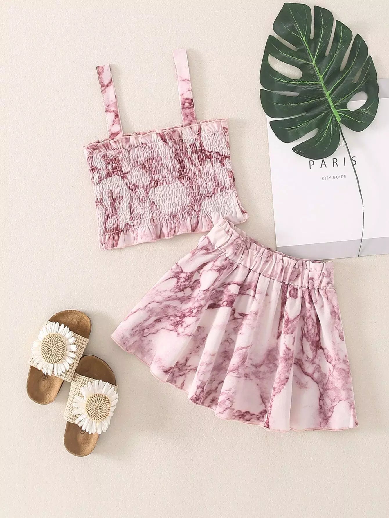 بلوزة كامي بطبعة رخام للبنات الصغار مع تنورة واسعة بنقشة رخام