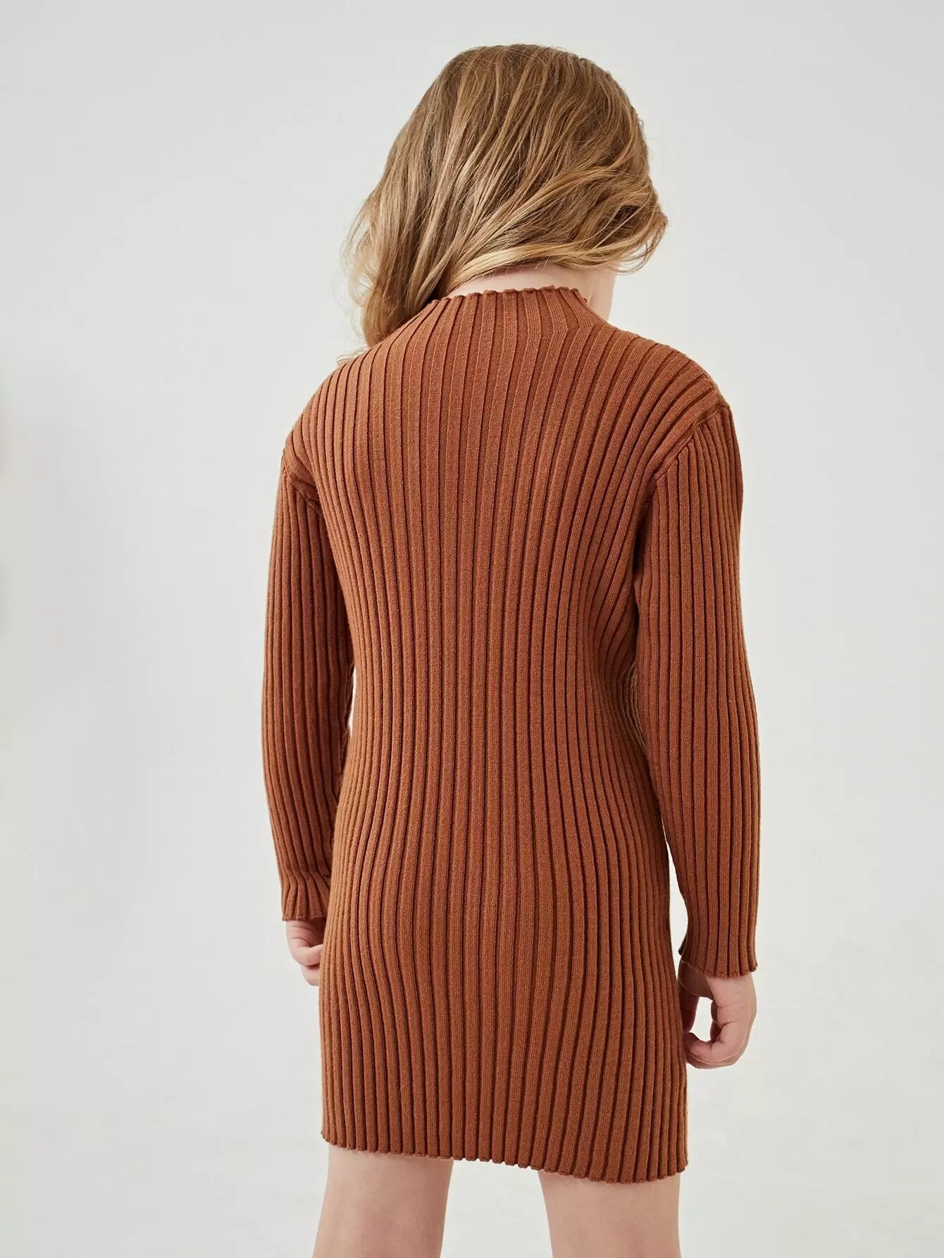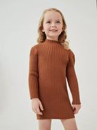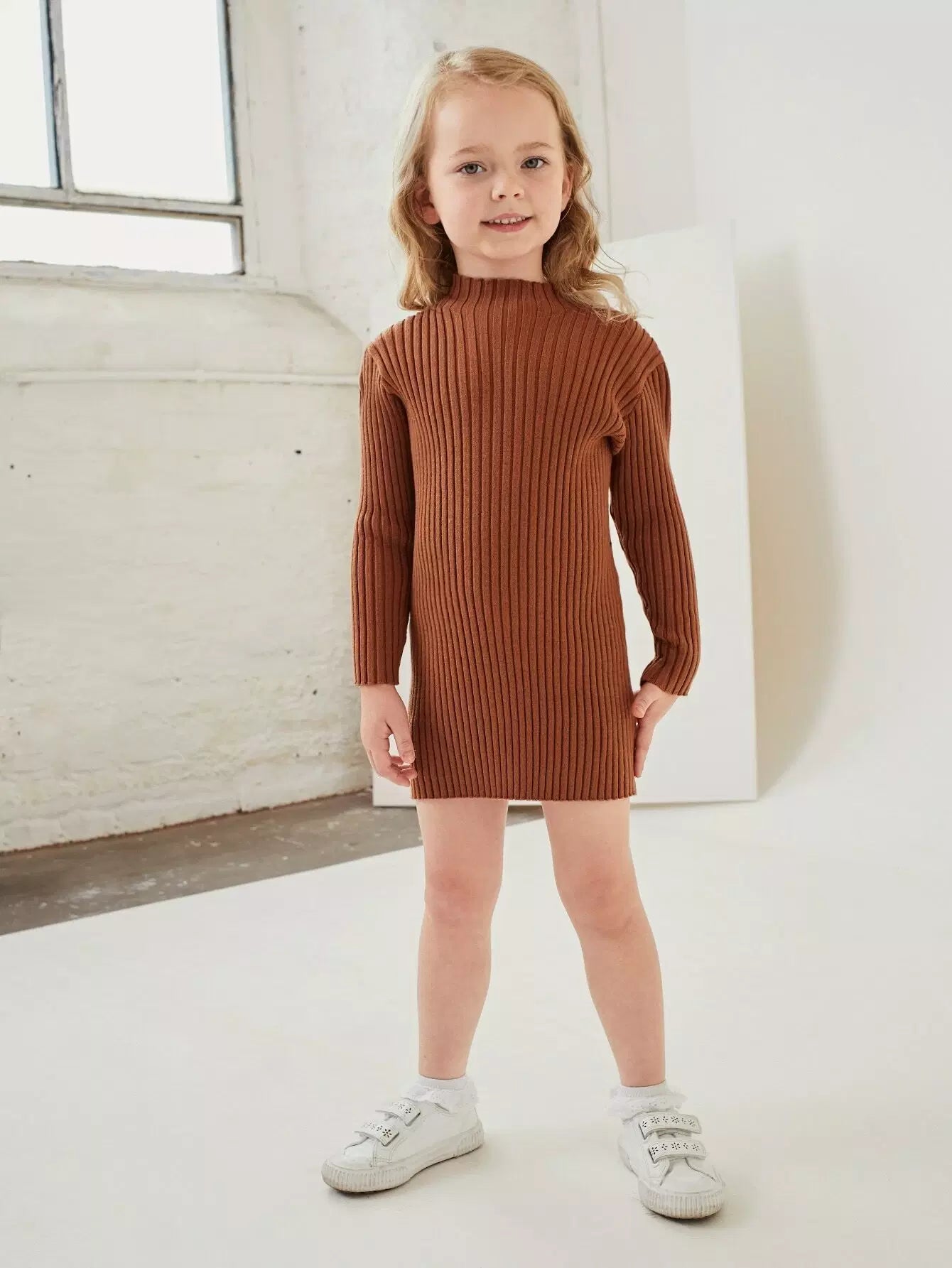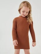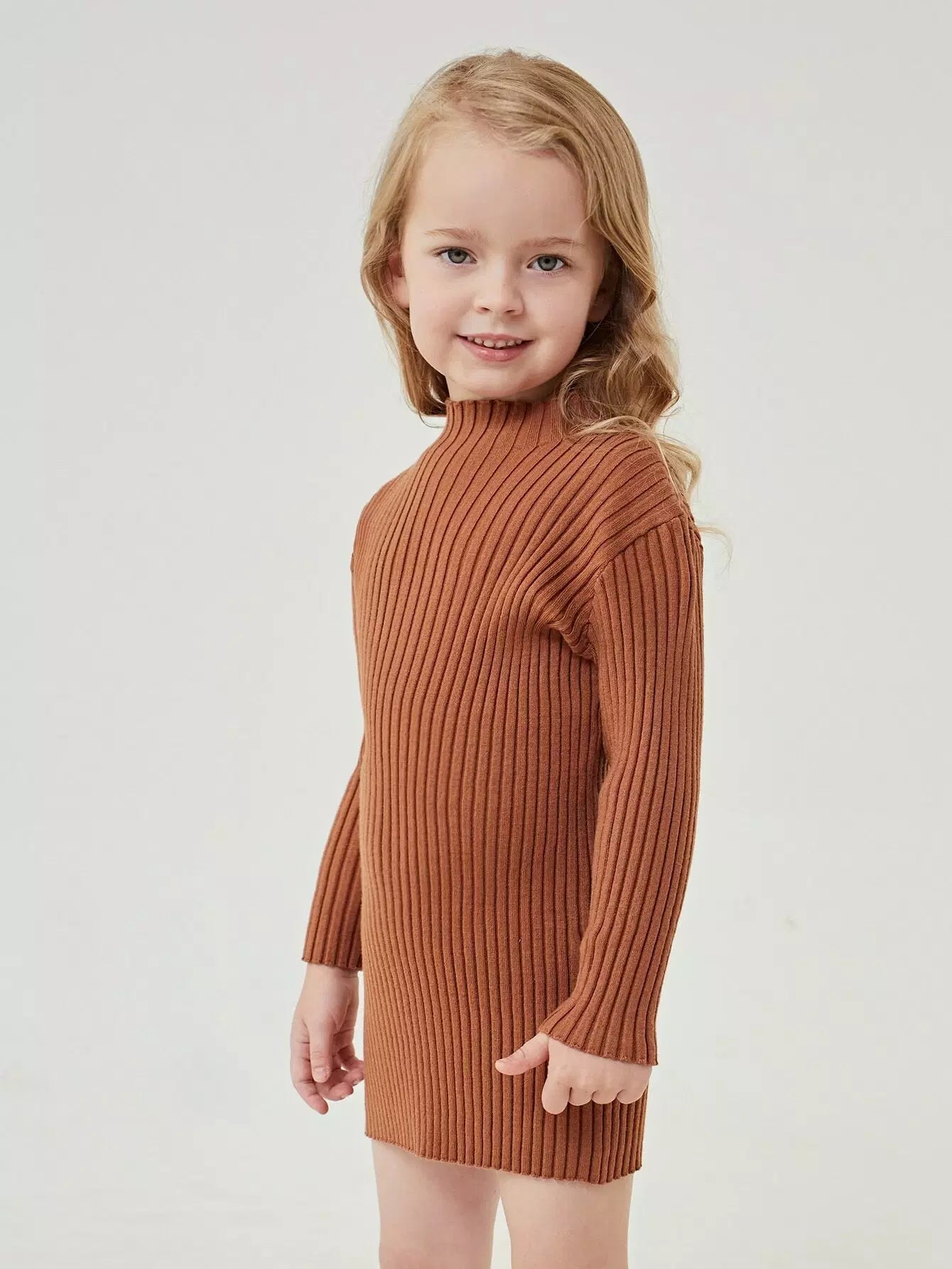 فستان من الصوف المحبوك بفتحة رقبة عالية للفتيات الصغيرات