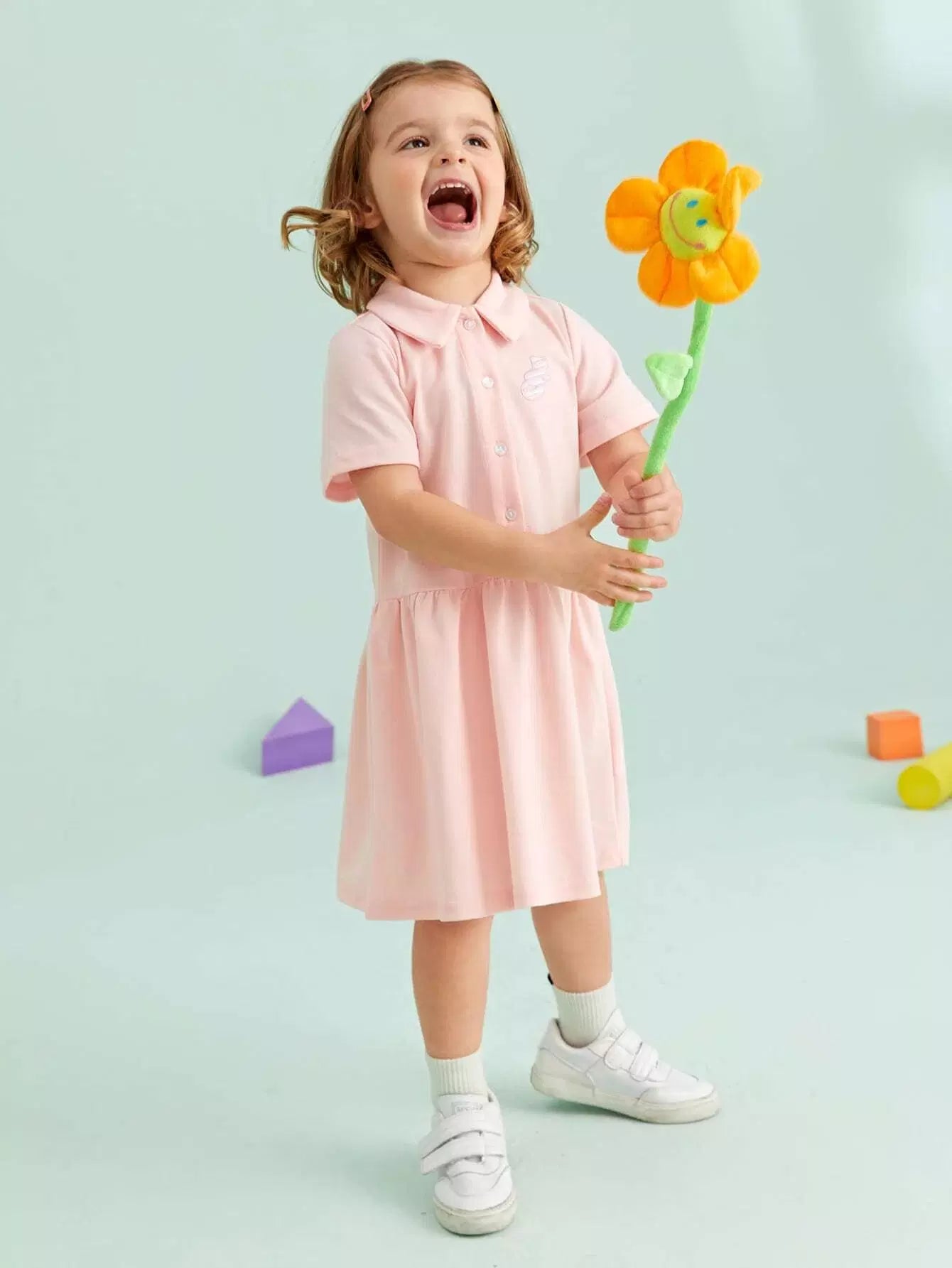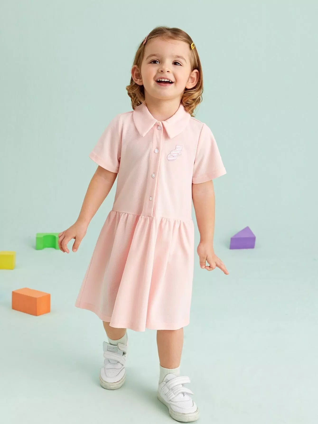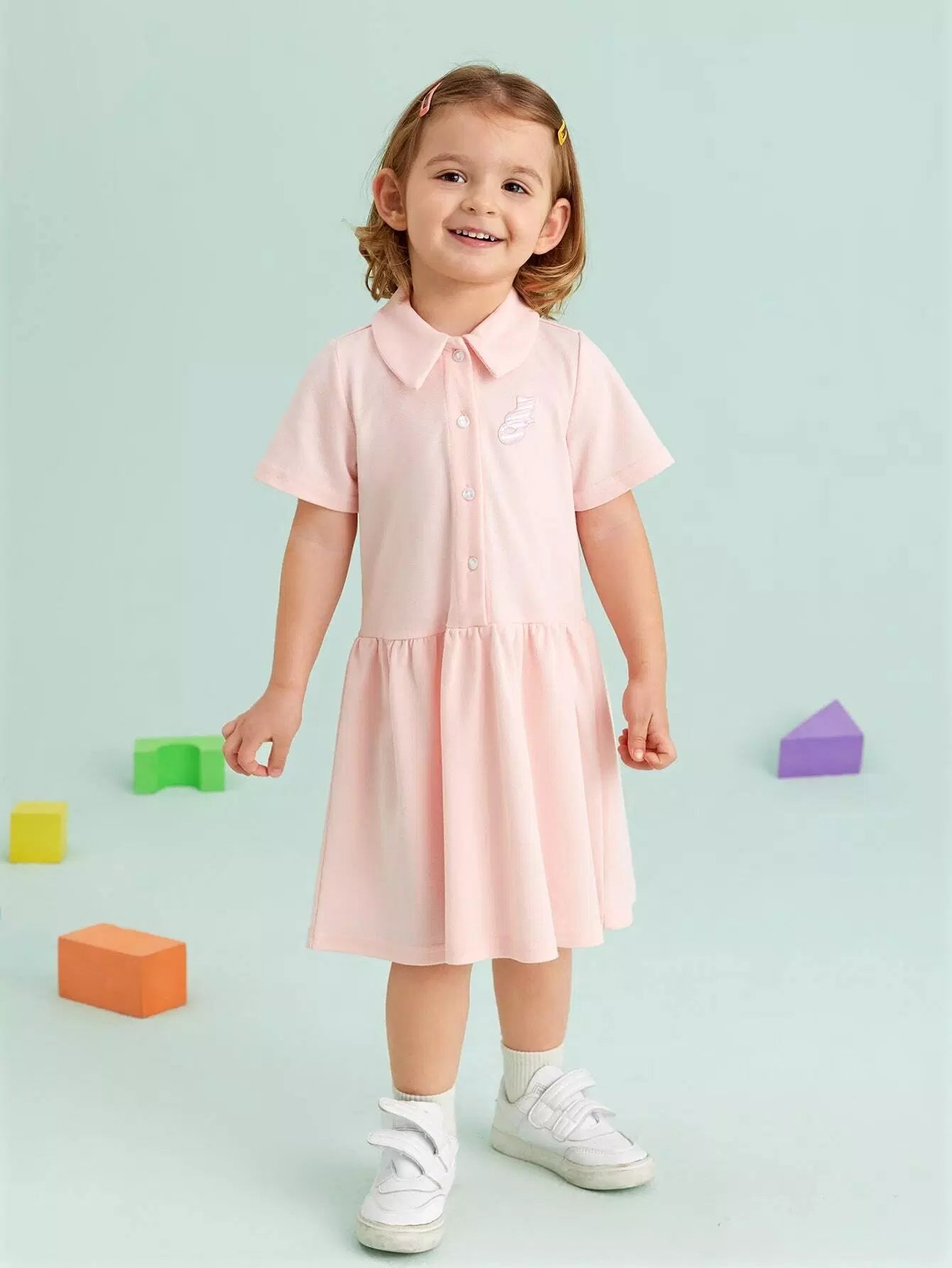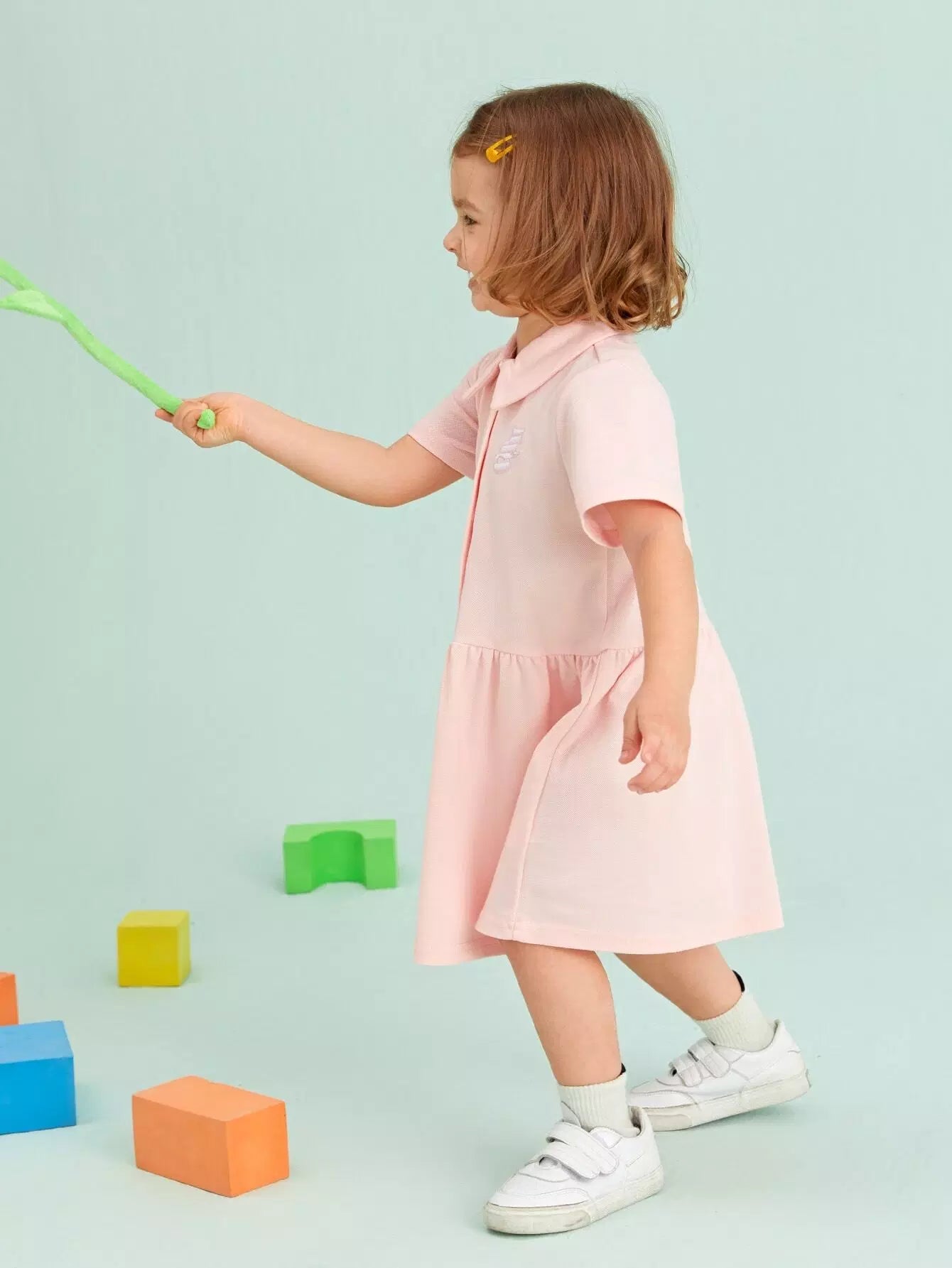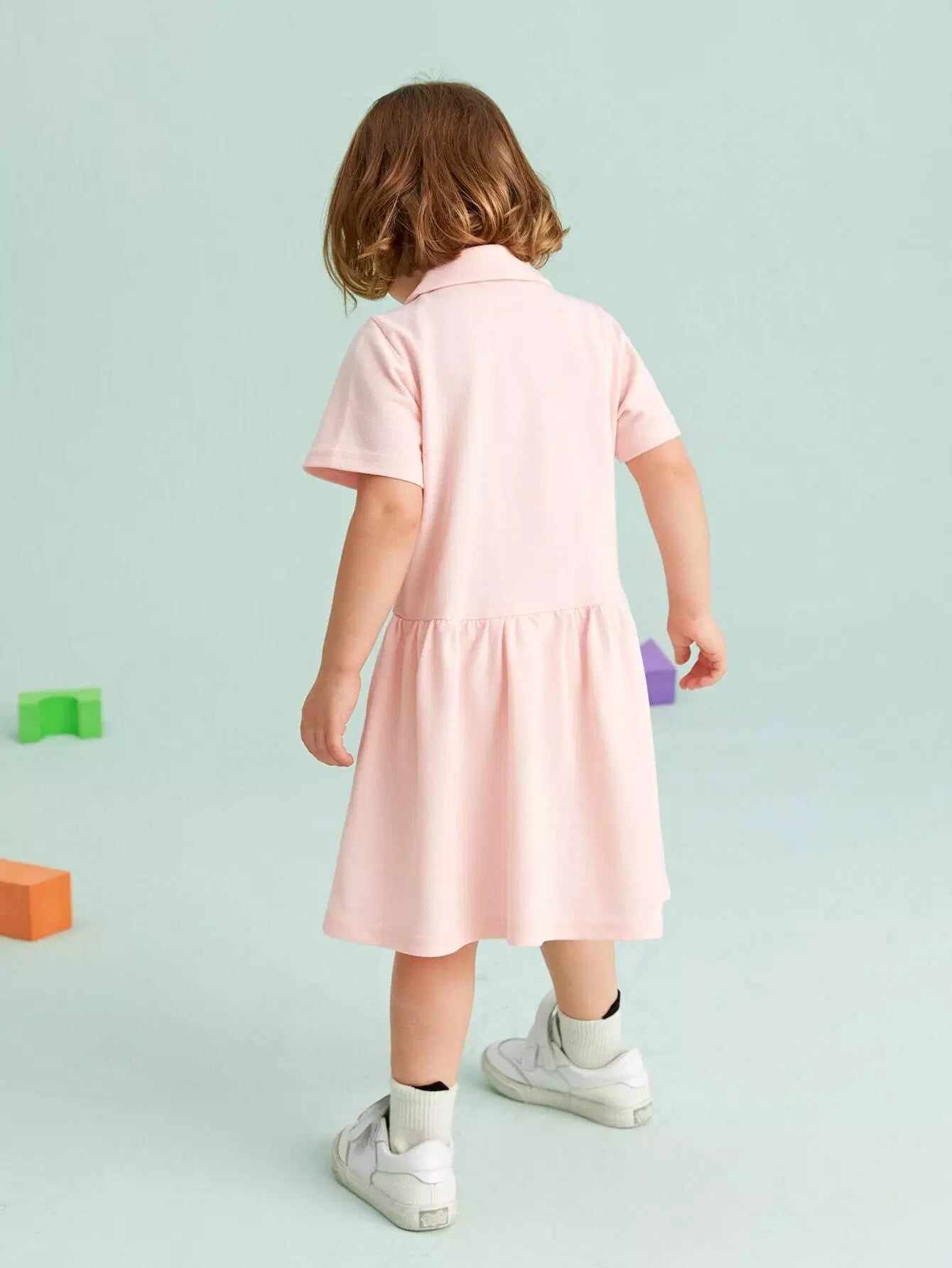 فستان بولو بتفاصيل مرقع للبنات الصغار