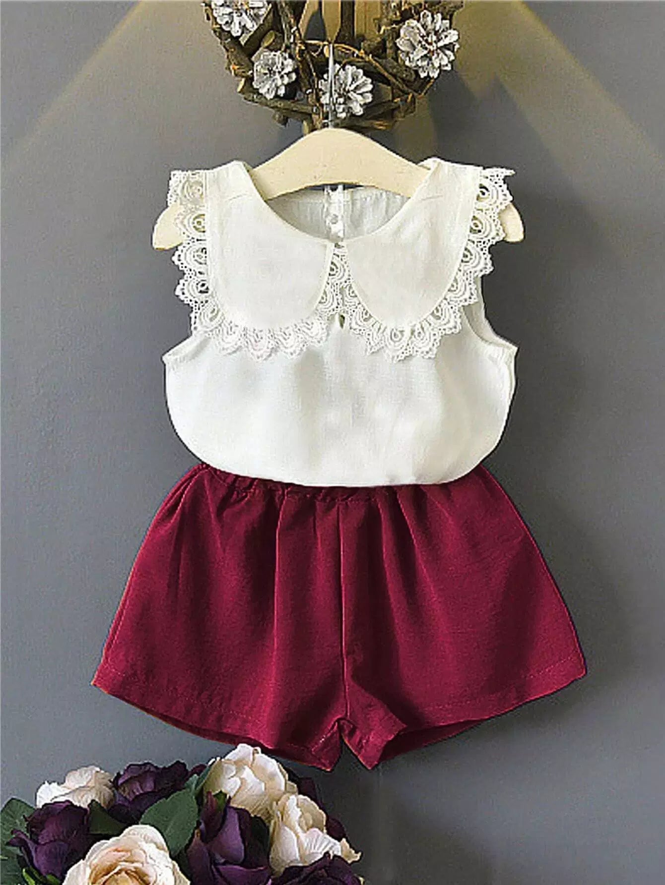 بلوزة وشورت بياقة بيتر بان بياقة بيتر بان للبنات الصغيرات