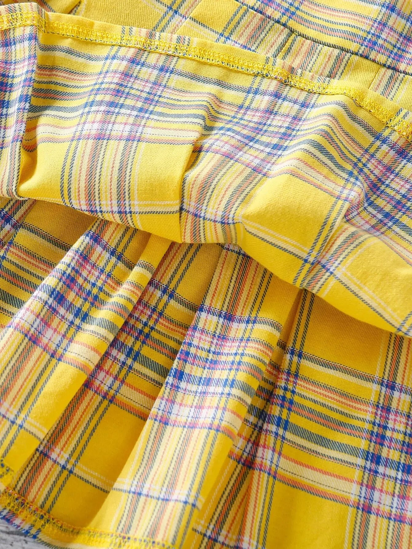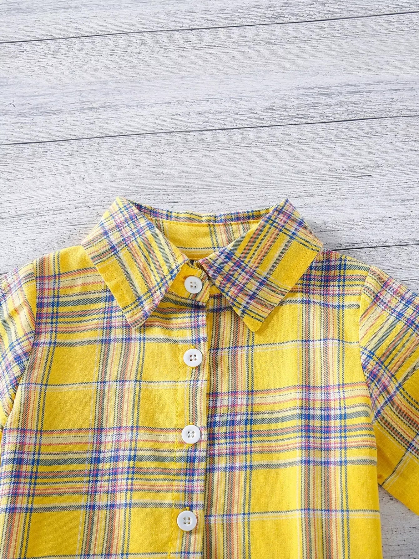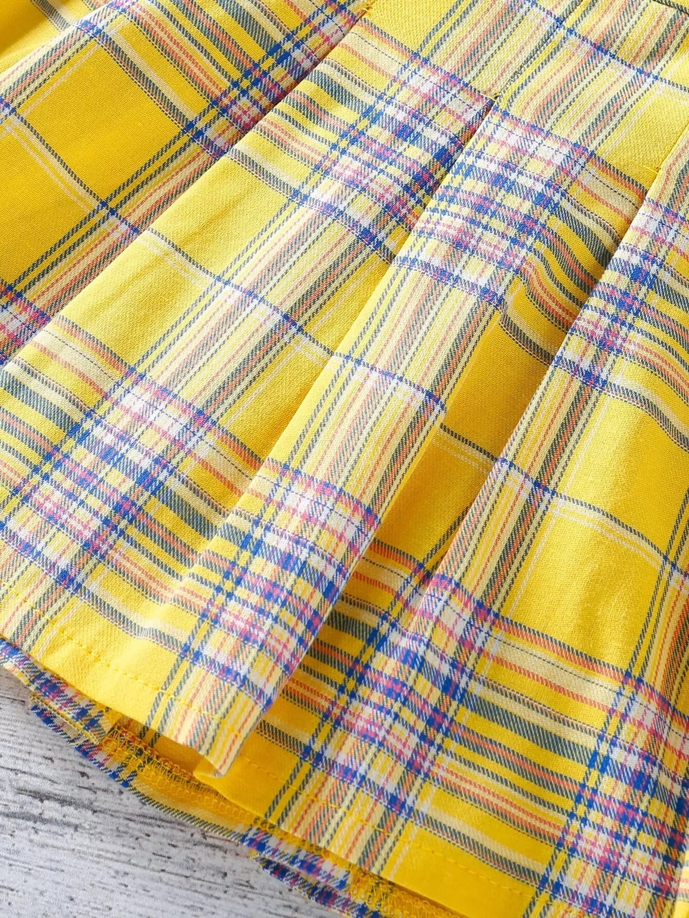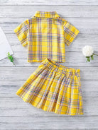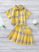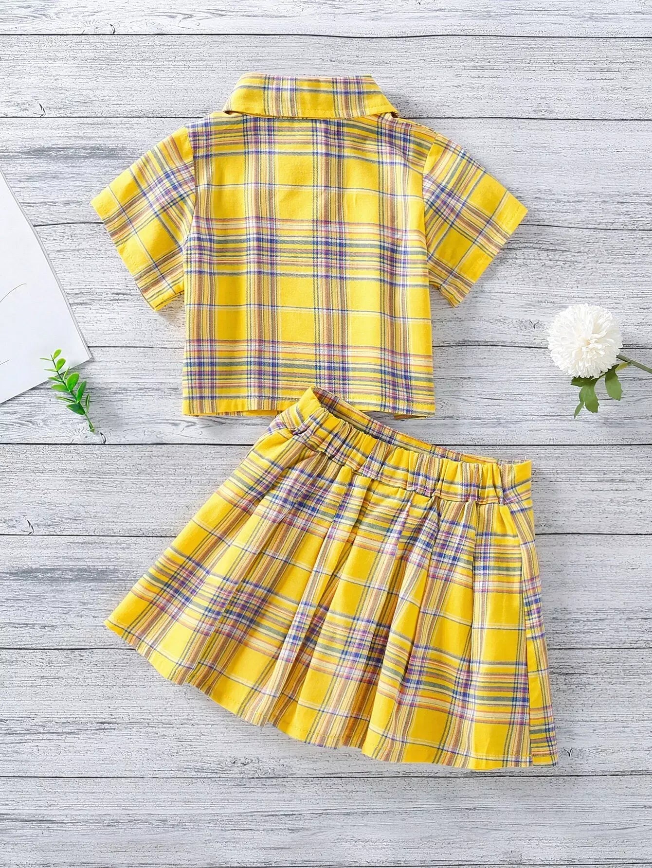 بلوزة بأزرار منقوشة للبنات الصغار وتنورة مطوية