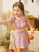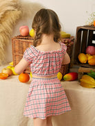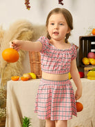 طقم تنورة وقميص بأكمام منفوخة منقوشة للبنات الصغار