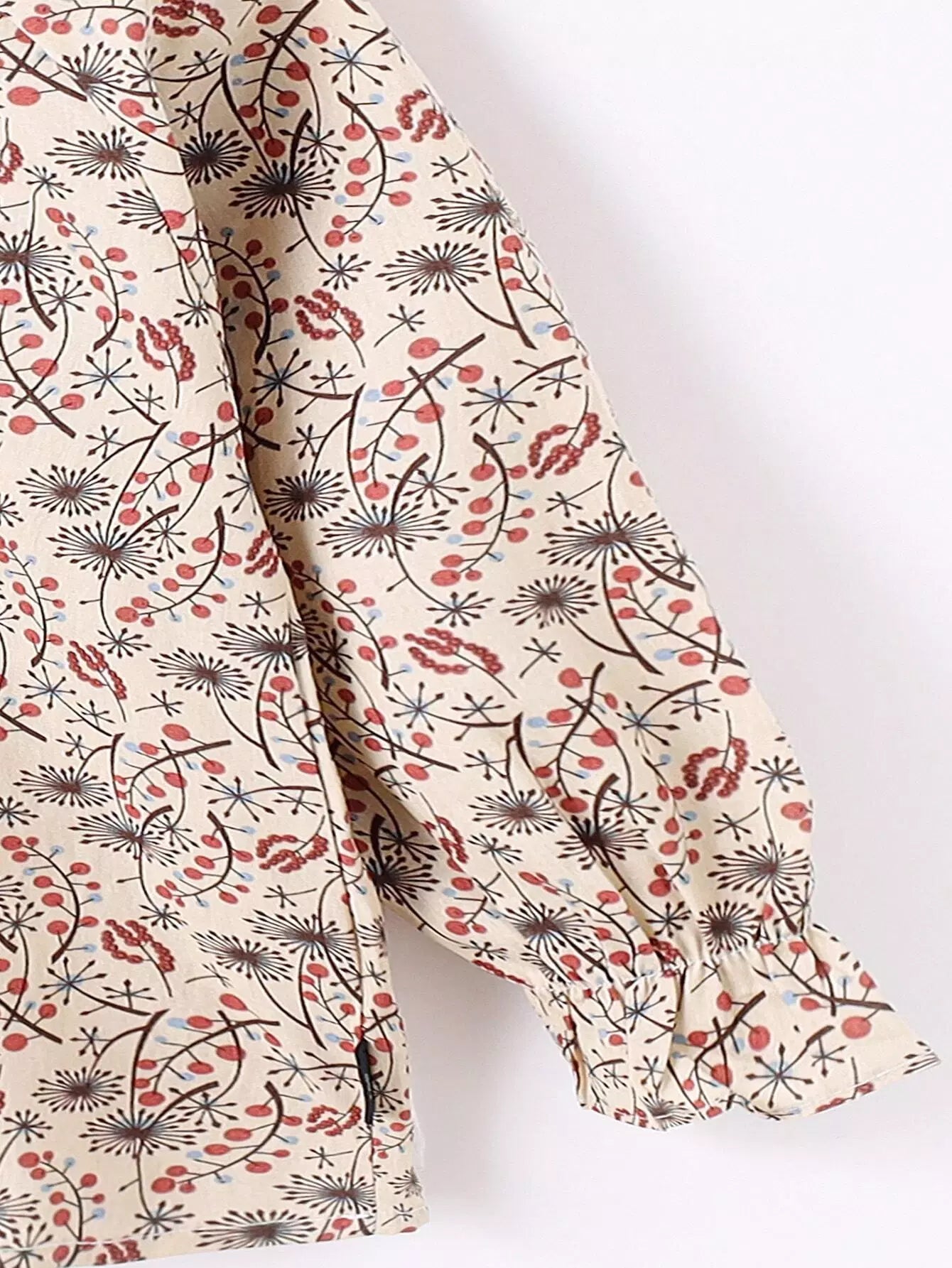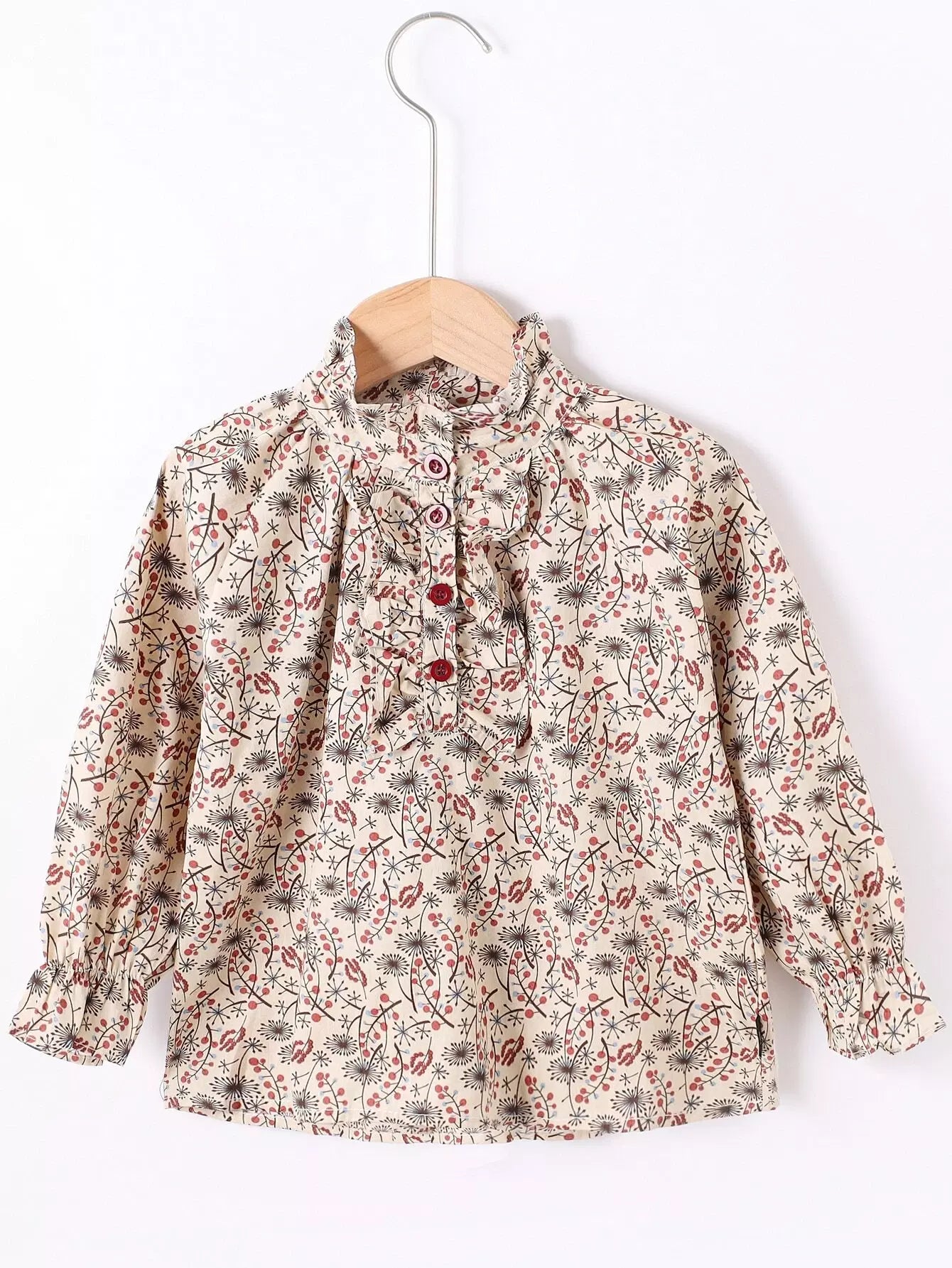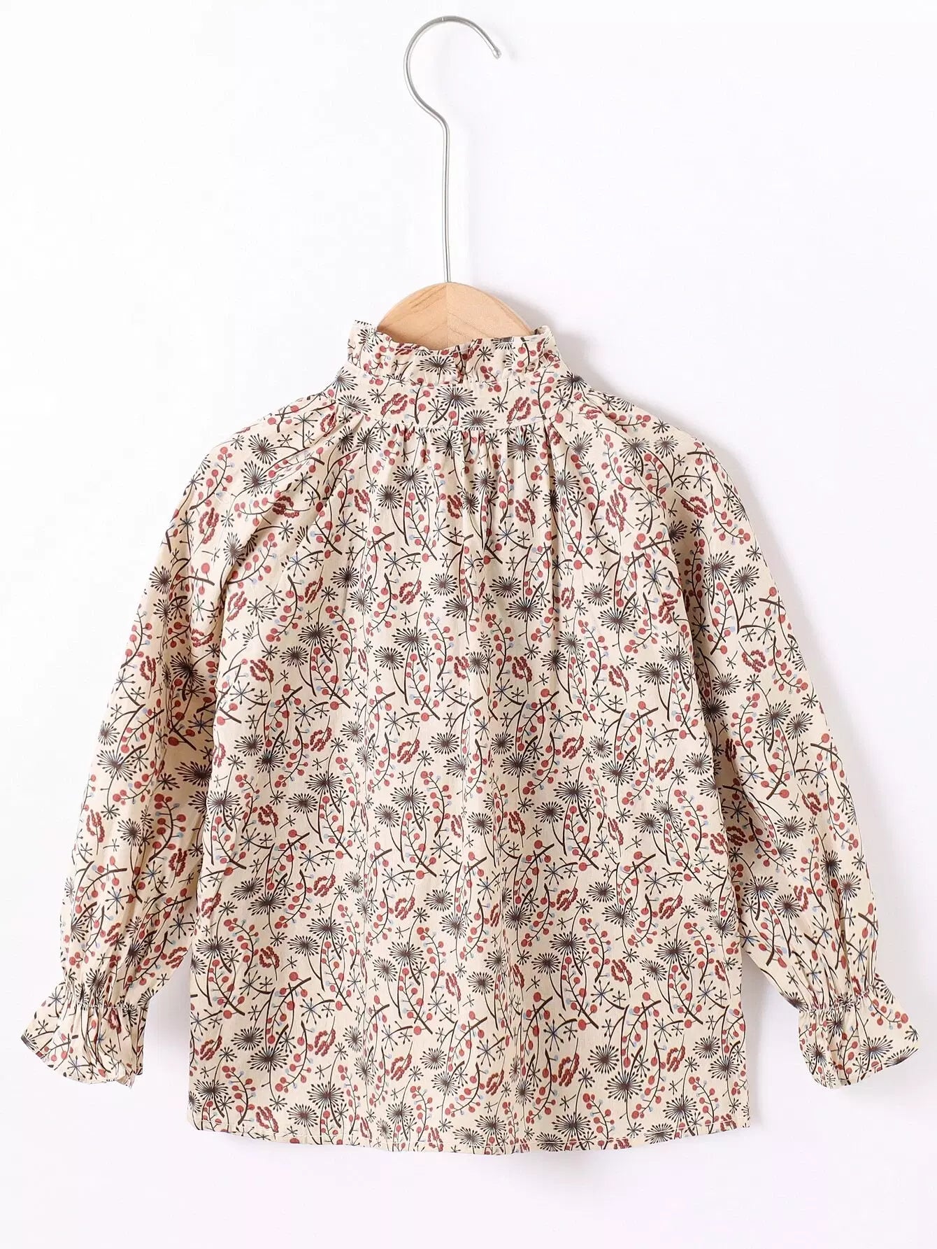 بلوزة بأكمام مكشكشة مزينة بطبعة نباتات للبنات الصغار