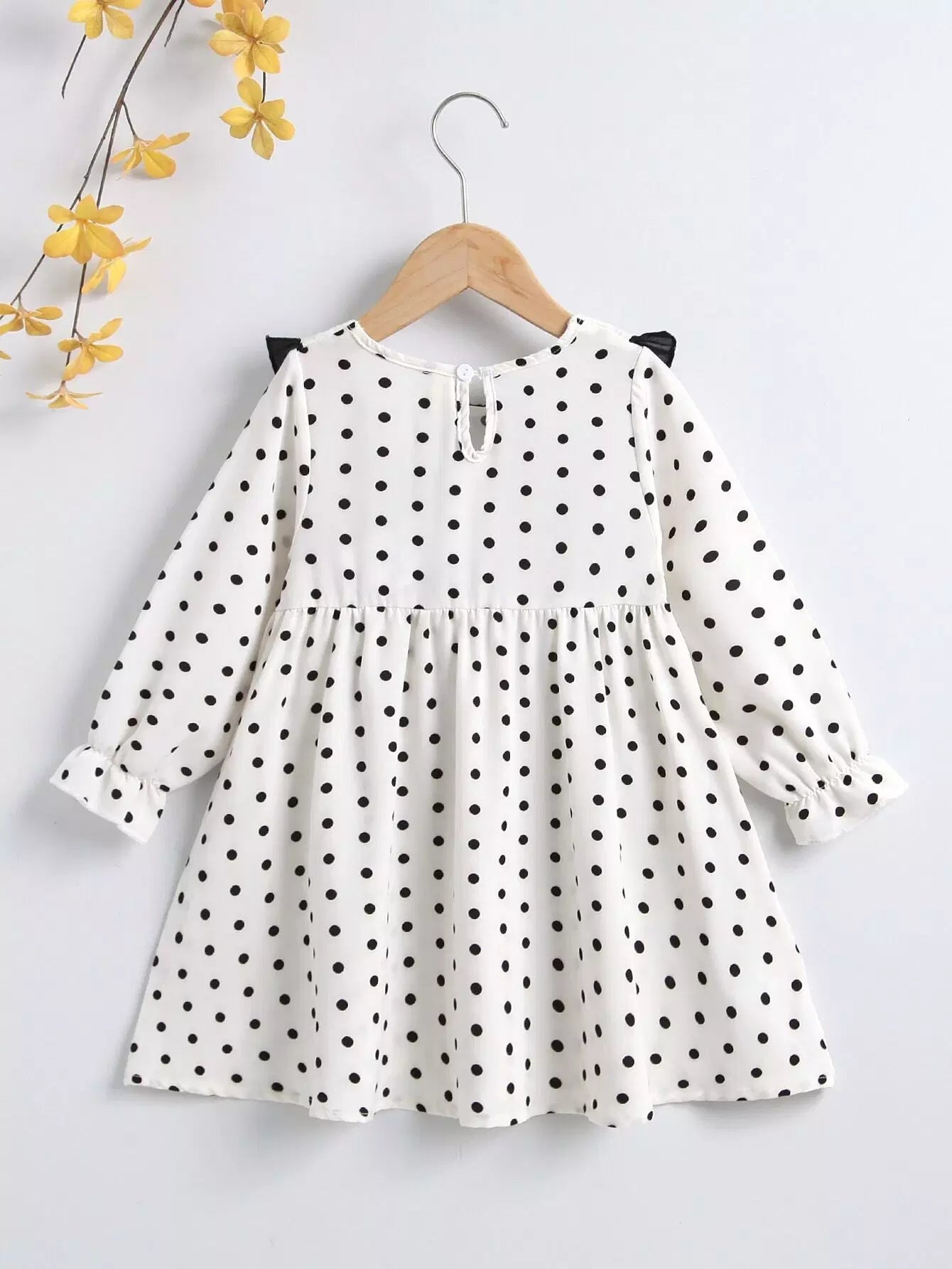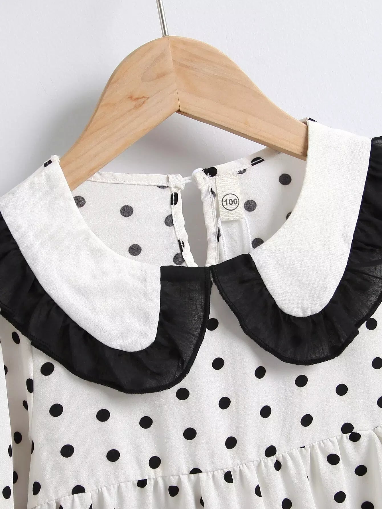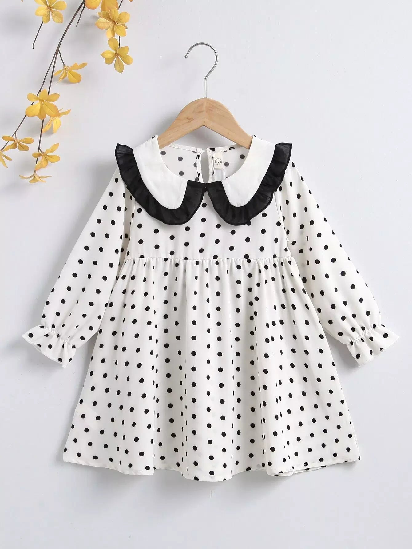 فستان بنات صغيرات بياقة منقّطة بياقة كشكش بياقة بيبي دول