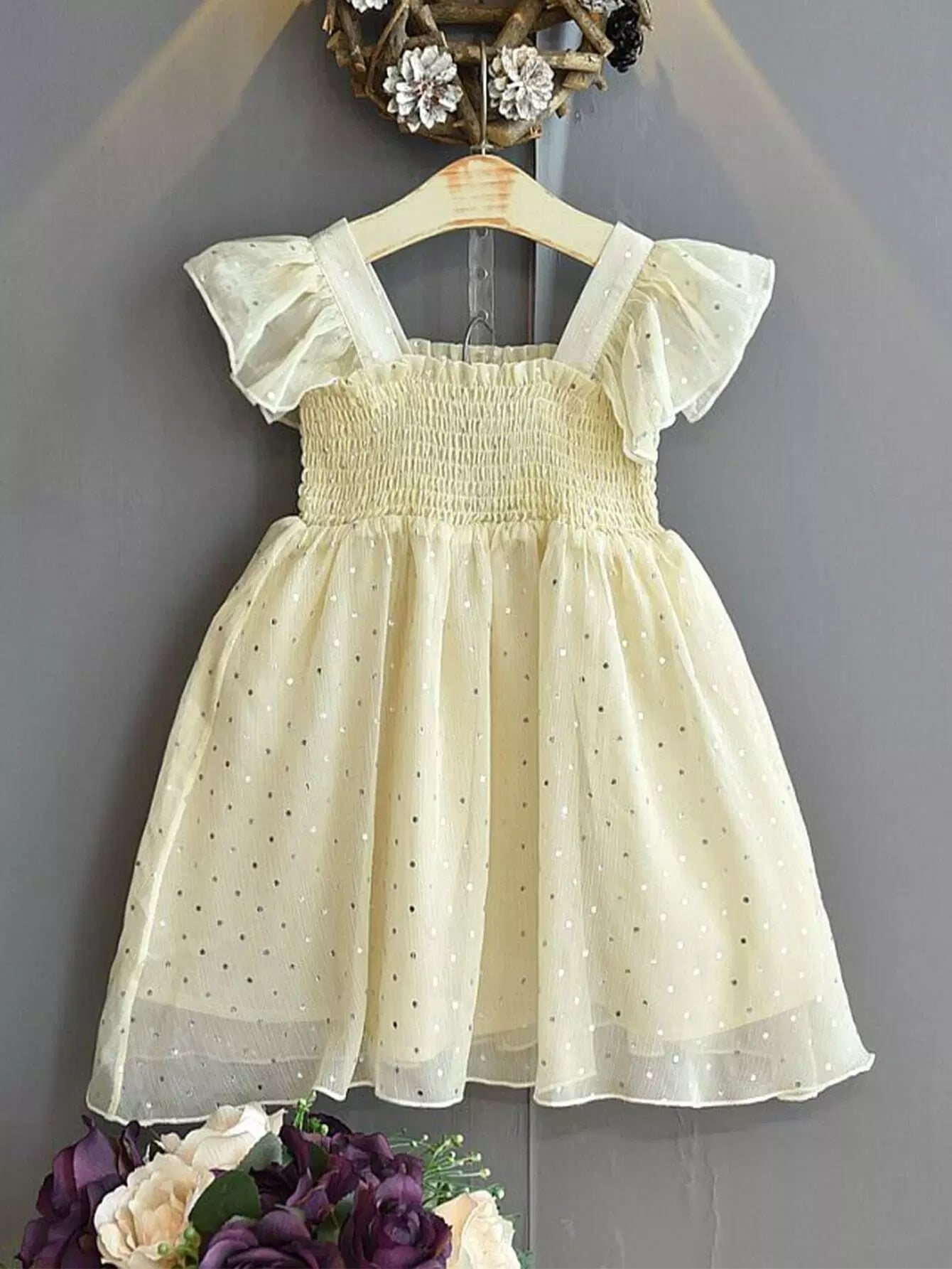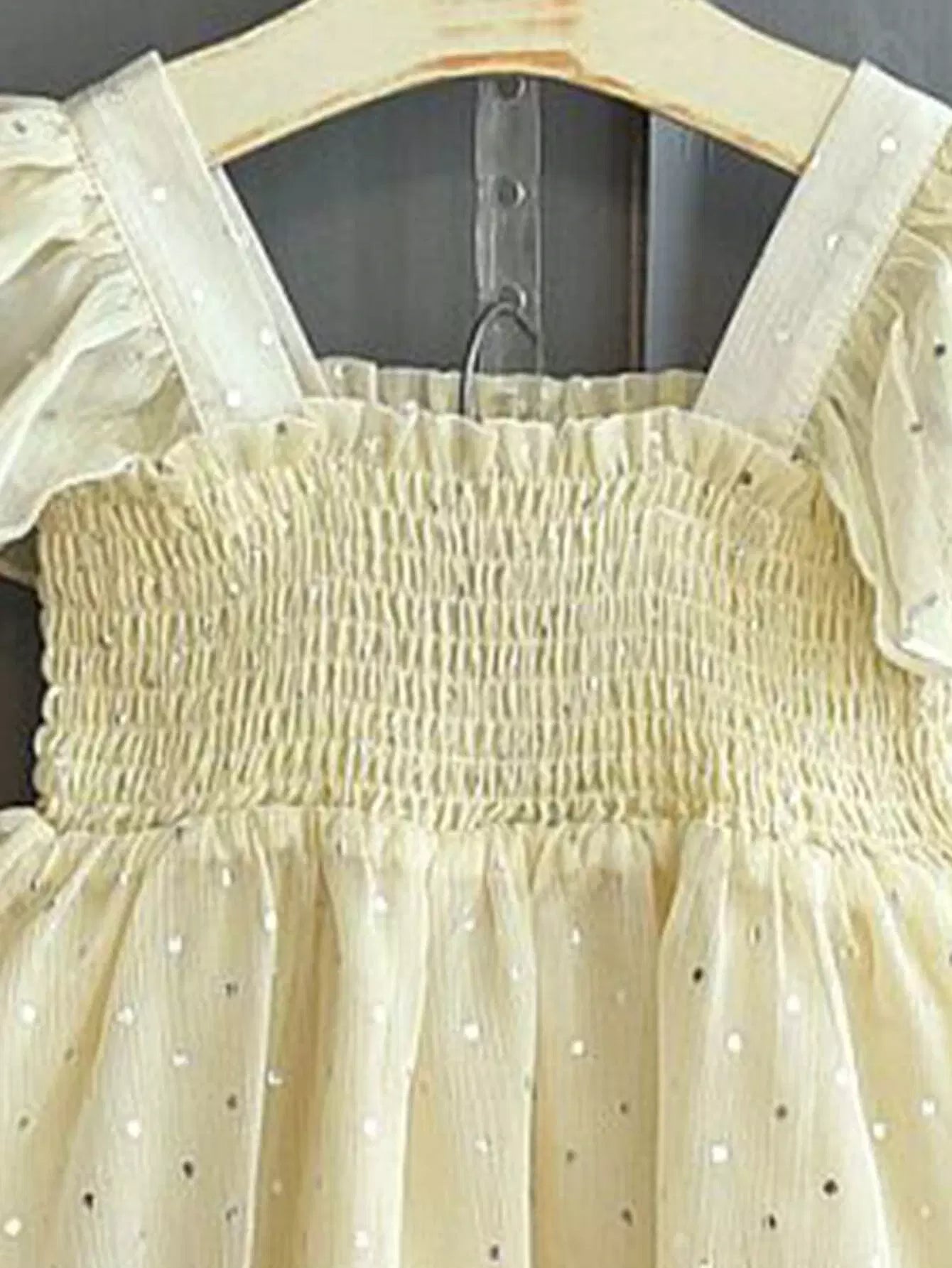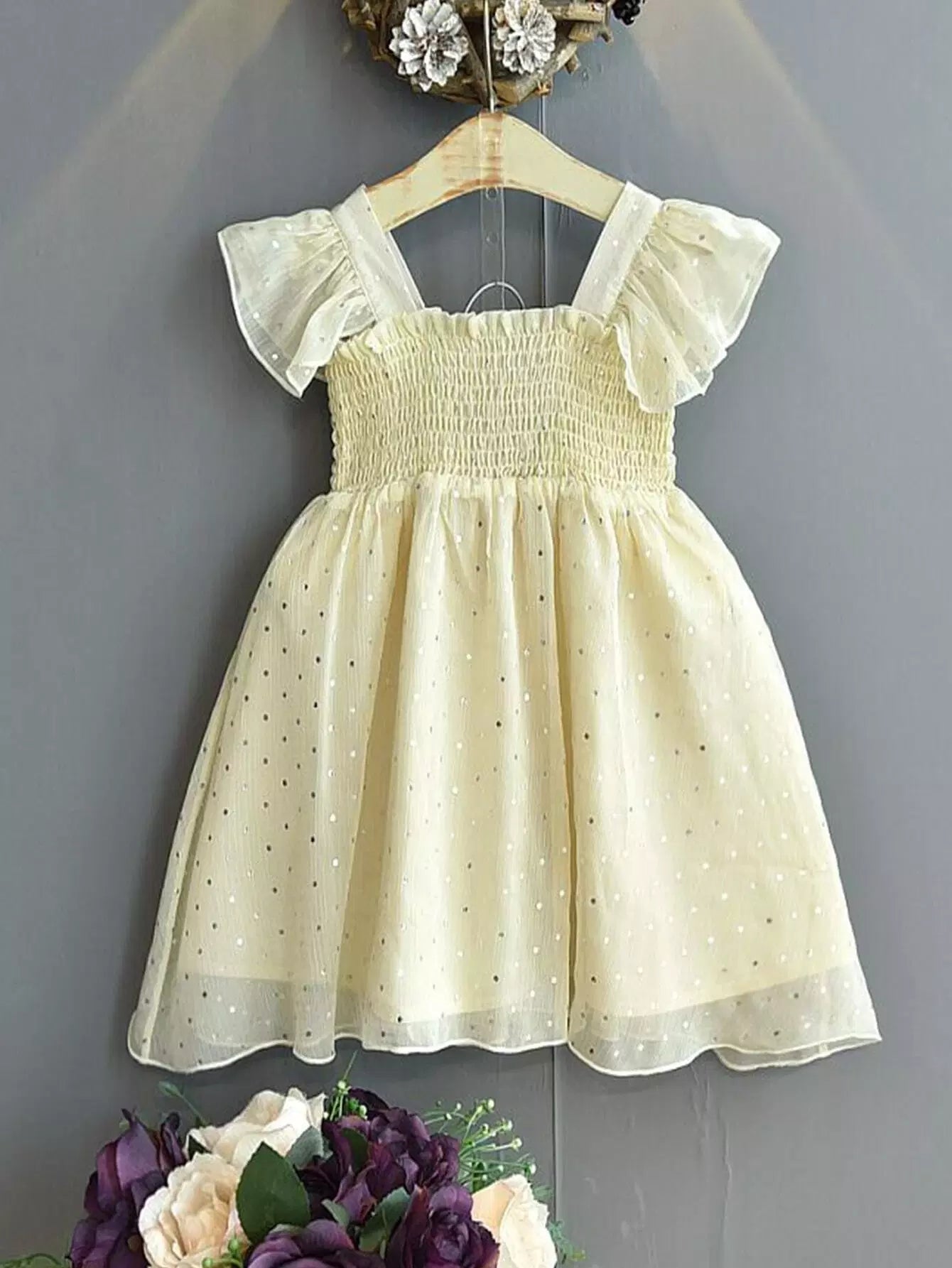 فستان بناتي صغيرات منقّط منقّط بكشكش على شكل حرف A