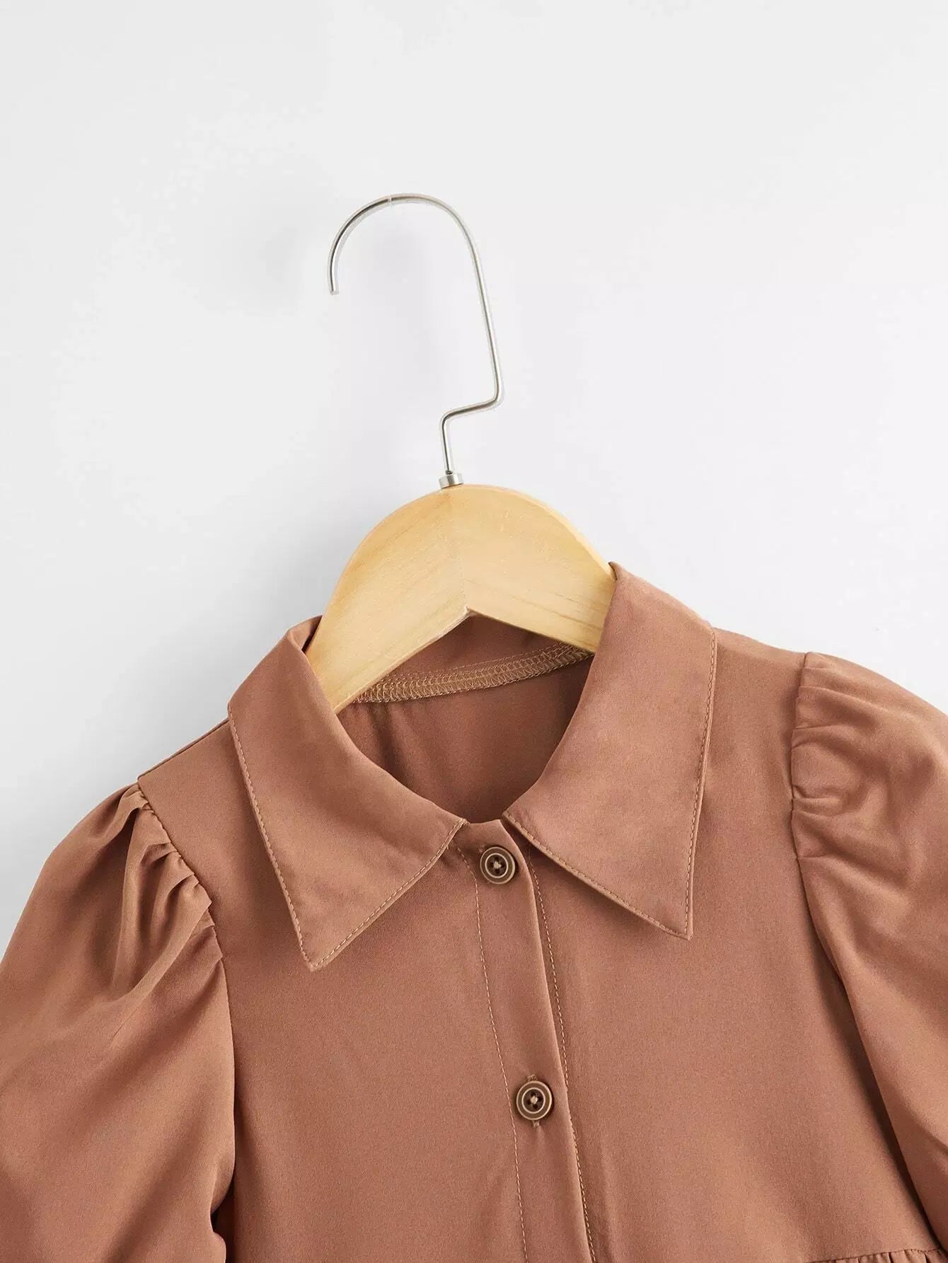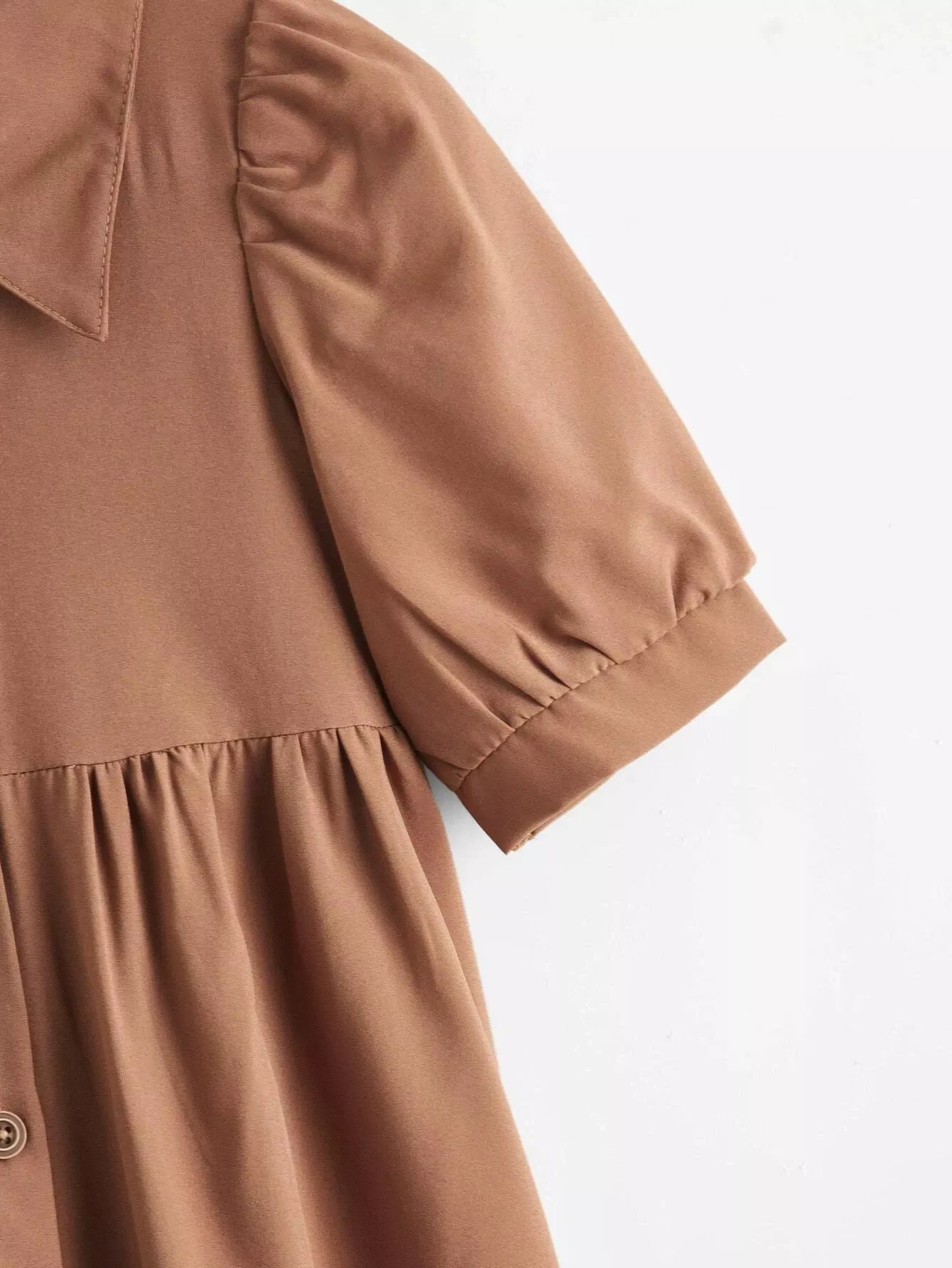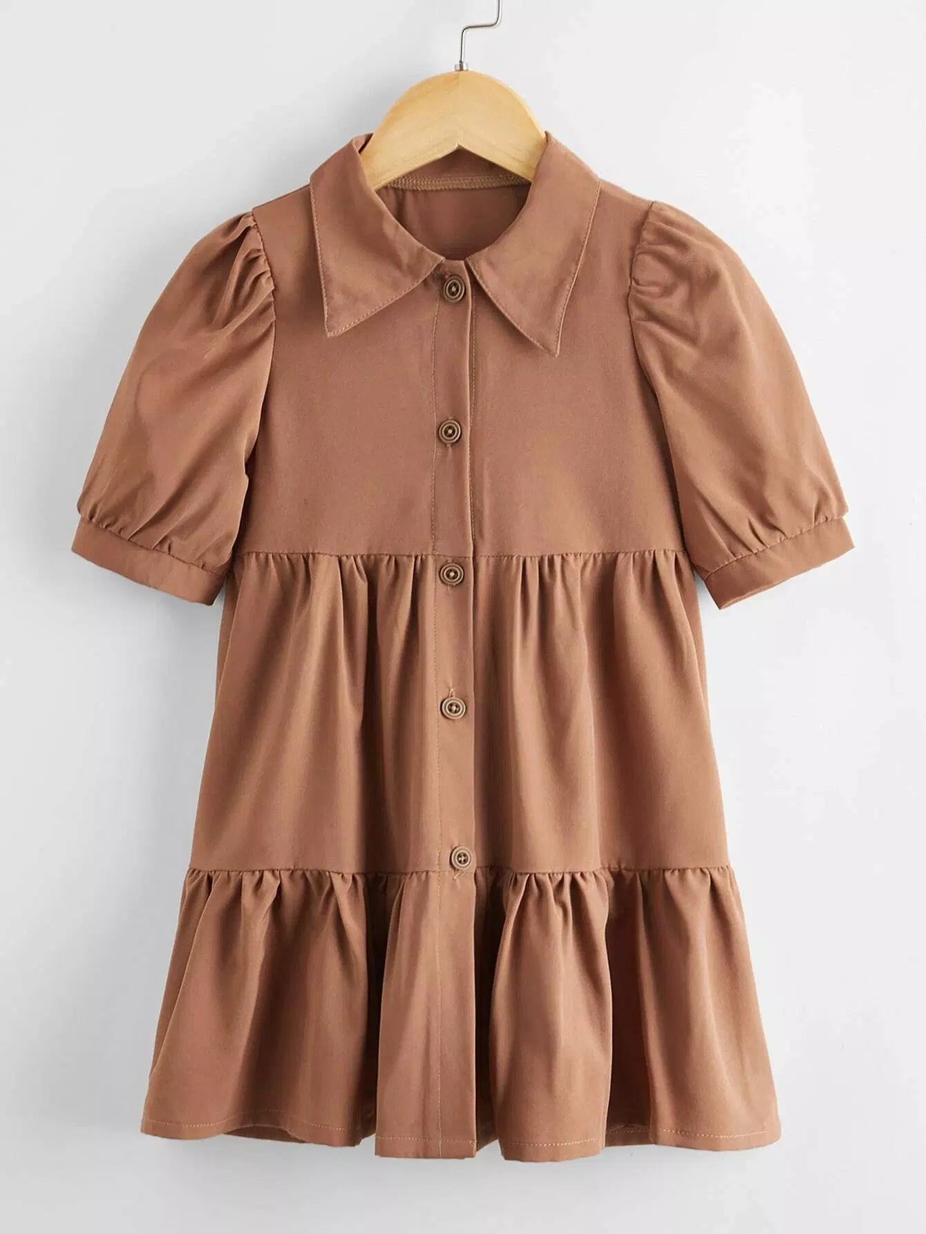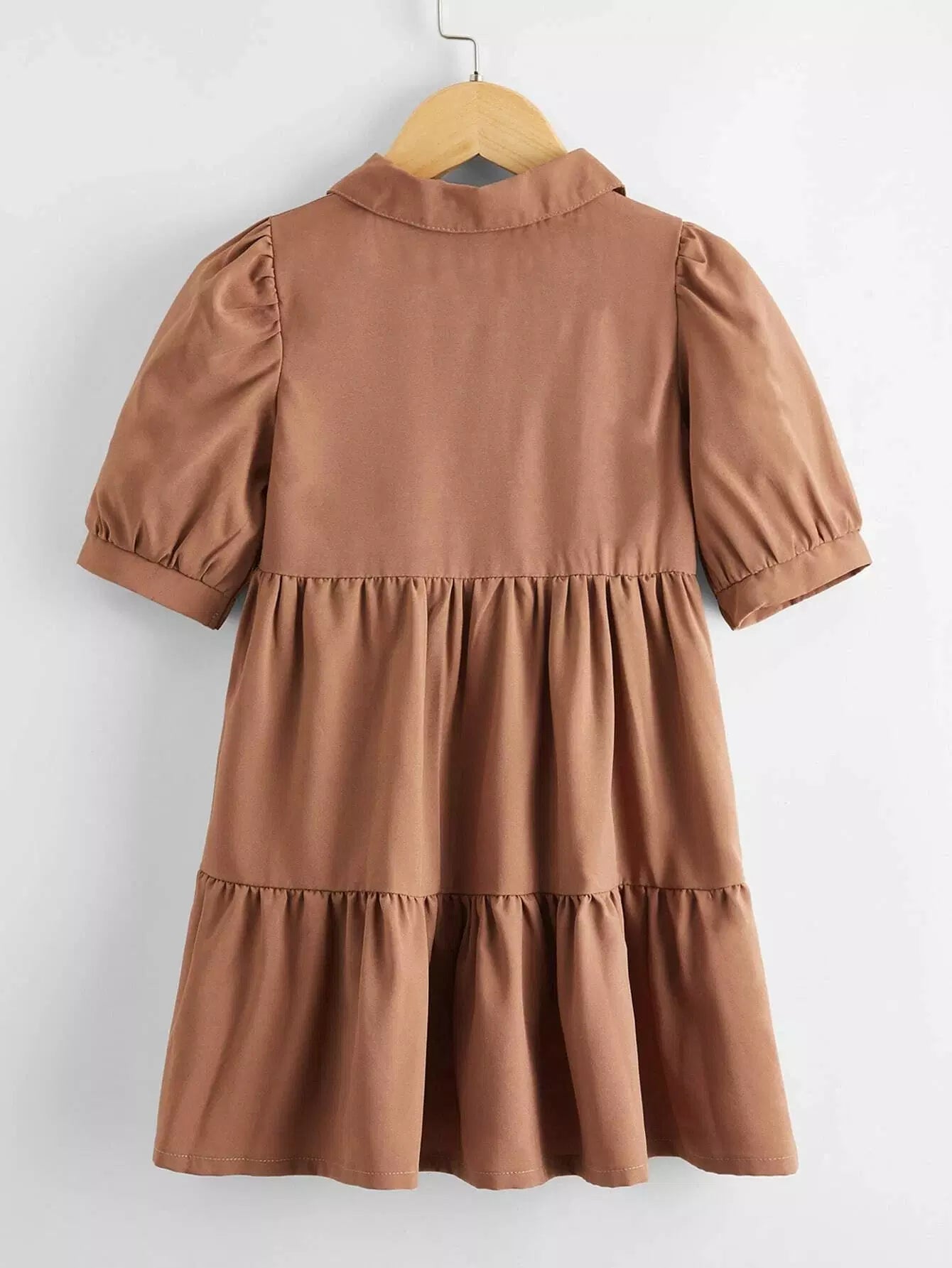 فستان بنات صغيرات بأكمام منفوشة بأزرار أمامية بأزرار من الأمام
